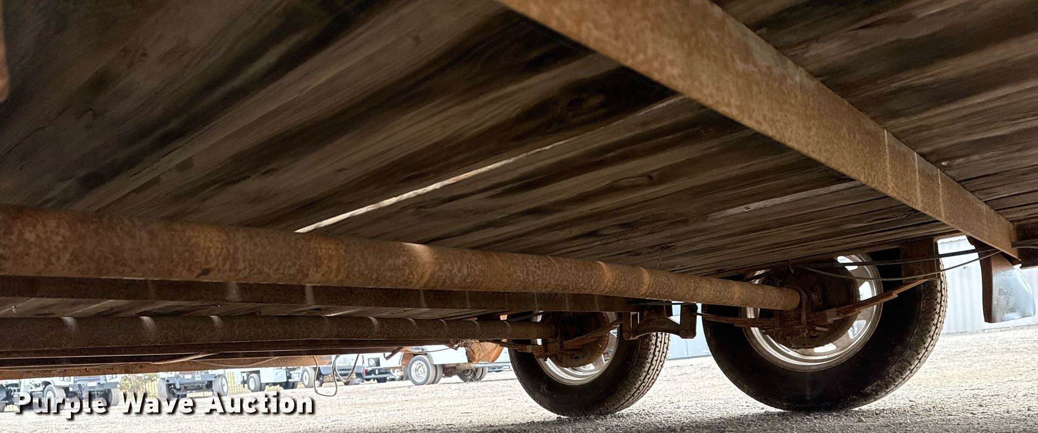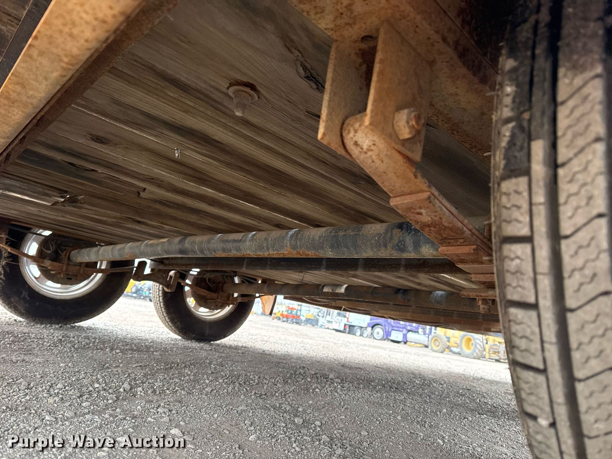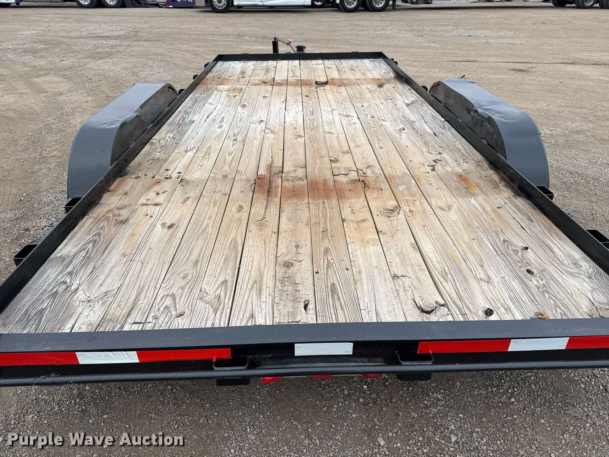 2007 Big Tex utility trailer. VIN: 16VCX162072E86466. Dimensions Overall: 19' L x 102" W, Deck: 16' L x 83" W. Features Deck type: Wood. Chassis Hitch: Pintle, Landing gear: Single, Suspension: Spring, Brakes: Electric, Axles: Tandem. Tires Steel wheels, Size: ST205/75R15. Notes Deck boards damaged. Oklahoma title. Seller is an Oklahoma licensed motor vehicle dealer. Title will be assigned and distributed by the dealer. Please contact the seller for distribution questions. Title distribution may be delayed up to 30 days from verification of funds. Collinsville, OK 74021