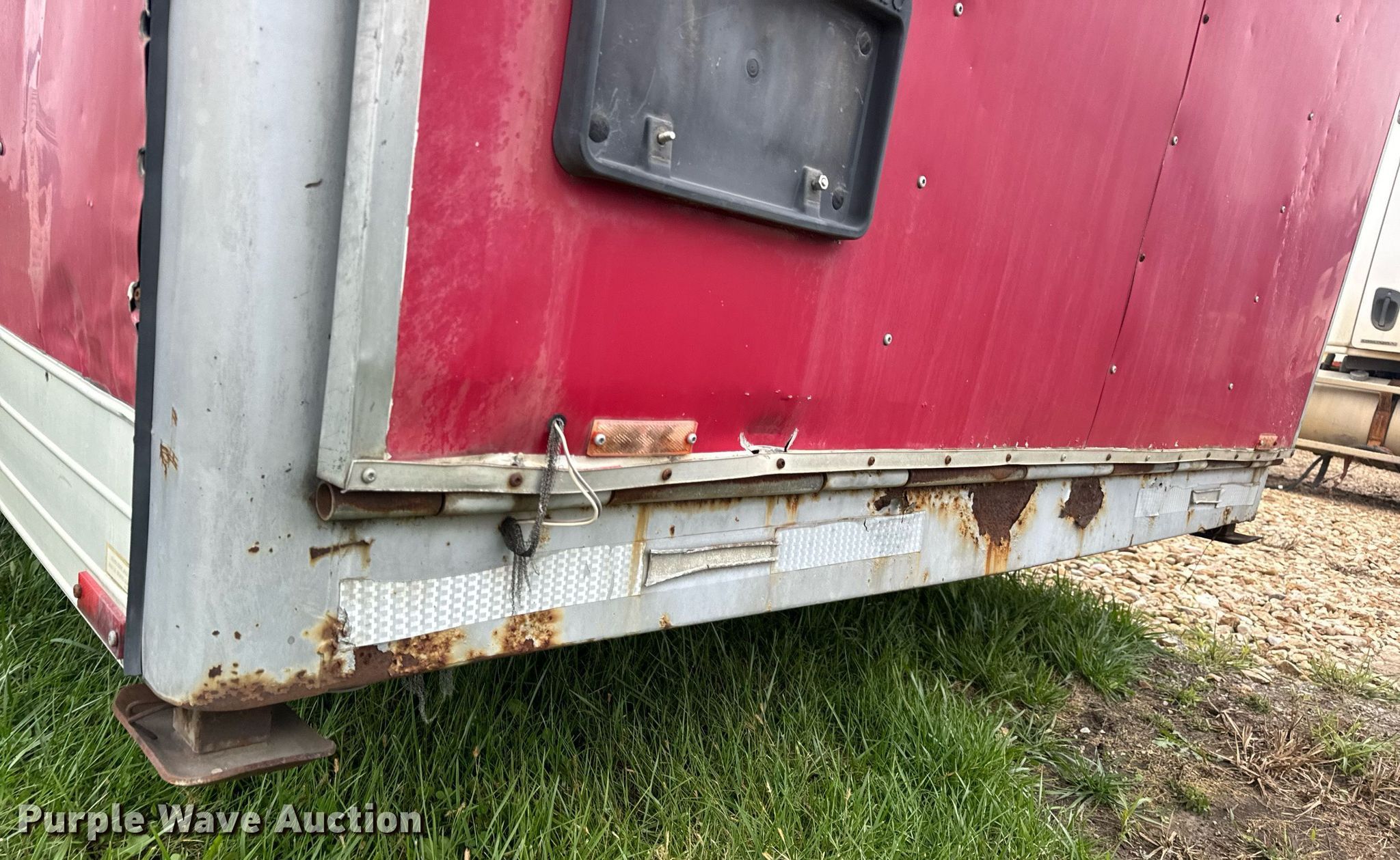 2002 Wells Cargo enclosed cargo trailer. VIN: 1WC200J2421101075. Dimensions Overall: 25' 9" L x 101" W, Body: 19' 8" L x 90" W, Rear door / ramp 68.5" L x 85" W. Features Deck type: Wood. Chassis Hitch: Pintle, Landing gear: Single, Brakes: Electric, Axles: Tandem. Tires Steel wheels, Size: ST235/80R16. Notes Tail light missing. Missouri title. Seller is a licensed motor vehicle dealer. The buyer may be required to pay sales tax and/or registration fees to the dealer prior to taking possession. Title will be assigned and distributed by the dealer. Please contact the seller for distribution questions. T&R Equipment. New Bloomfield, MO 65080