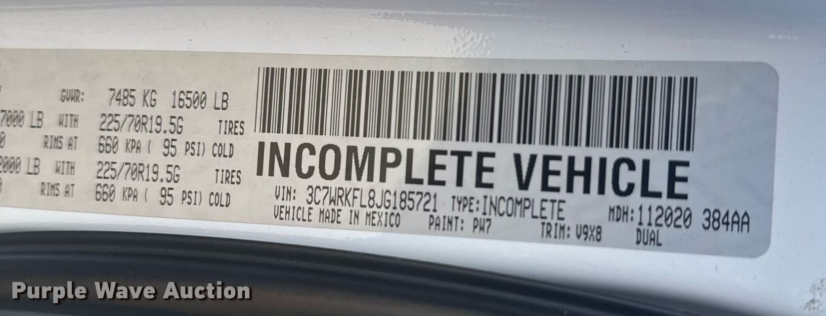 Purple Wave is selling a used Truck Chassis in California. This item is a 2018 Dodge Ram 4500 Crew Cab truck cab and chassis with the following: Miles: 197,539 on odometer, VIN: 3C7WRKFL8JG185721