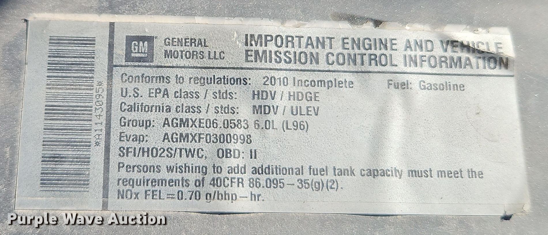 Purple Wave is selling a used Box Truck in Kansas. This item is a 2010 Chevrolet G3500 box truck with the following: Miles: 182,701 on odometer, VIN: 1GB3G2BG6A1143095