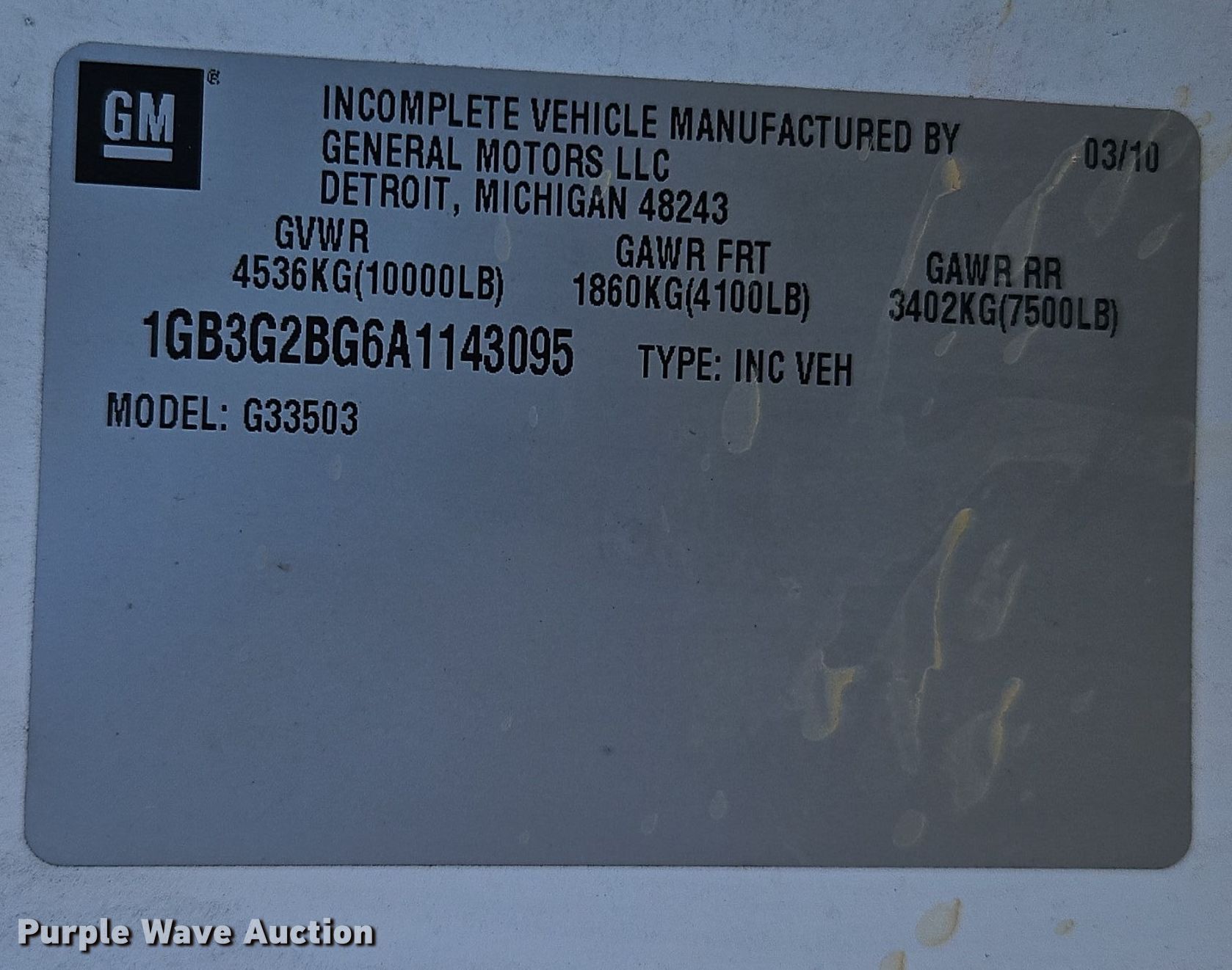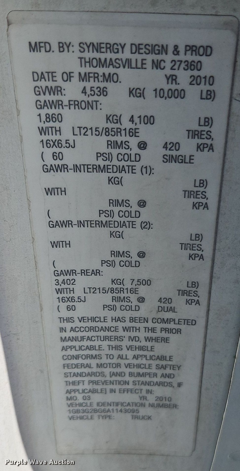 - VIN: 1GB3G2BG6A1143095