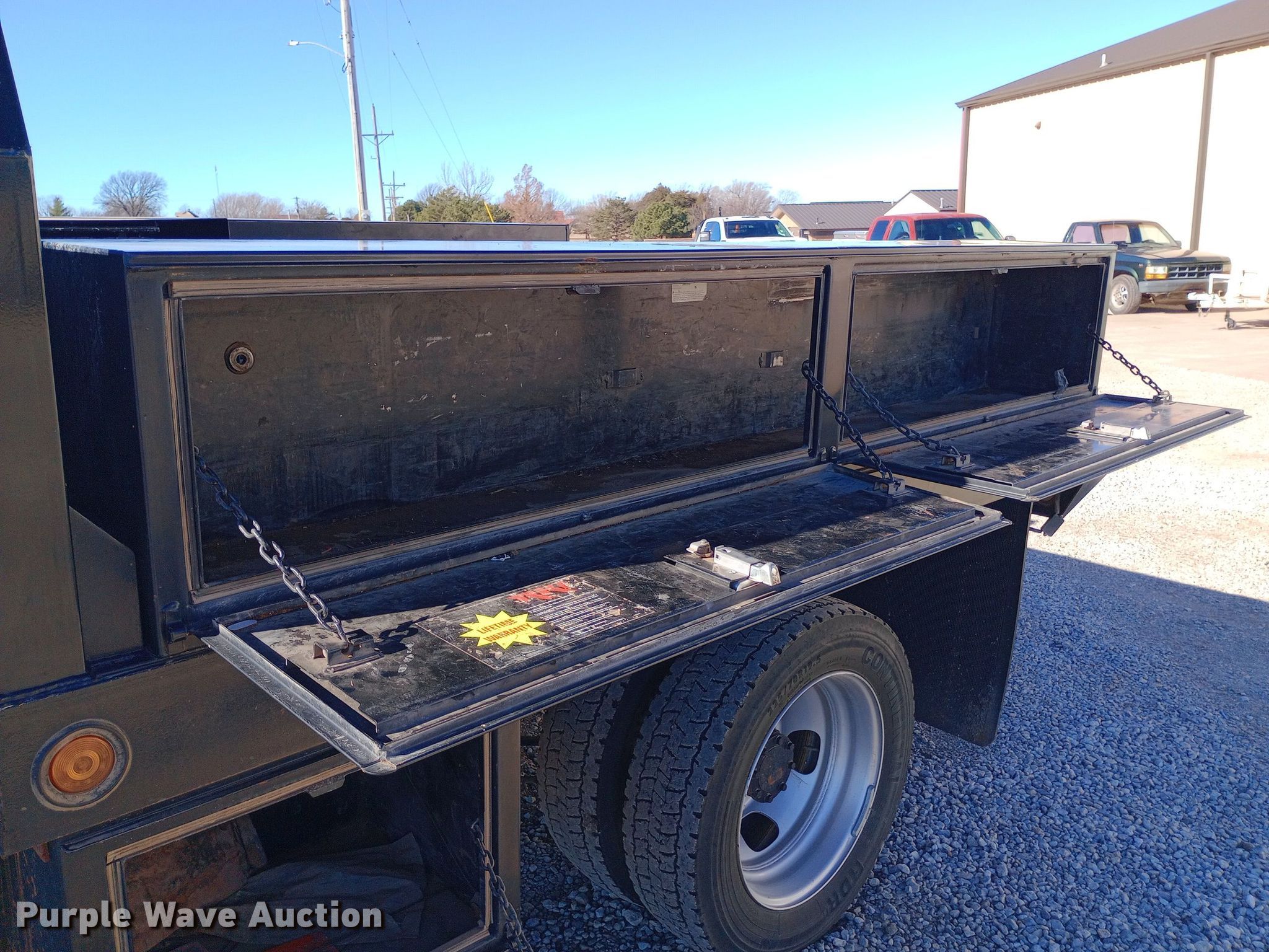 2014 Dodge Ram 5500HD flatbed truck. Miles: 34,536 on odometer, VIN: 3C7WRMAL7EG284765. Engine Displacement: 6.7L L6 OHV, Cylinders: 6, Fuel type: Diesel. Transmission Manual, Speed: 6. Chassis Axles: Single, Suspension: Spring, Brakes: Hydraulic. Interior AC, Heat, Power windows, Power locks, Cruise control, Auxiliary controls, Brake controller. Features Flatbed 9' 4" L x 96" W, Hitch: Inverted king pin. Tires Size: 225/70R19.5. Notes Emergency brake issue, cable handle broken. Kansas title. Title distribution may be delayed up to 14 days from verification of funds. Kanokla Networks. Caldwell, KS 67022