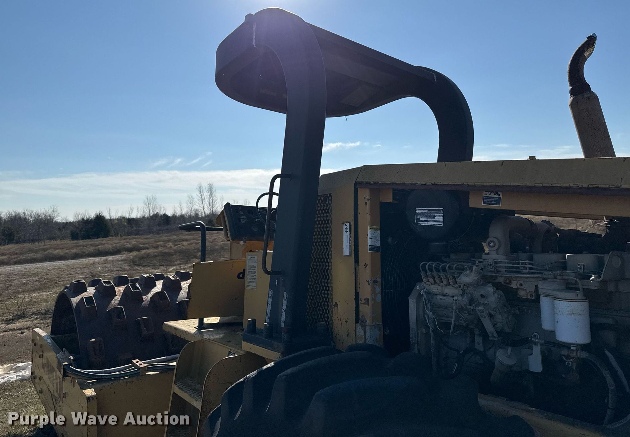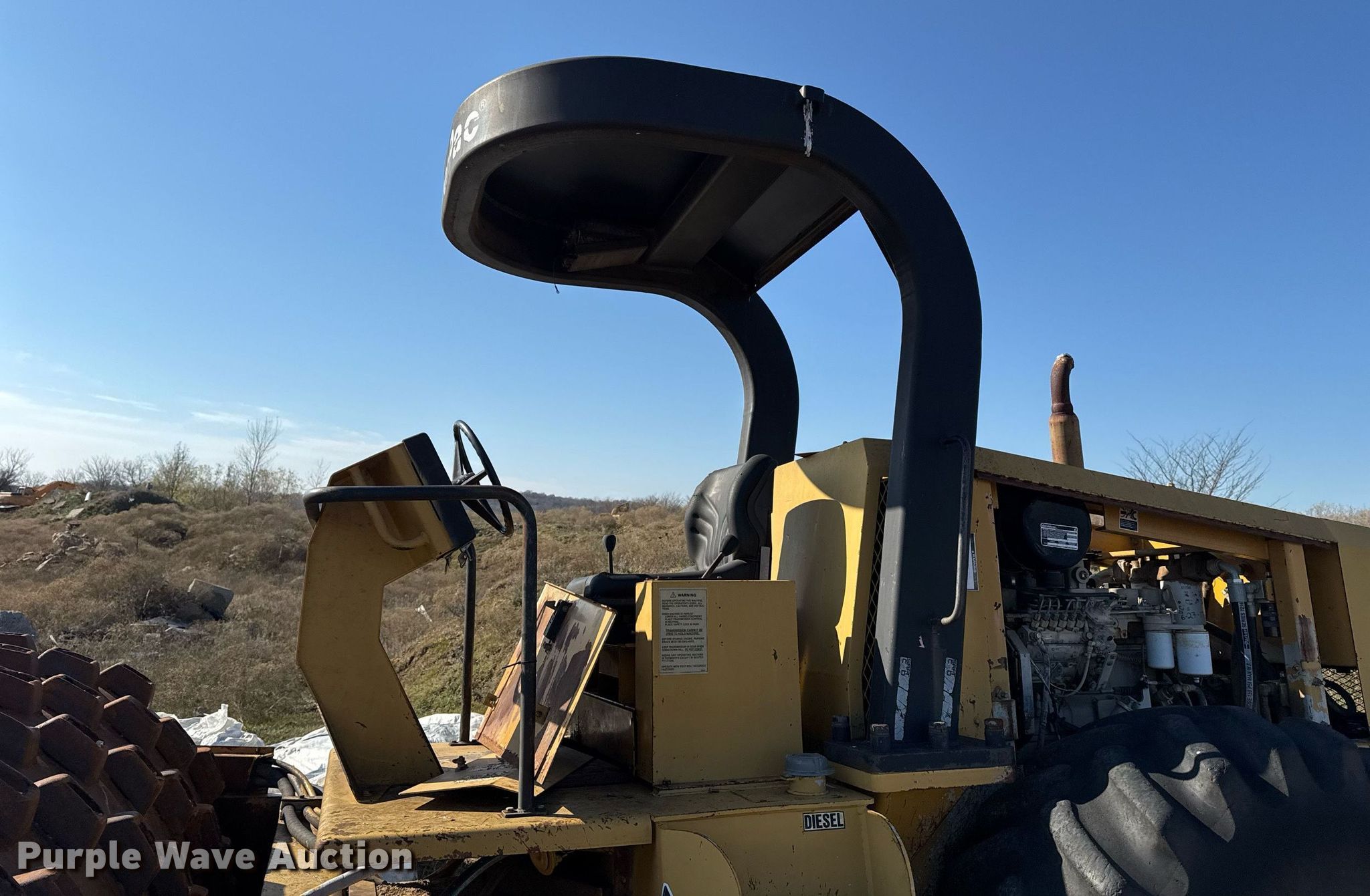1999 SuperPac 840P single drum vibratory roller. Hours: 7,619 on meter, Serial: 101616. Engine Cummins B5.9-C, Serial: 45823779, Displacement: 5.9L, Cylinders: 6, Fuel type: Diesel, HP: 148. Transmission Hydrostatic. Features Drum: Padfoot, Vibratory system: Single, Front drum Width: 84", Diameter: 53", Drum scrapers: Front. Tires Size: 23.1-26. Notes Parts missing, Flat tires, Non-operational unit. Ira Green Construction. Claremore, OK 74017