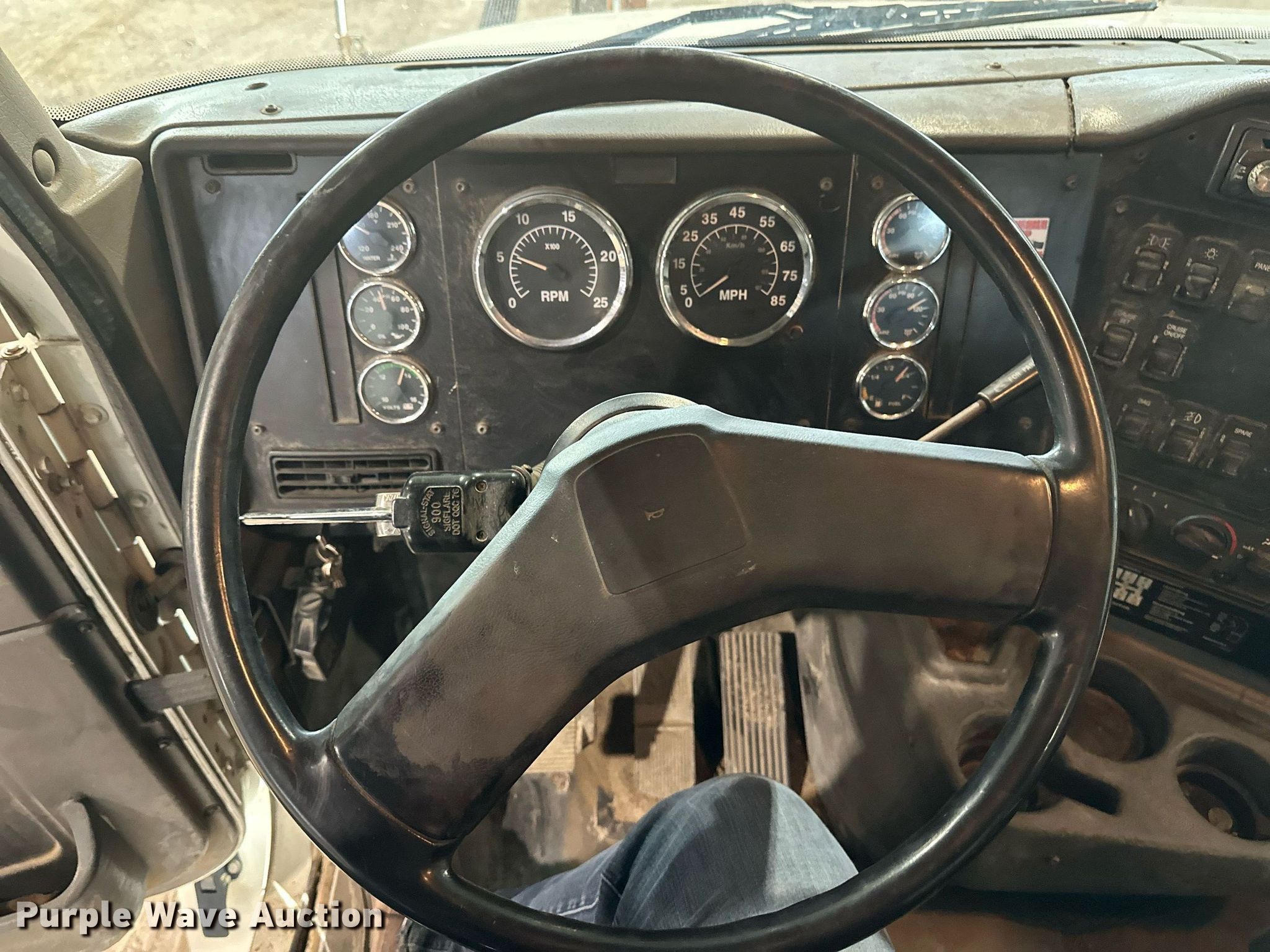 2001 International 9400I flatbed truck. Miles: 517,223 on odometer, Hours: 16,826 on meter, VIN: 2HSCAAHNX1C011878. Engine Cummins ISMC, Displacement: 10.8L, Cylinders: 6, Fuel type: Diesel. Transmission Meritor, Manual, Speed: 10. Chassis Axles: Single, Suspension: Air, Brakes: Air, GVWR: 32,000 lbs. Interior AC, Heat, Cruise control, Auxiliary controls, Brake controller. Features Flatbed 14' 2" L x 8' W. Tires Size: 11R22.5. Notes Dash warning indicator: ABS. Minnesota title. Title distribution may be delayed up to 14 days from verification of funds. Universal Services. Fridley, MN 55432