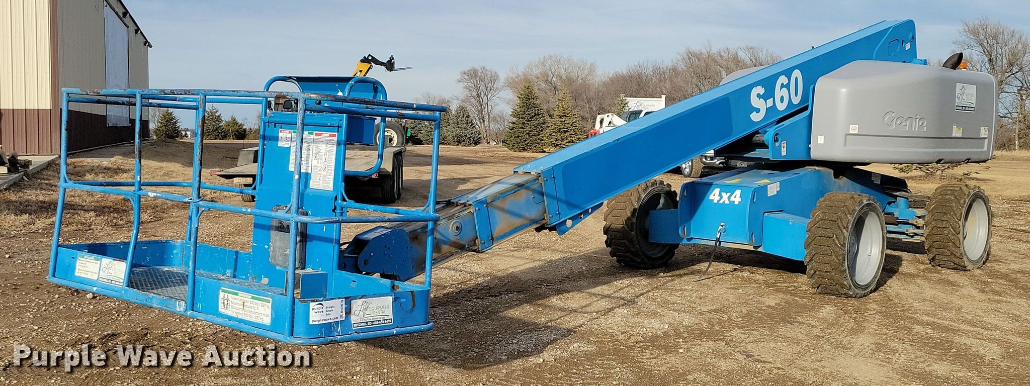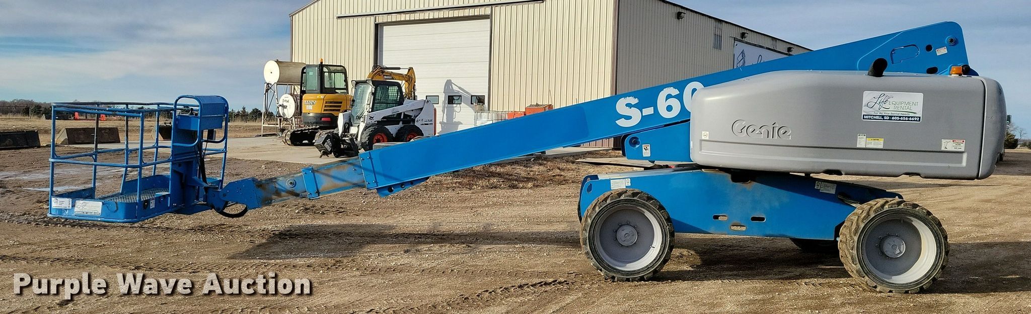Purple Wave is selling a used Boom Lift in South Dakota. This item is a 2006 Genie S-60 boom lift with the following: Hours: 2,278 on meter, Serial: S6006-13263