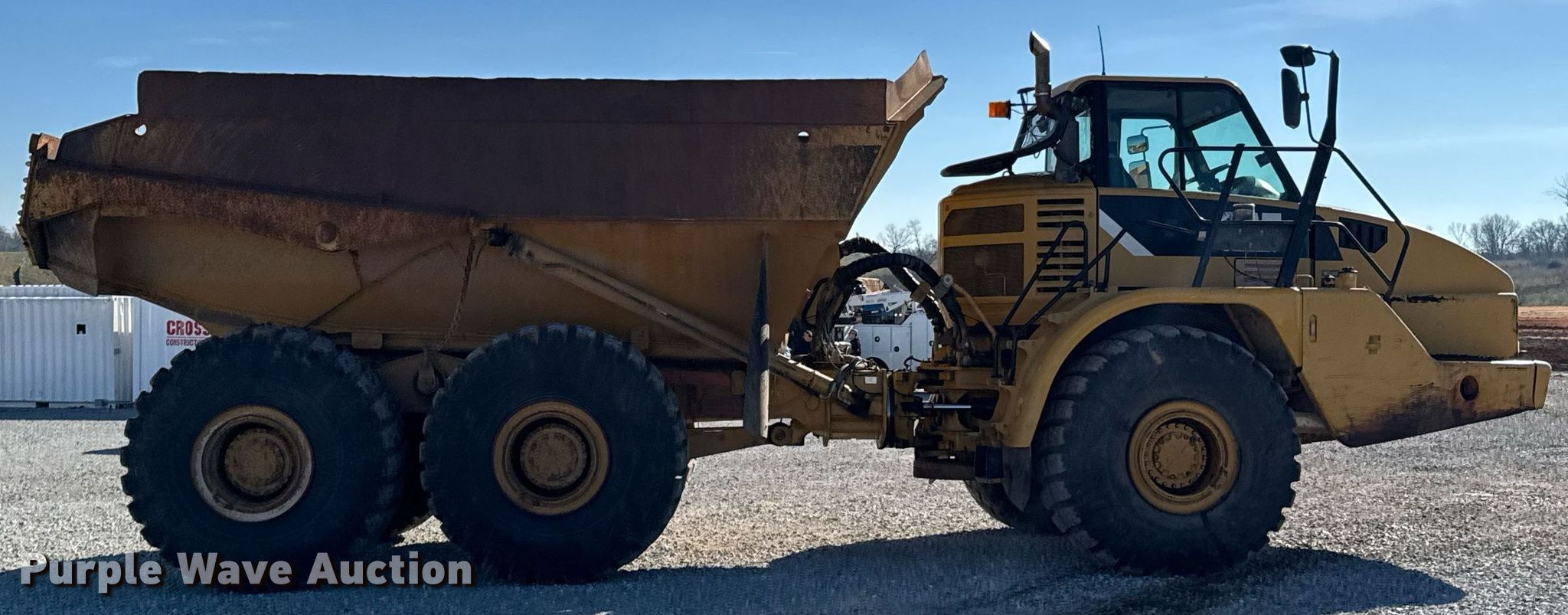 2008 Caterpillar 740 articulated haul truck. Hours: 11,440 on meter, Serial: CAT00740CB1P04520. Engine Caterpillar C15 Acert, Serial: LHX21195, Cylinders: 6, Fuel type: Diesel, HP: 453. Transmission Automatic. Chassis Six wheel drive. Interior AC, Heat. Features Dump bed Capacity: 31 cu.yd., Capacity: 40 tons. Tires Size: 29.5R25. Crossland Heavy Contractors Inc.. Bentonville, AR 72713