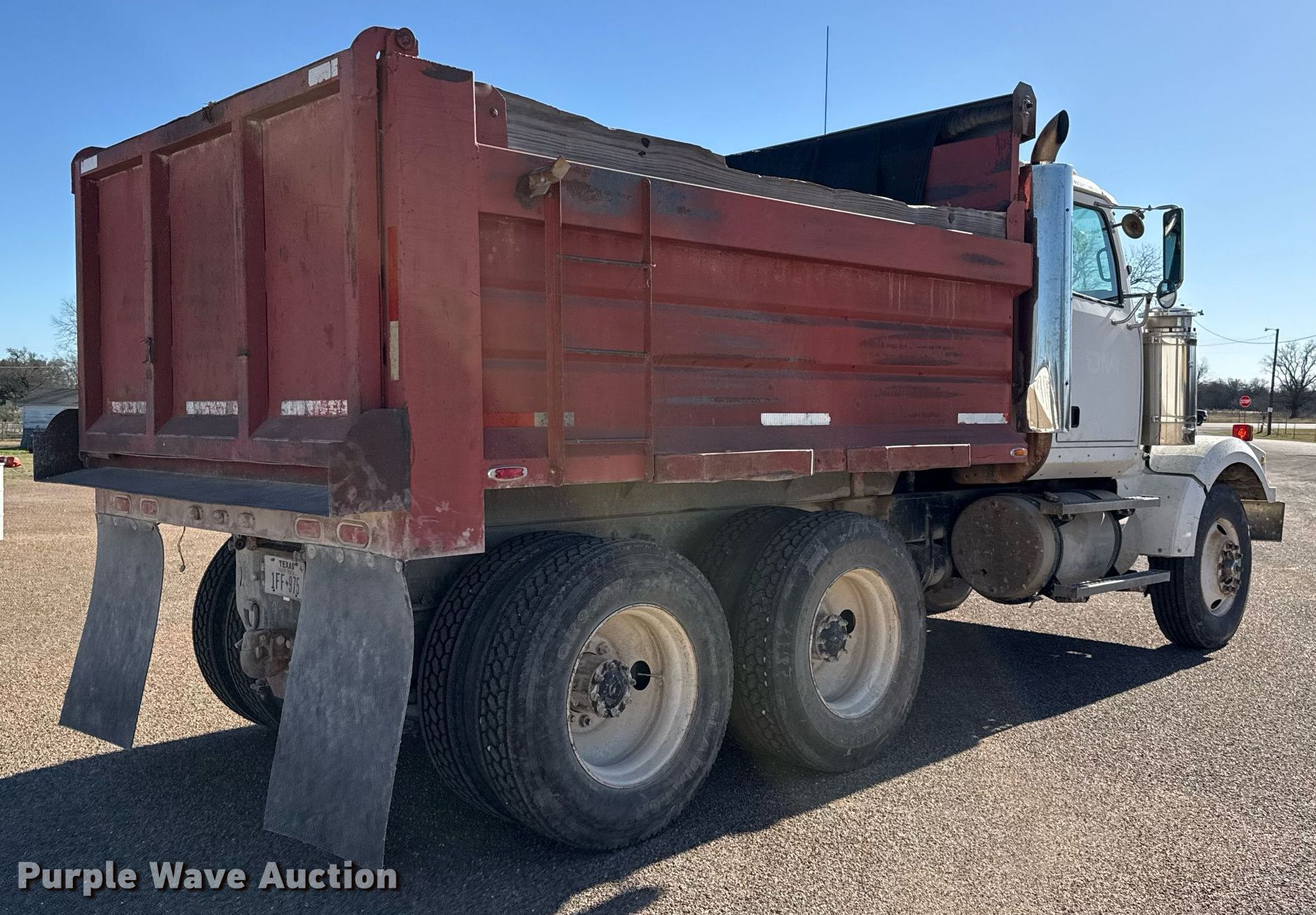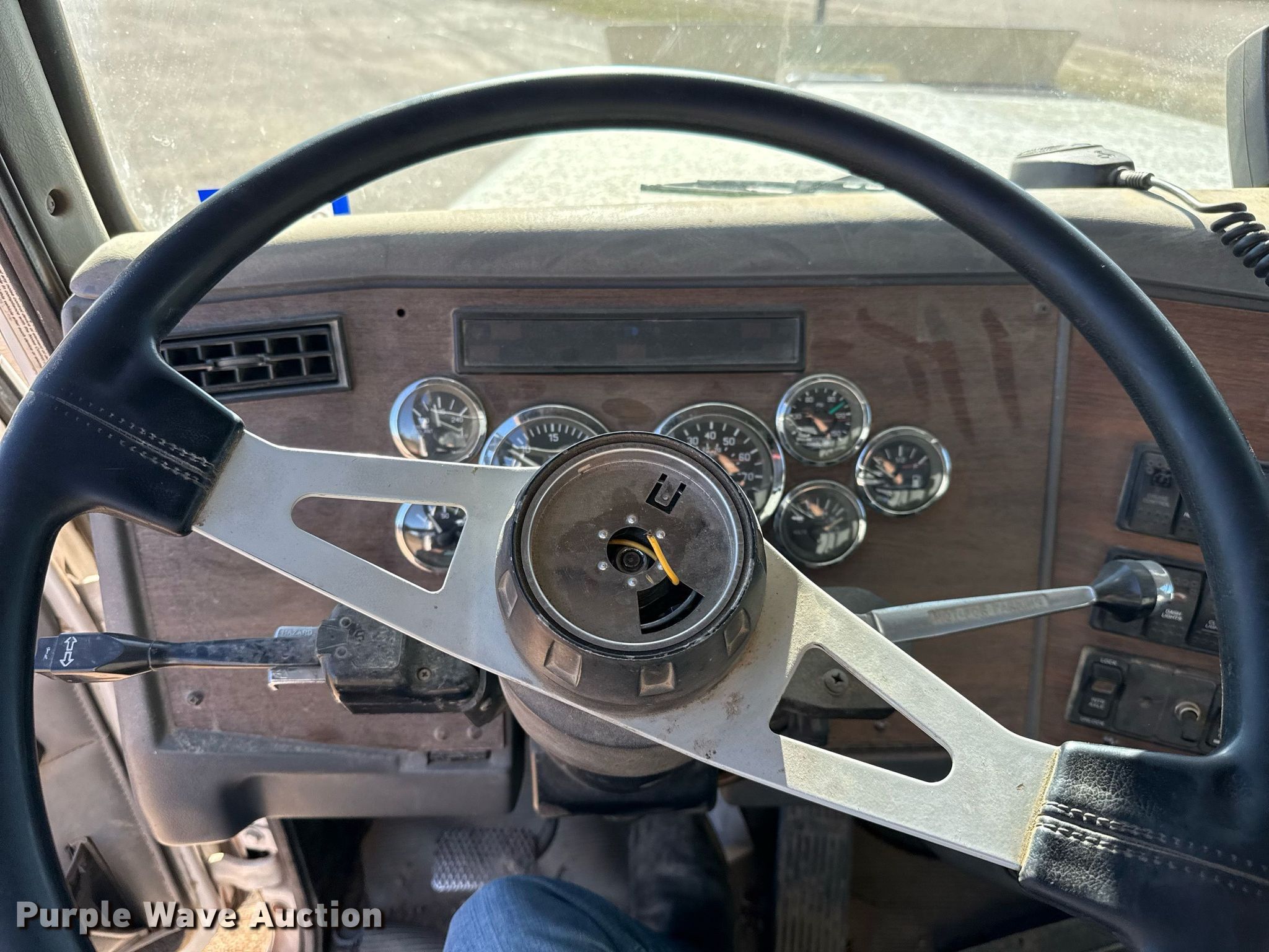 1997 Western Star 4964FX dump truck. Miles: 443,576 on odometer, Miles or hours may vary, unit still in use, VIN: 2WKPDDPF5VK948096. Engine Cummins M11-370E, Displacement: 10.8L, Cylinders: 6, Fuel type: Diesel. Transmission Eaton Fuller, Manual, Speed: 10. Chassis Axles: Tandem, Differential lock: Inter-axle, Suspension: Air Dump valves, Brakes: Air, PTO, GVWR: 52,000 lbs FAWR: 12,000 lbs, IAWR: 20,000 lbs, RAWR: 20,000 lbs. Interior AC, Heat, Cruise control. Features Dump bed 12' L x 8' W, Side height: 42", Side board height: 8", Bed type: Steel, Roll tarp Ram: Single, End gate: Air operated. Tires Size: 11R24.5. Notes AC issues, does not blow cold, Windshield chipped or cracked, Driver side window handle missing, Non-operational roll tarp Parts missing. Texas title. Title distribution may be delayed up to 14 days from verification of funds. Oglesby, TX 76561