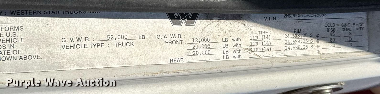 Purple Wave is selling a used Construction Dump Truck in Texas. This item is a 1997 Western Star 4964FX dump truck with the following: Miles: 443,576 on odometer, Miles or hours may vary, unit still in use, VIN: 2WKPDDPF5VK948096