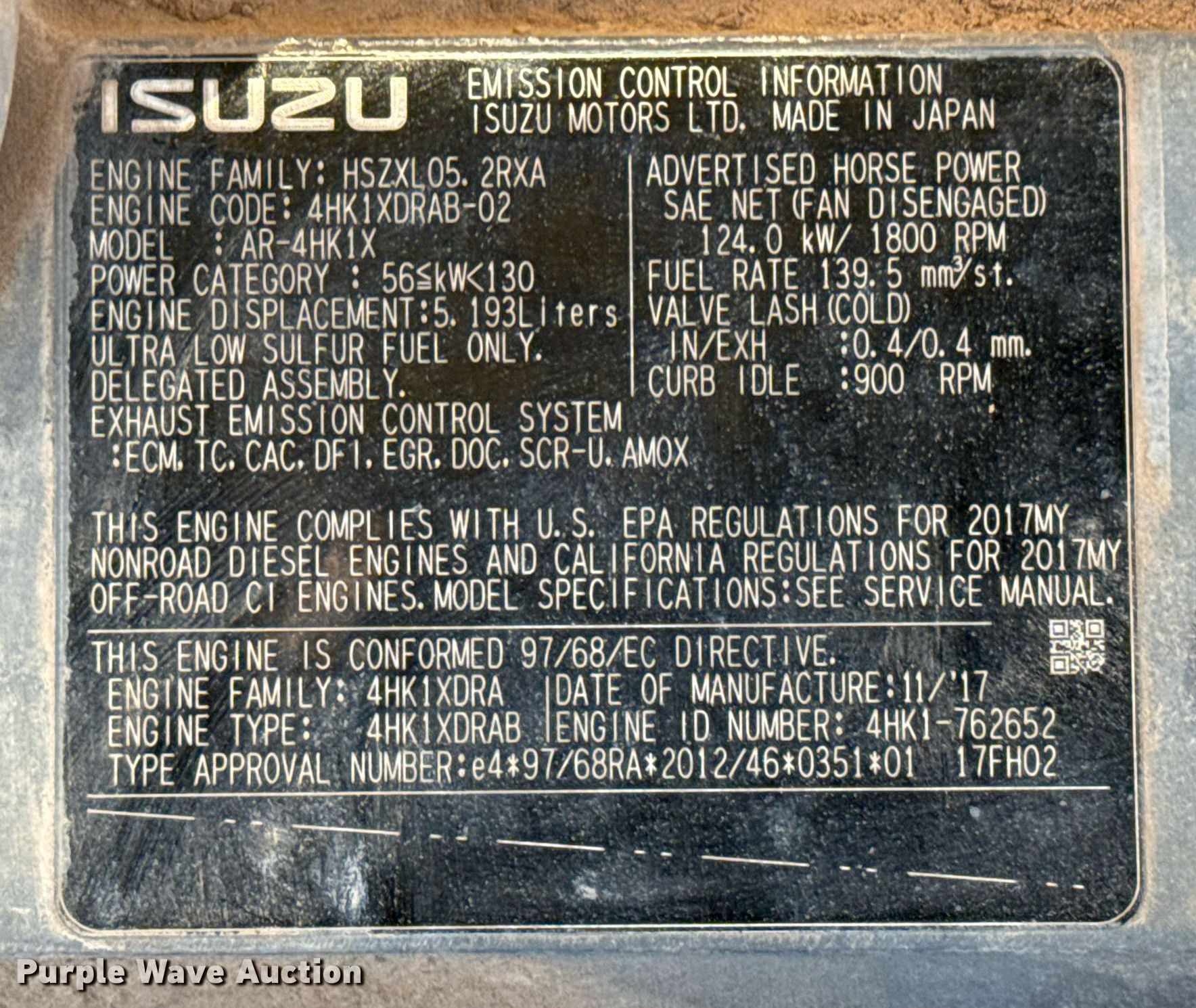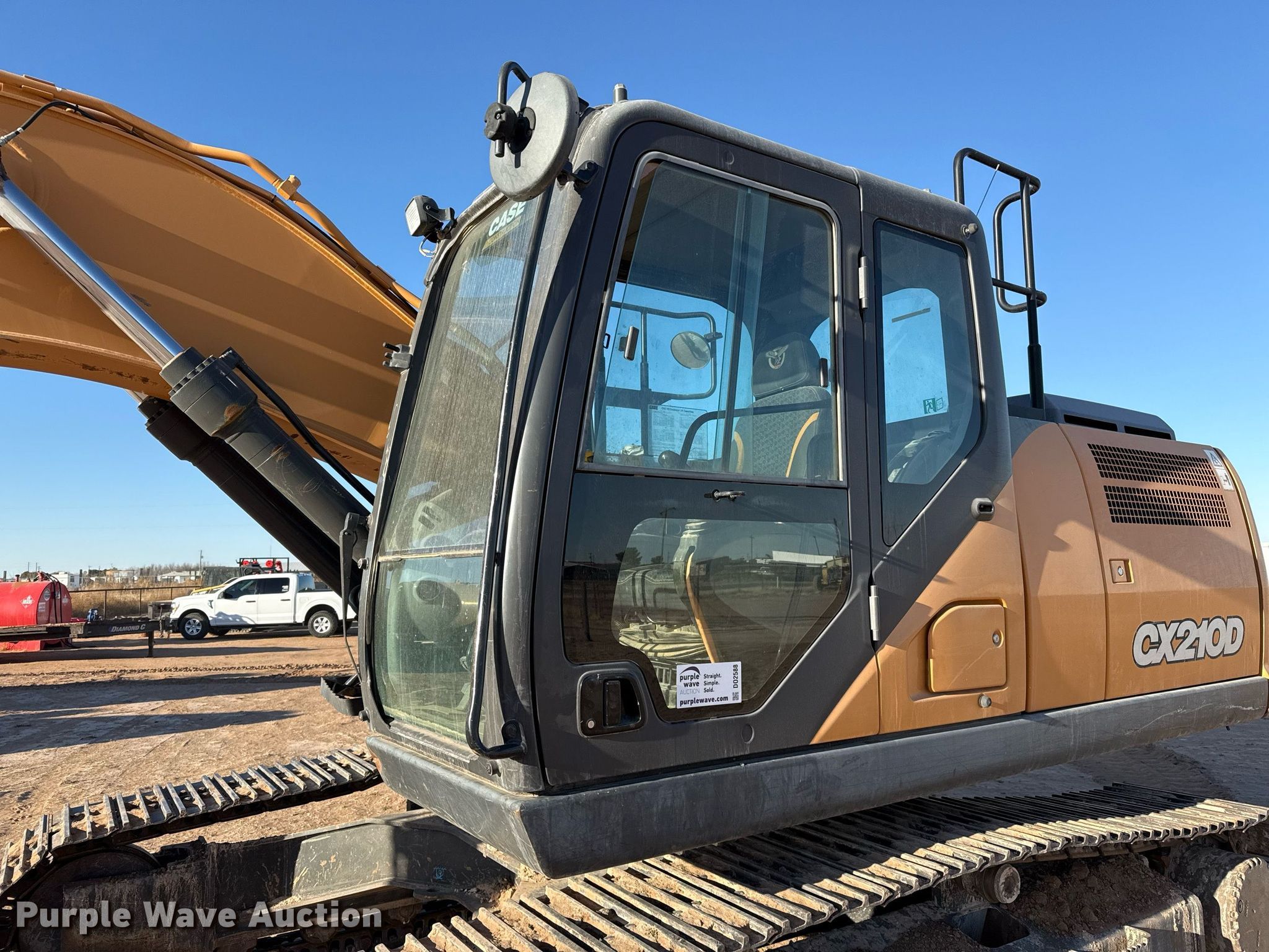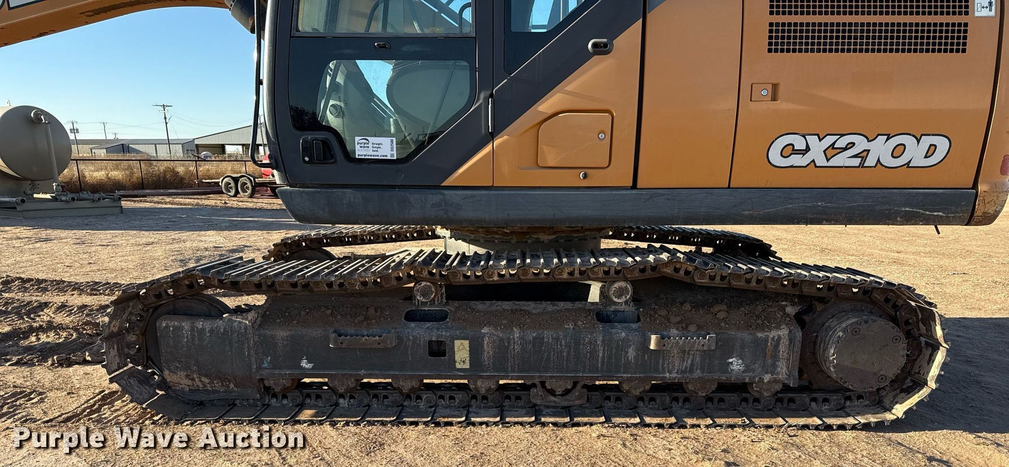 2017 Case CX210D excavator. Hours: 6,761 on meter, Serial: DAC210K7NHS7H1699. Engine Isuzu AR-4HK1X, Displacement: 5.193L, Cylinders: 4, Fuel type: Diesel, kW: 124. Transmission Hydrostatic, Two speed travel. Operators station Enclosed cab, AC, Heat, Backup camera, Pattern changer. Features Auxiliary hydraulics, Boom Standard, Stick Stick length: 9' 8", Bucket Width: 36", Teeth: 5. Tracks Width: 25", Steel, Grouser pads: Triple. Notes Warning indicator: Check engine. Midland, TX 79707