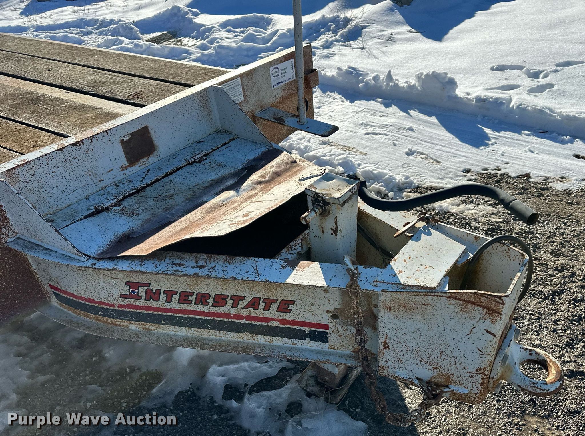 1995 Interstate 20DT equipment trailer. VIN: 1JK0DT209SA100133. Dimensions Overall: 30' L x 102" W, Deck: 20' L x 102" W, Tail length: 48", Ramps: Manual. Features Deck type: Wood. Chassis Hitch: Pintle, Landing gear: Single, Suspension: Spring, Brakes: Electric, Axles: Tandem. Tires Steel wheels, Size: 235/85R16. Kansas title. Title distribution may be delayed up to 30 days from verification of funds. Ehrhart Excavating. Hoyt, KS 66440