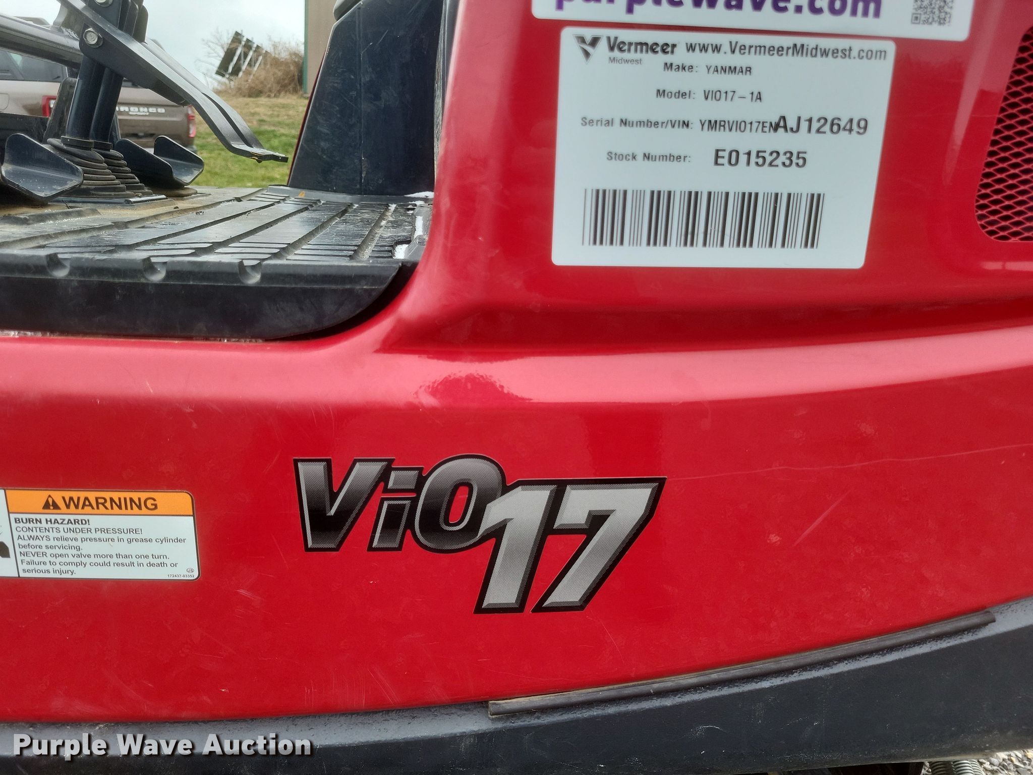 Purple Wave is selling a used Mini Excavator in Missouri. This item is a 2022 Yanmar ViO17 mini excavator with the following: Hours: 219 on meter, Serial: 12649
