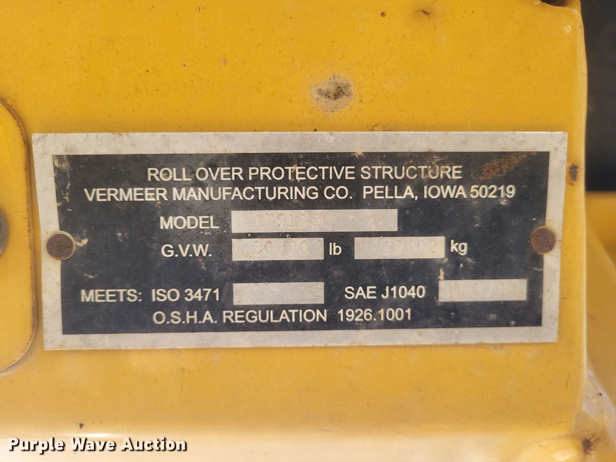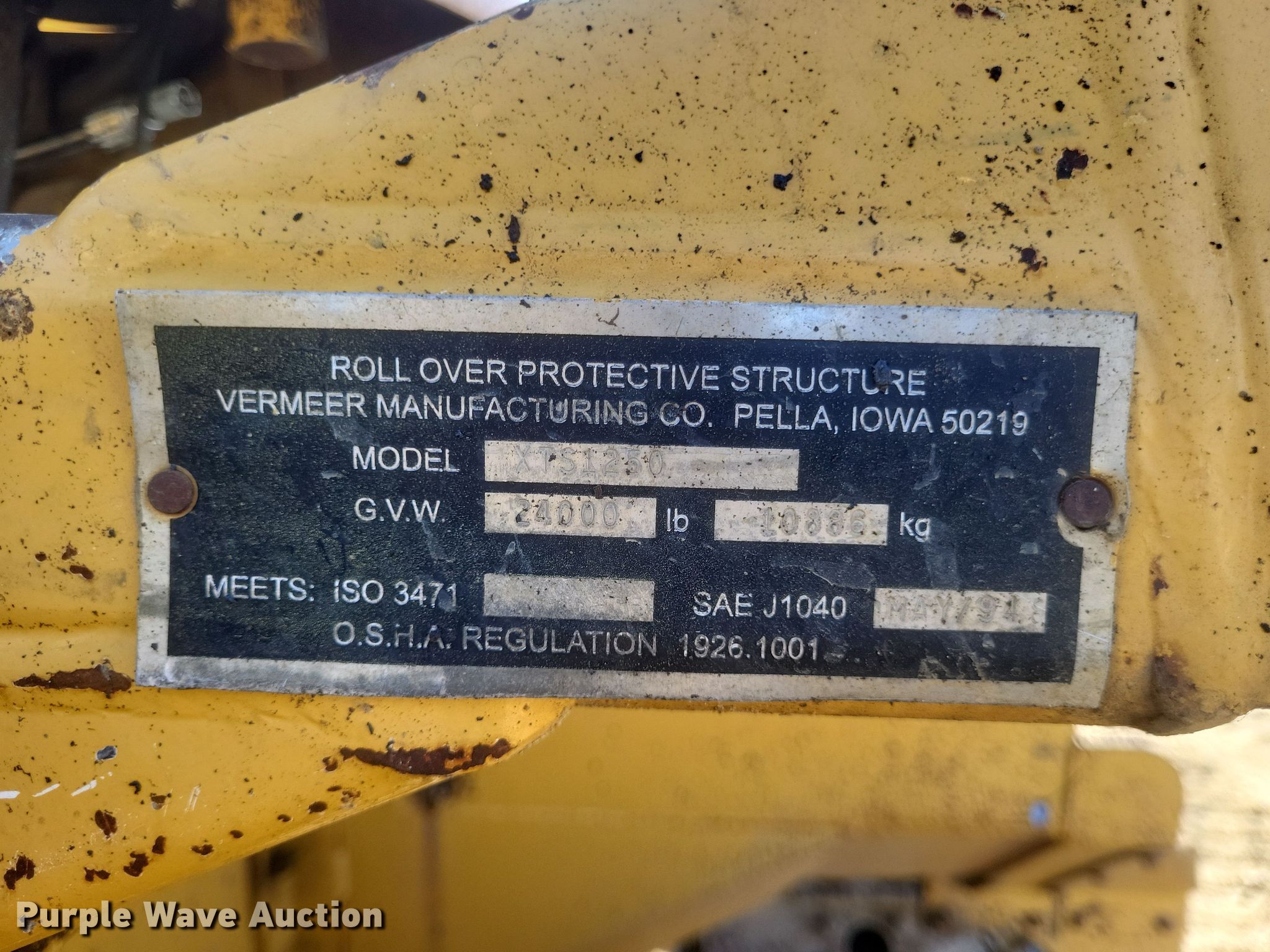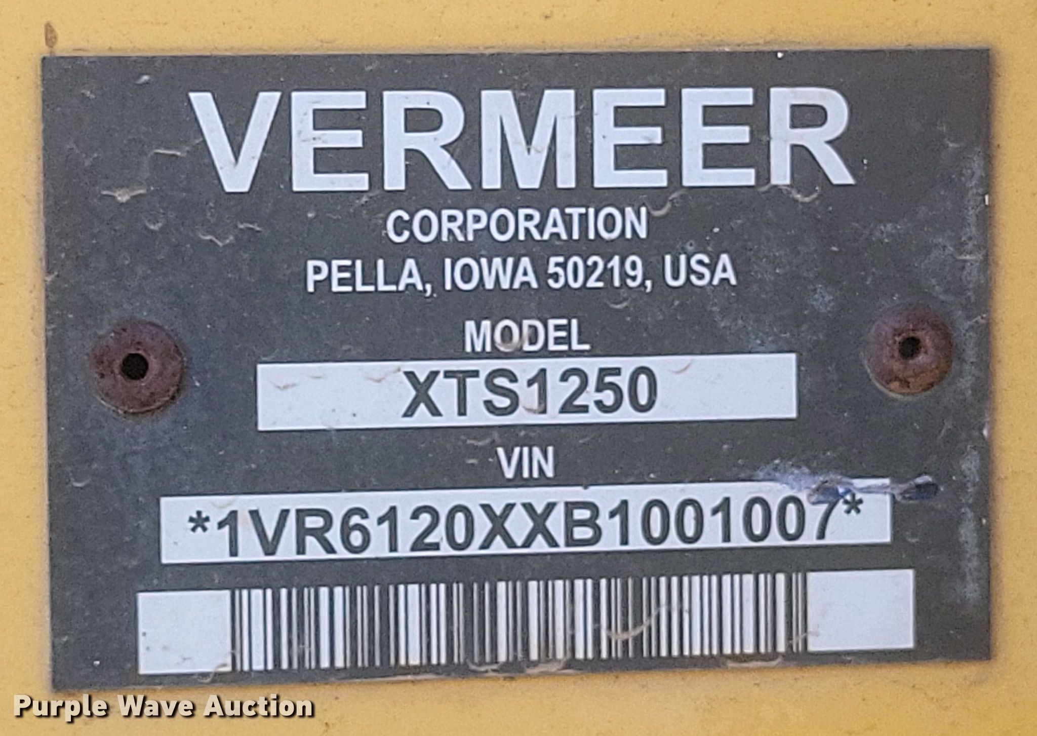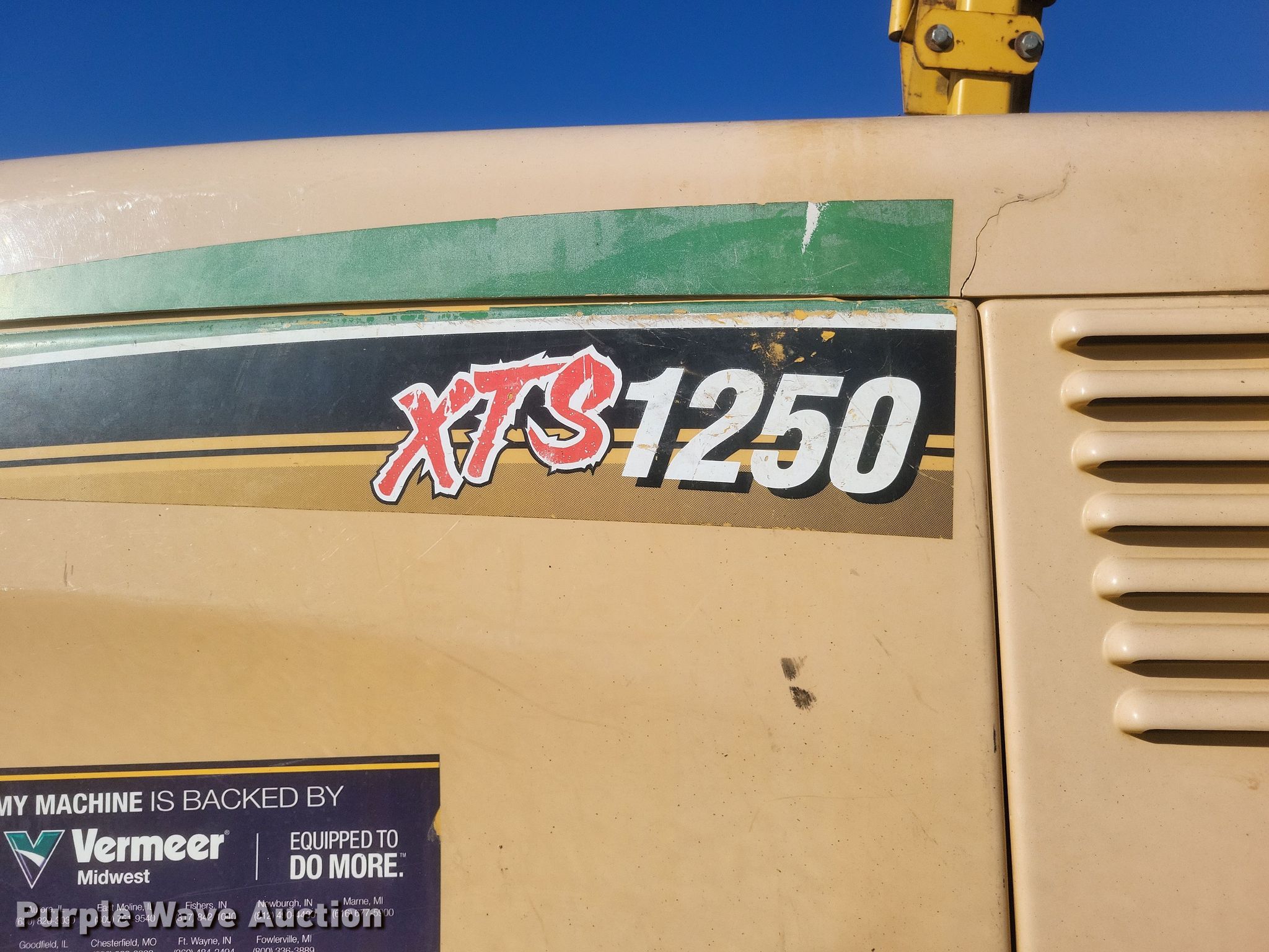 Purple Wave is selling a used Cable Plow in Missouri. This item is a 2011 Vermeer XTS1250 cable plow with the following: Hours: 1,621 on meter, Serial: 1VR6120XXB1001007