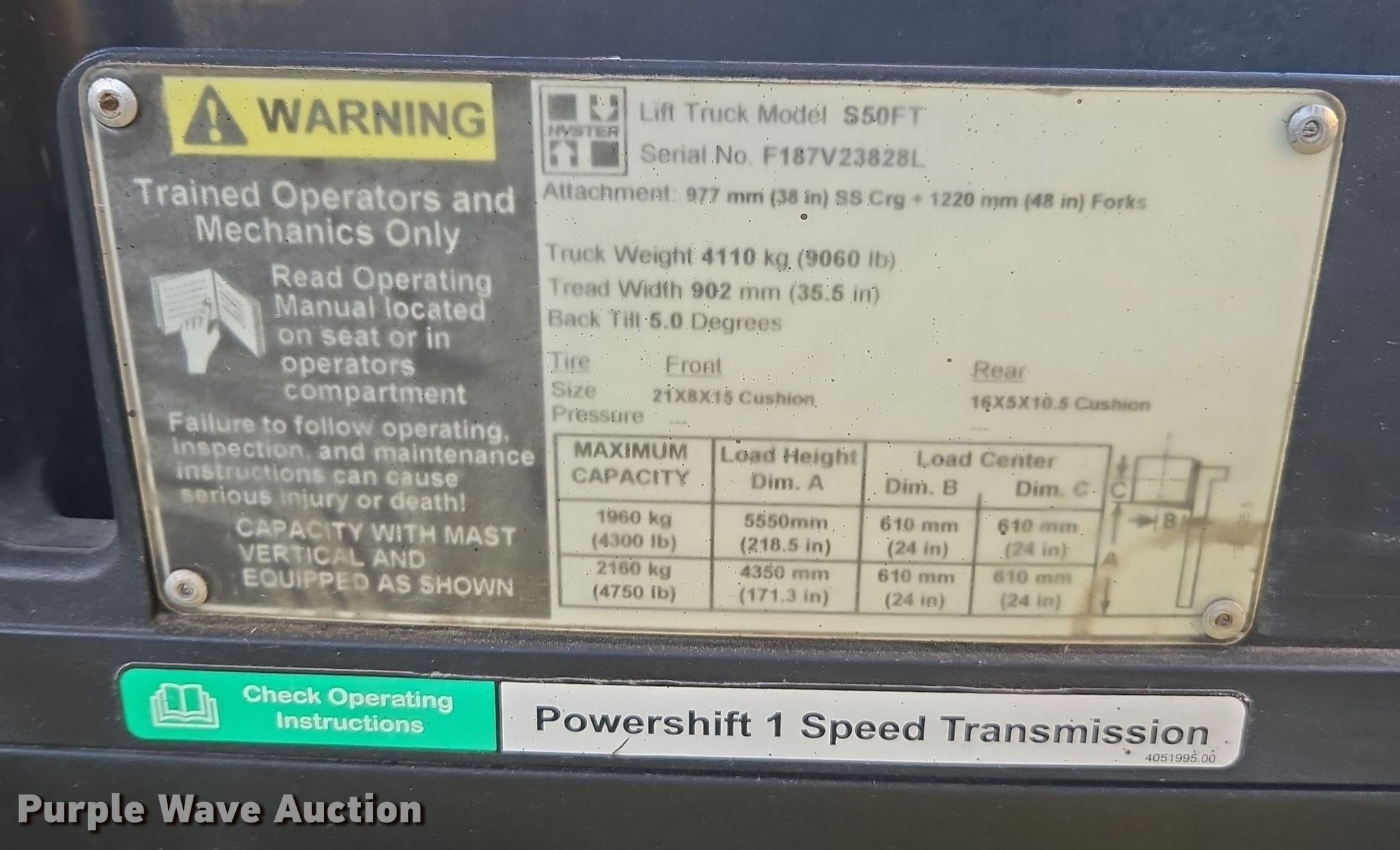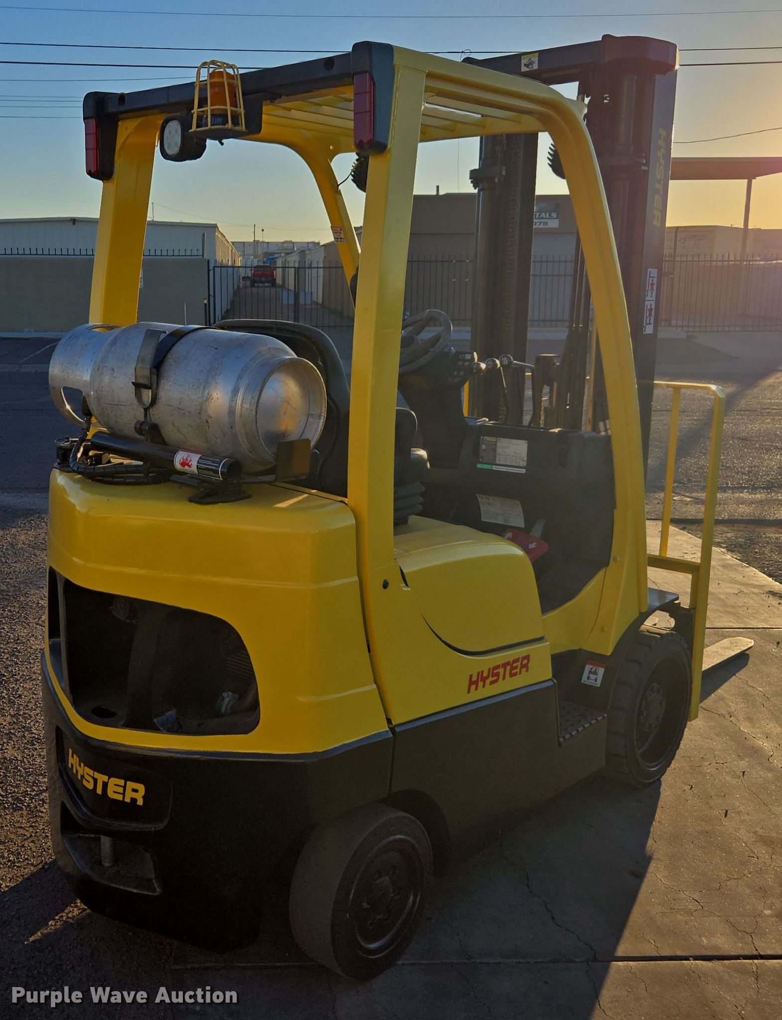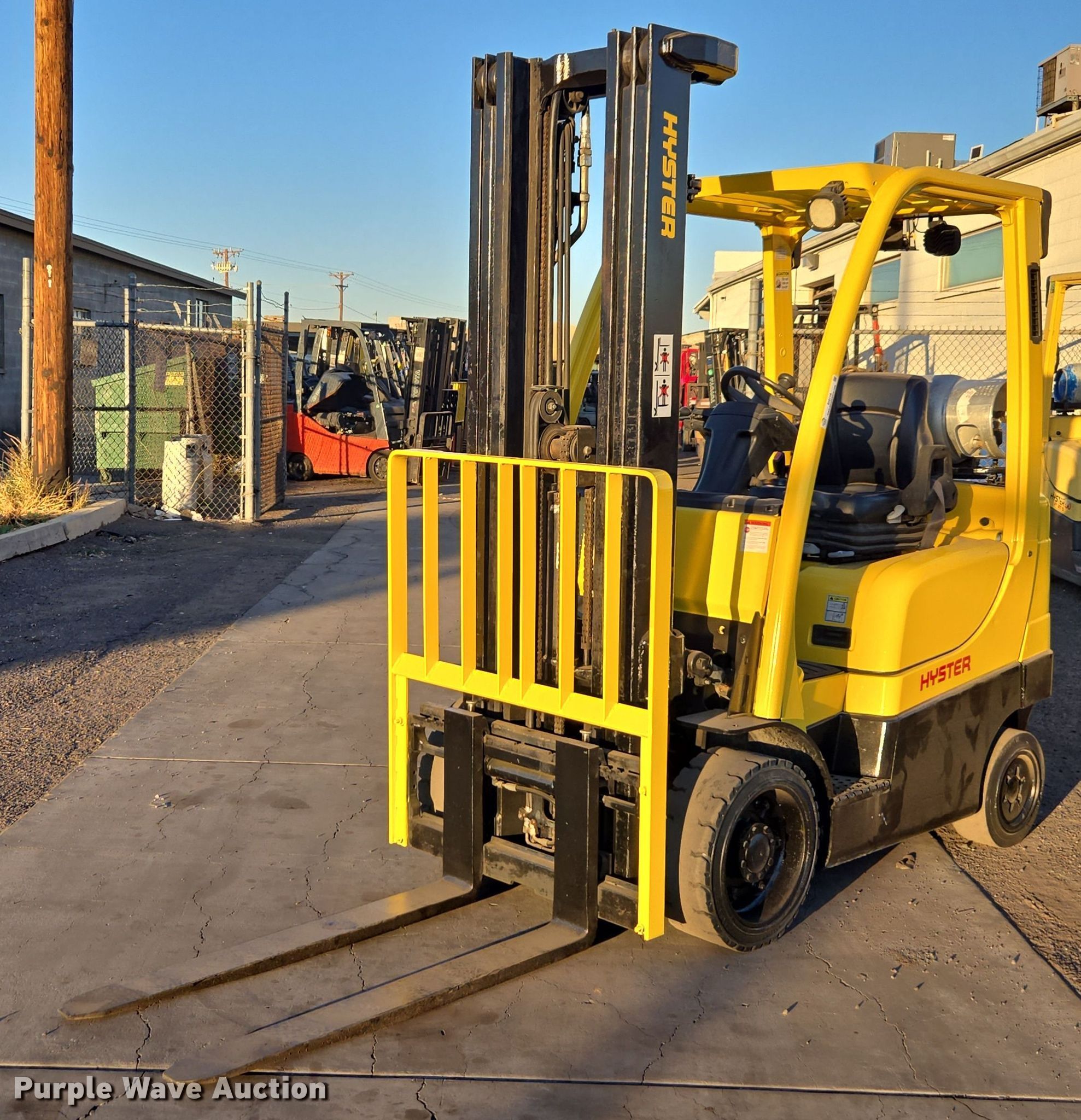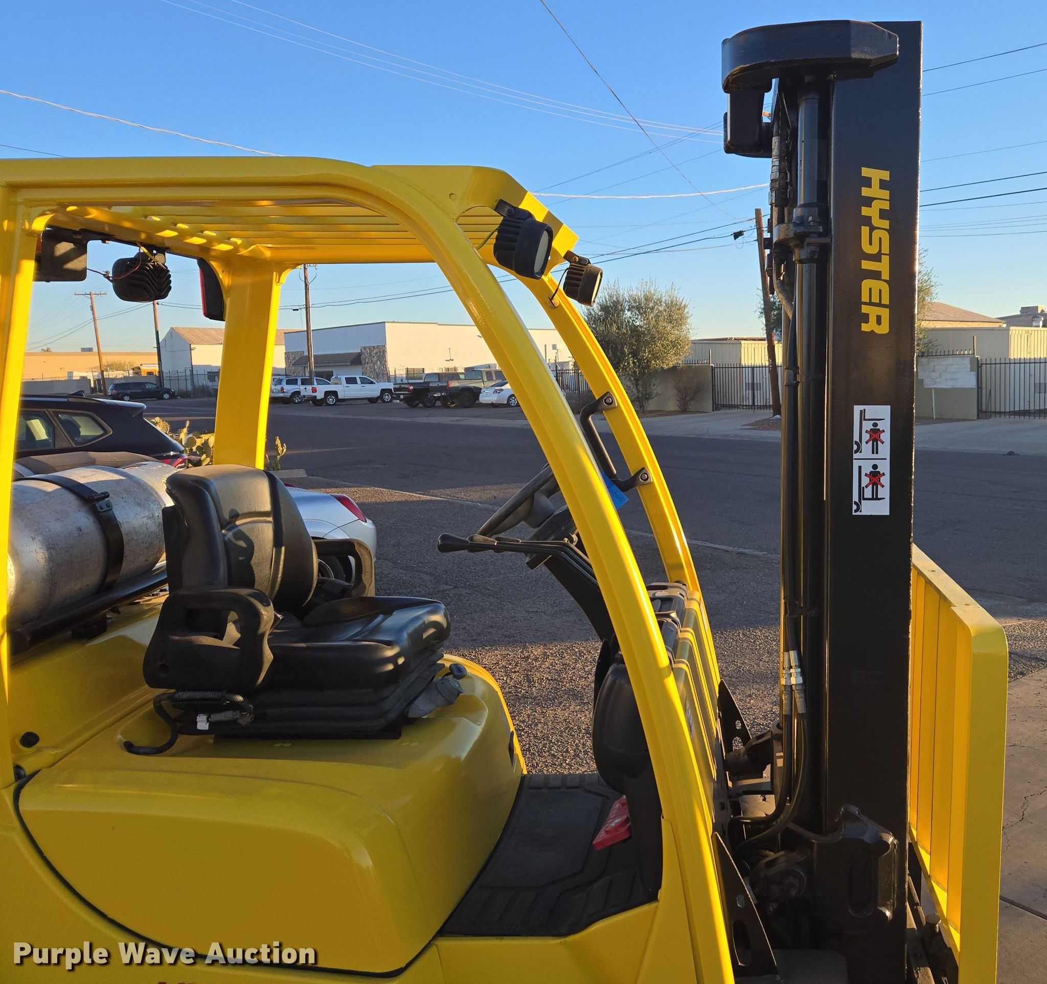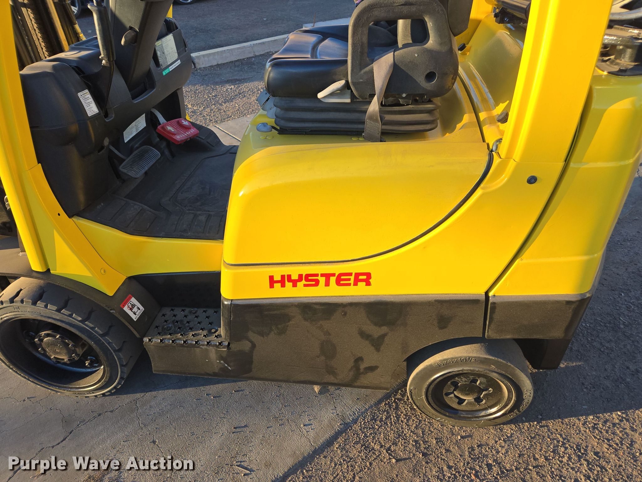 Purple Wave is selling a used Cushion Tire or Pneumatic Forklift in Arizona. This item is a 2013 Hyster S50FT forklift with the following: Hours: 9,883 on meter, Serial: F187V23828L