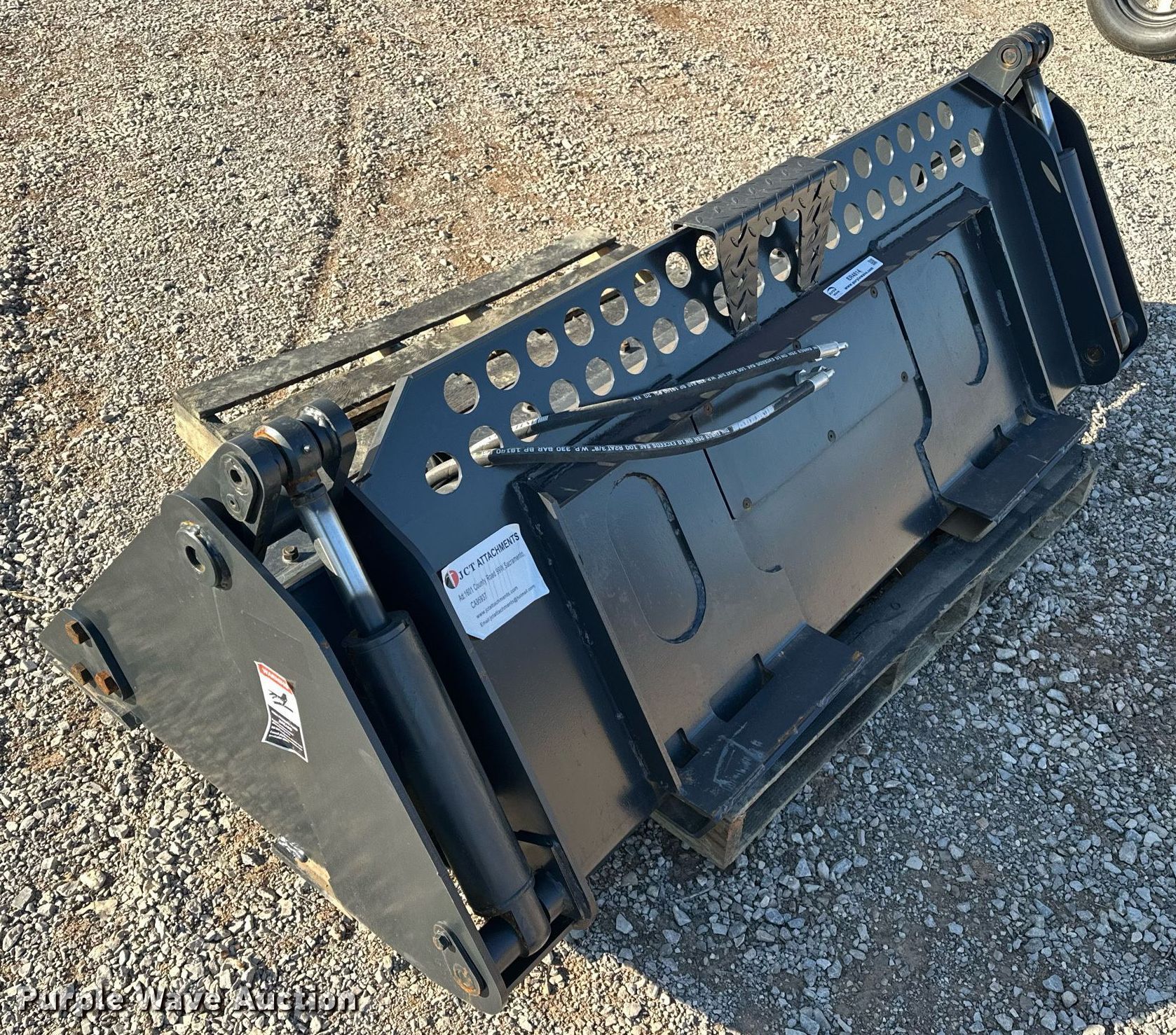 Purple Wave is selling a used Skid Steer Attach. in Oklahoma. This item is a JCT 72" W skid steer bucket with the following: Low profile, Four-in-one, Cutting edge: Bolt-on
