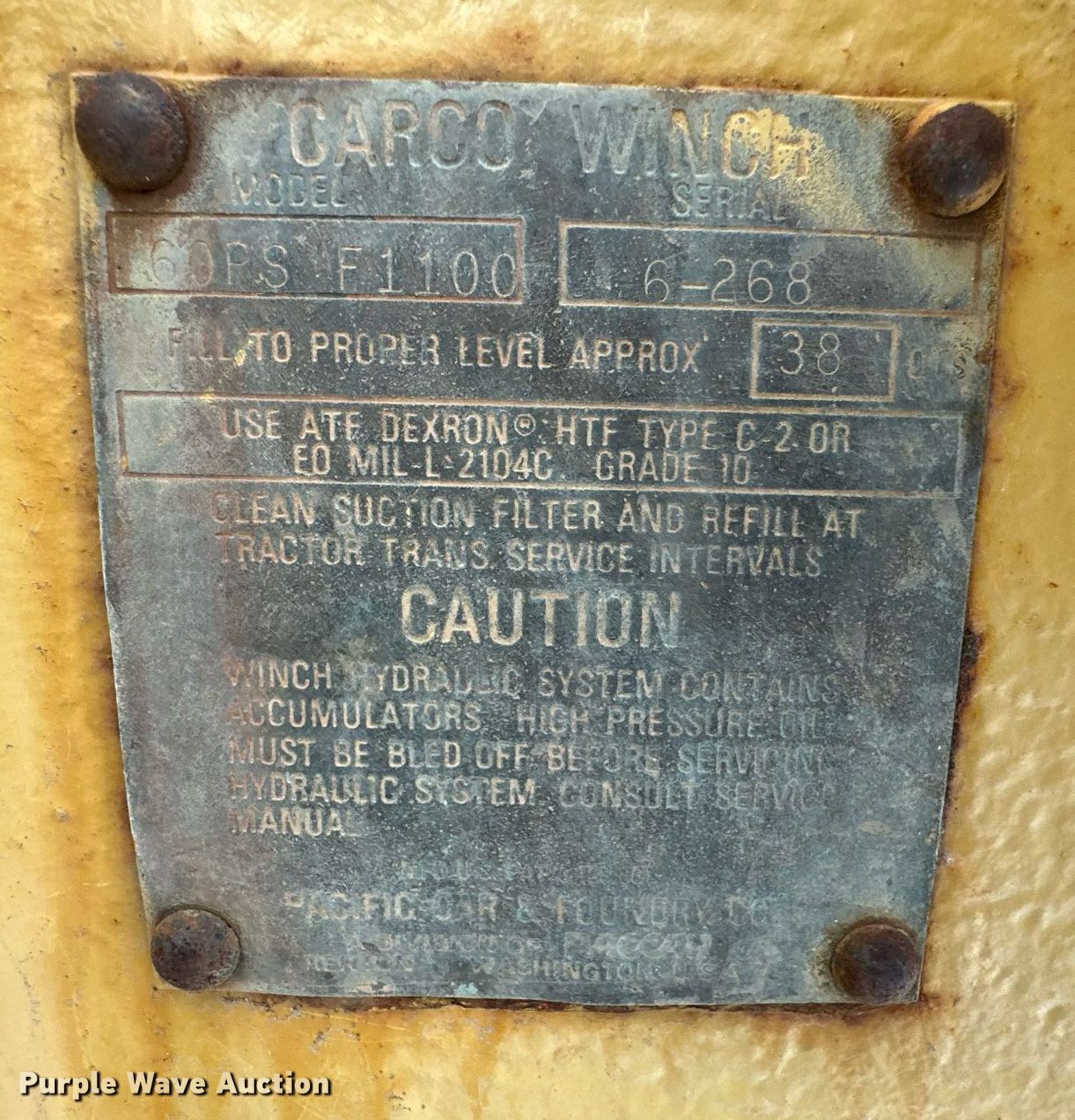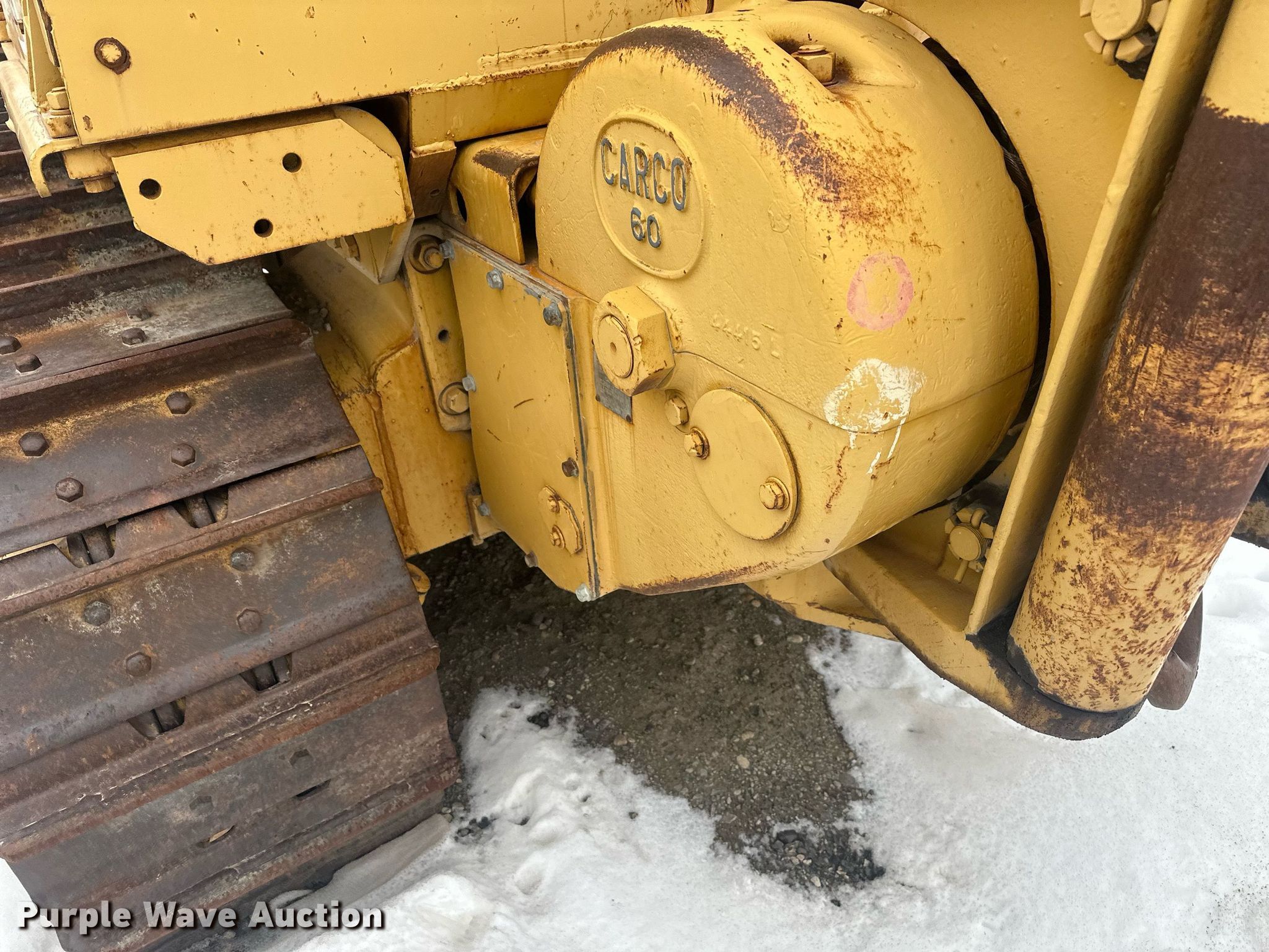 1981 Caterpillar D6D cable plow. Hours: 8,129 on meter, Serial: 04X07365. Engine Serial: 8Z006162, Cylinders: 6, Fuel type: Diesel. Transmission Powershift, 3F - 3R. Operators station OROPS, Steering: Clutch brake. Features Screen guards, Sweeps, Attachments Winch Carco 60PS F1100, Cable: 1", Serial: 6-268, Front cable reel Width: 76".. Tracks Width: 22", Grouser pads: Single, Bottom rollers: 6. Notes Non-operational unit. Push Incorporated. Billings, MT 59106