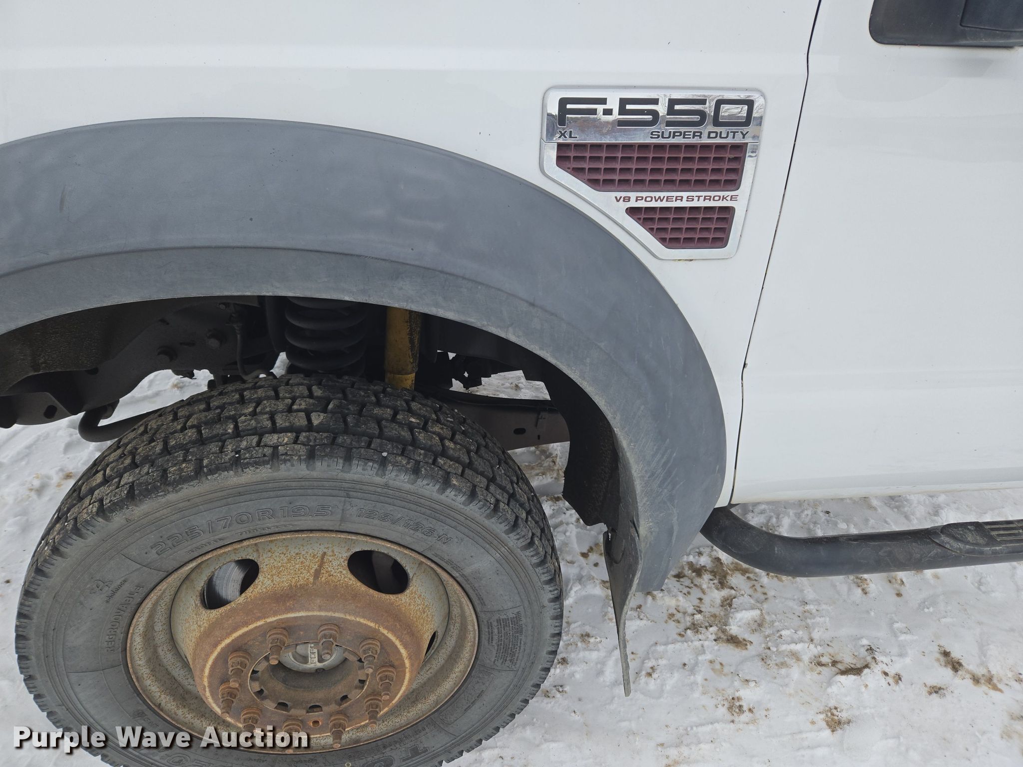 This 2008 Ford F550 Super Duty XL truck cab and chassis will sell to the highest bidder regardless of price.