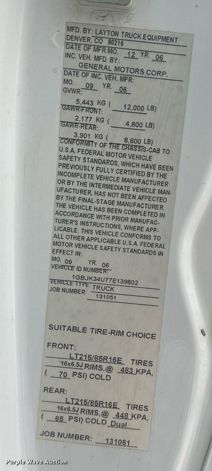 Purple Wave is selling a used 3/4 or 1 Ton Pickup or Van in Montana. This item is a 2007 Chevrolet Silverado 3500 utility bed pickup truck with the following: Miles: Unknown, VIN: 1GBJK34U77E139802