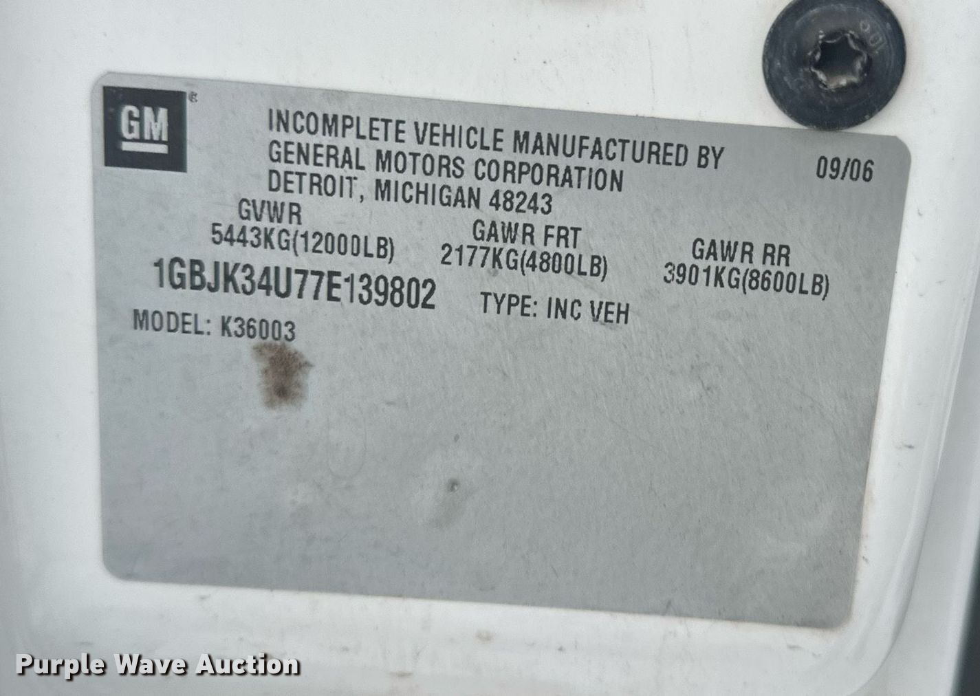 • VIN: 1GBJK34U77E139802