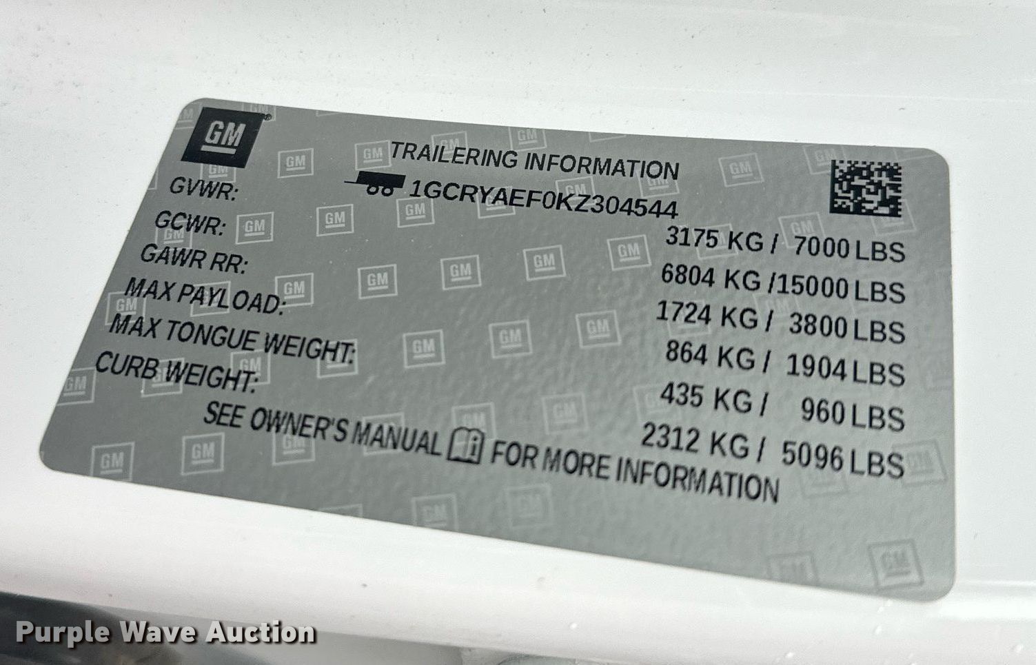 - VIN: 1GCRYAEF0KZ304544