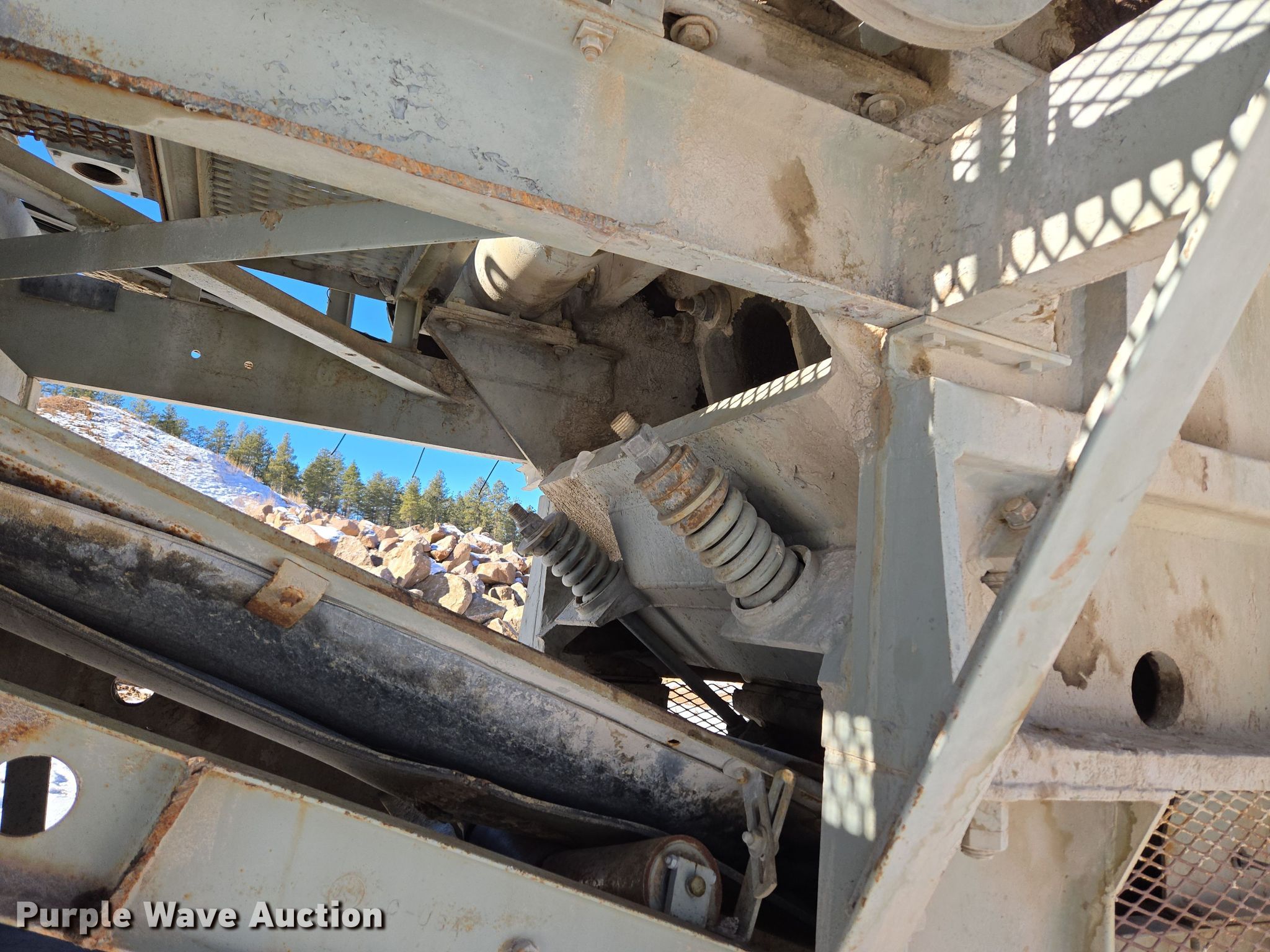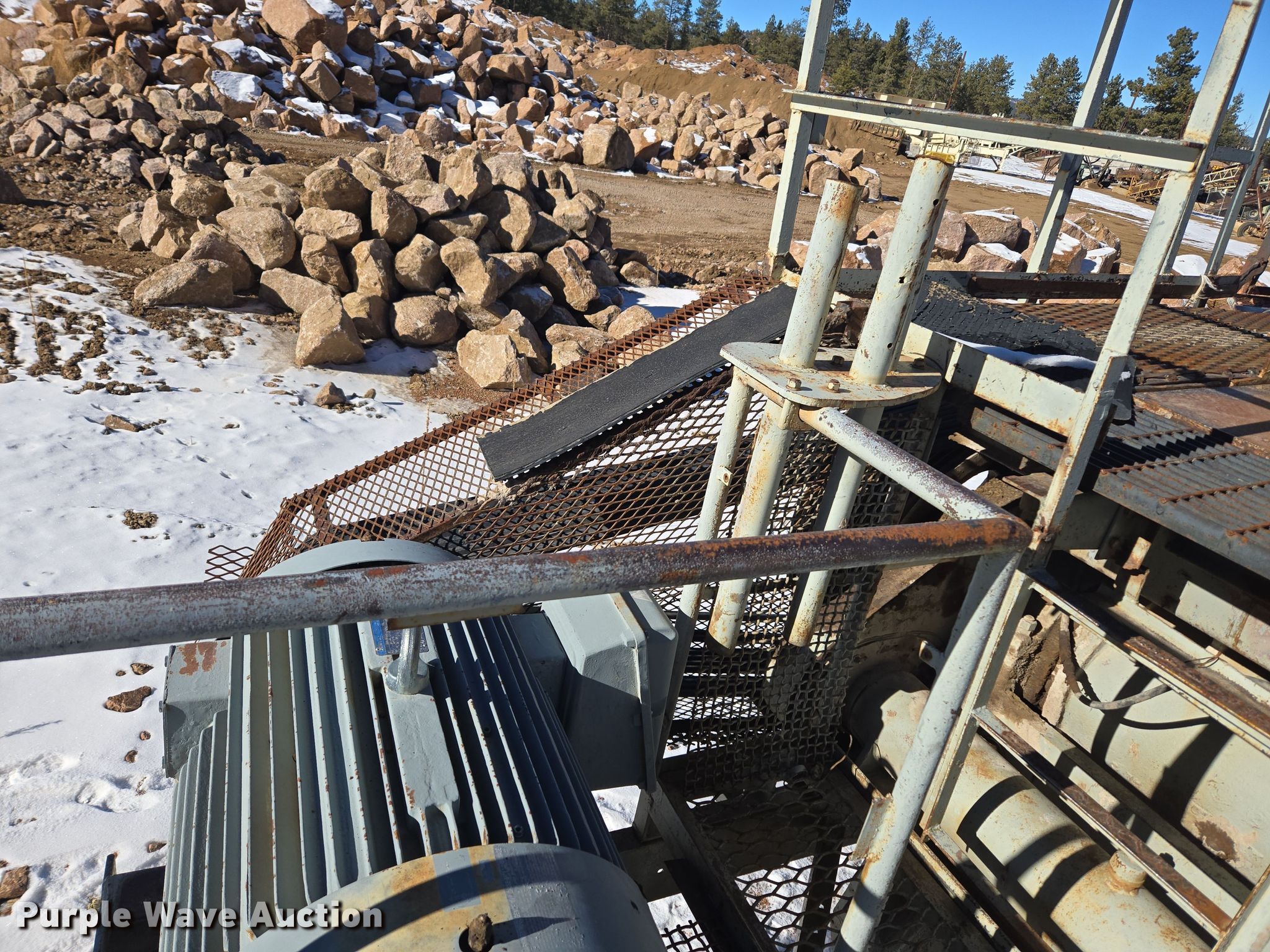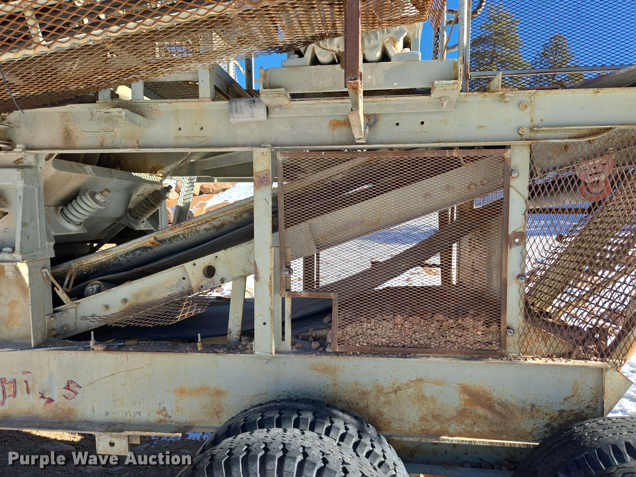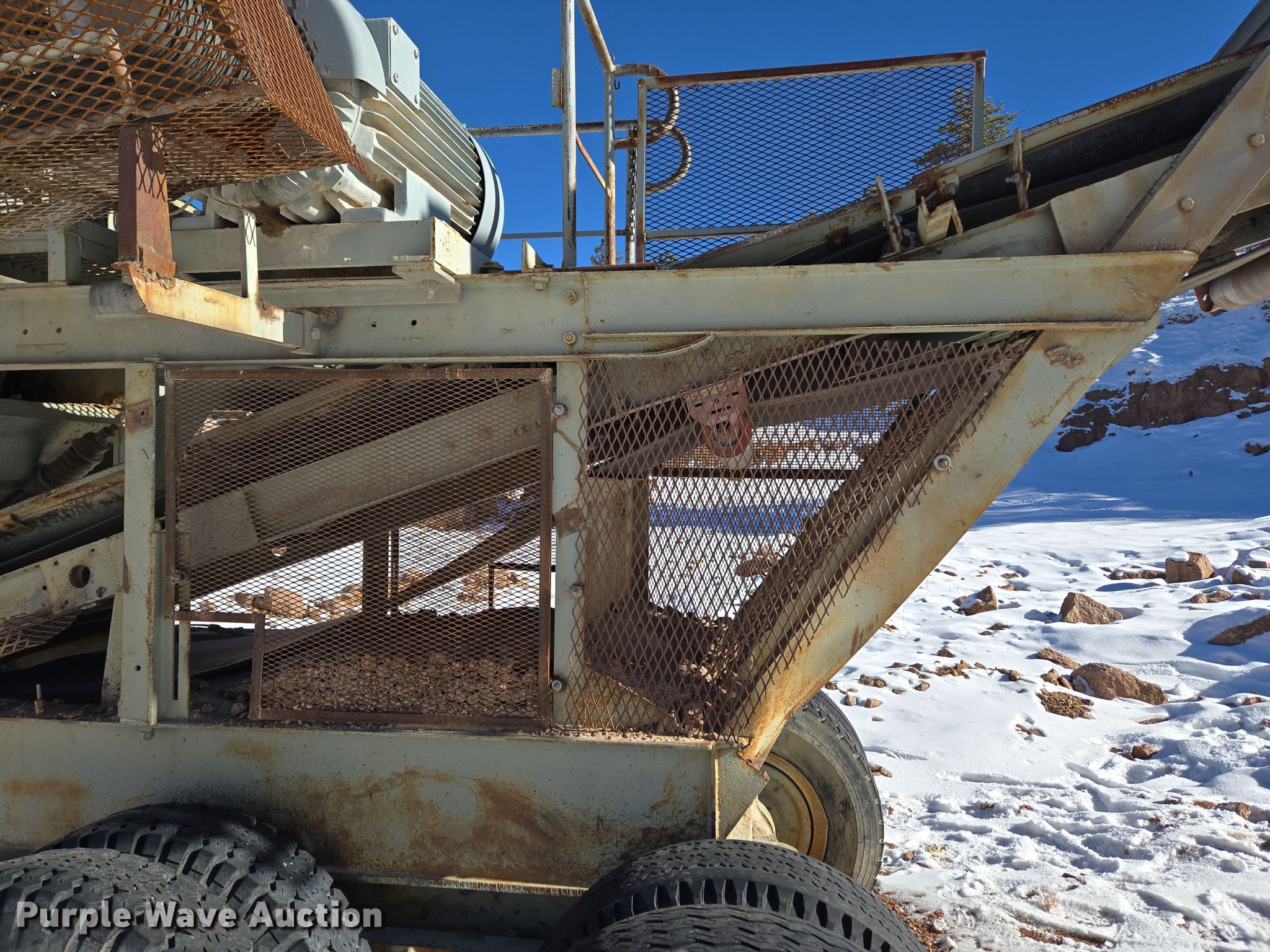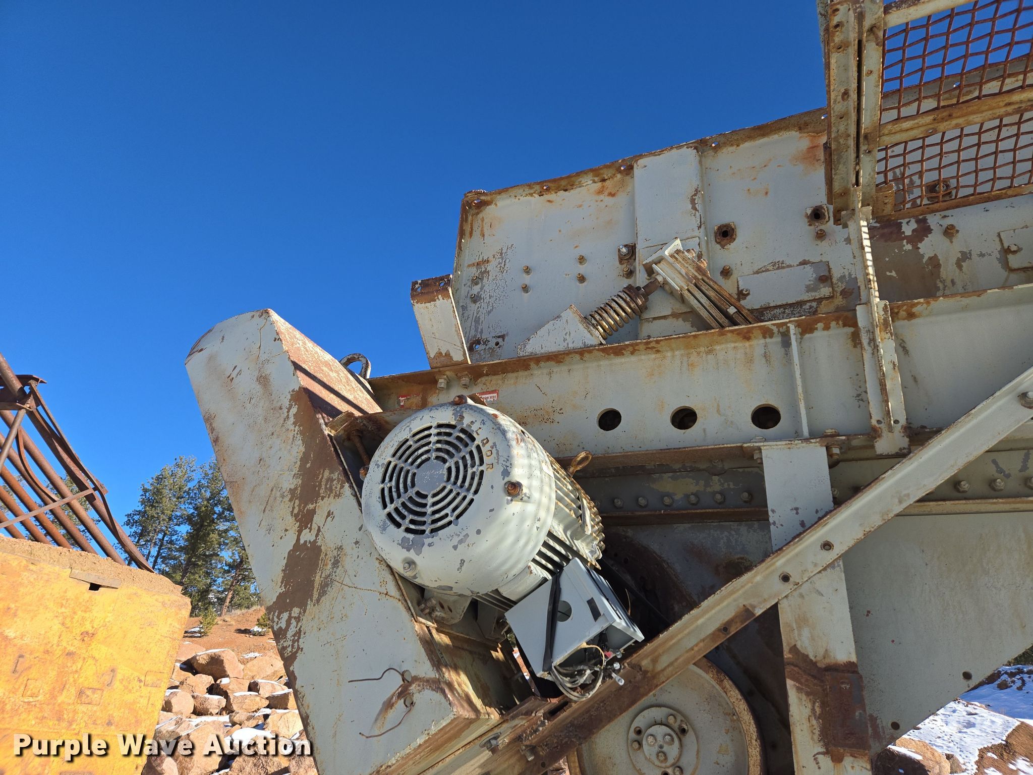 Cedarapids Twin Jaw crusher. Serial: 19071. Electric Motors Baldor M41T5T Serial: 12C051X270H1, Tatung WC1256HFI-T Serial: 43063879, HP: 125, Volts: 460. Chassis Axles: Tandem. Features Screen deck Length: 16' 1", Width: 71", Decks: Triple, Screen size Top: 1", Conveyors Input: 28' L x 10" W, Discharge: 3' L x 8" W. Tires Size: 9.00-20. Notes Wheel issue, cracked, Non-operational screen bearings. Van Egmond Stone Co. Florissant, CO 80816