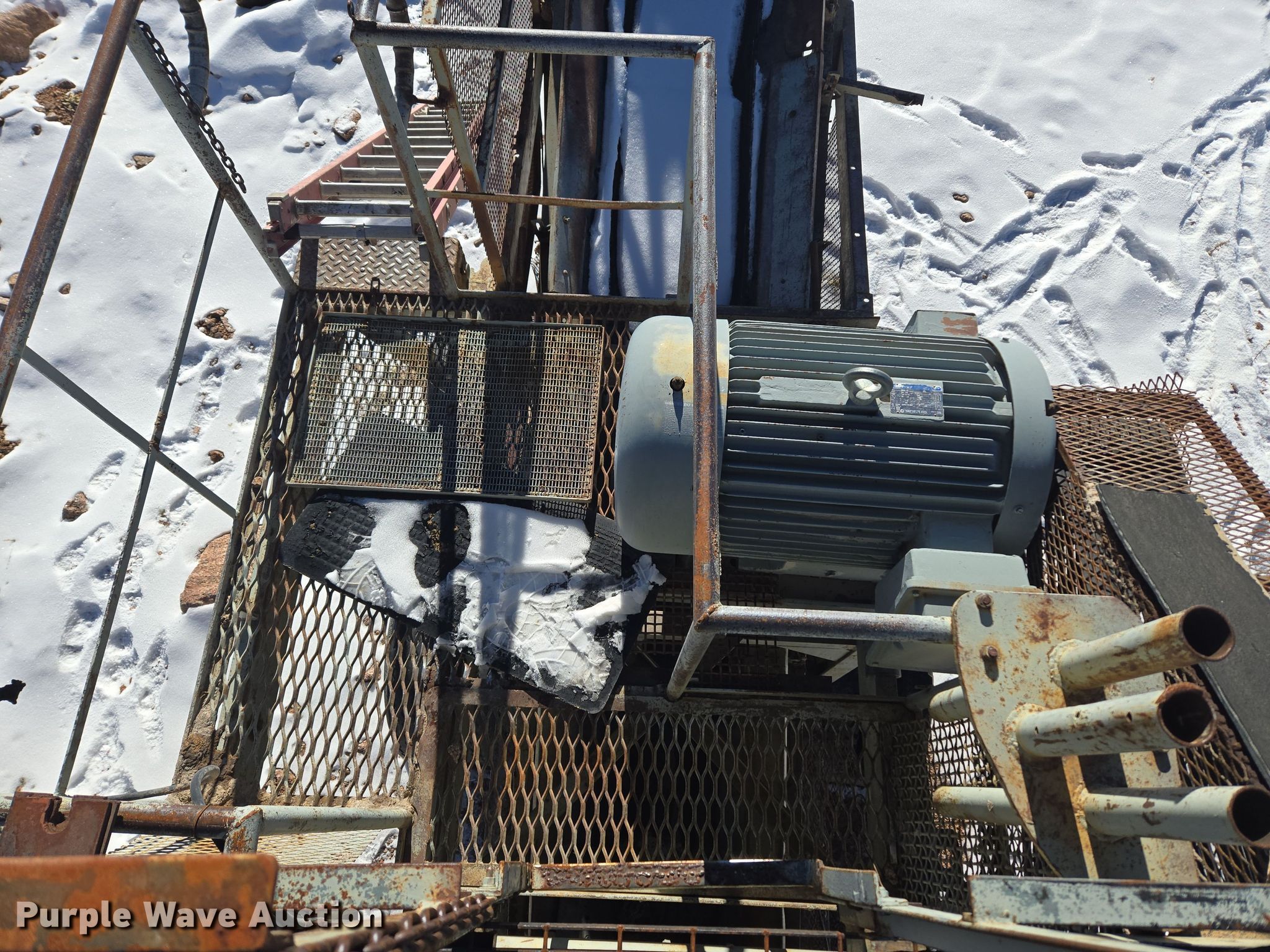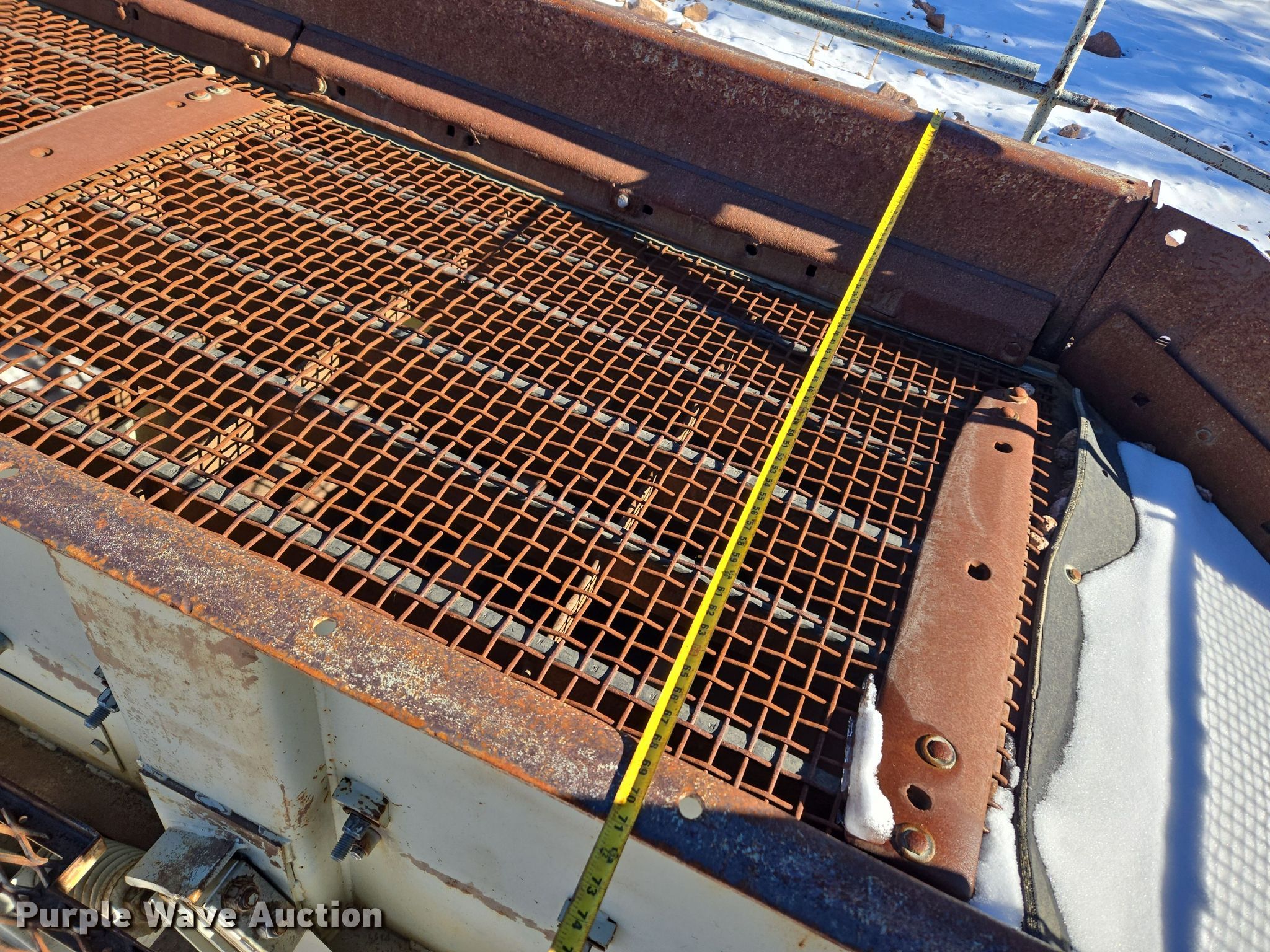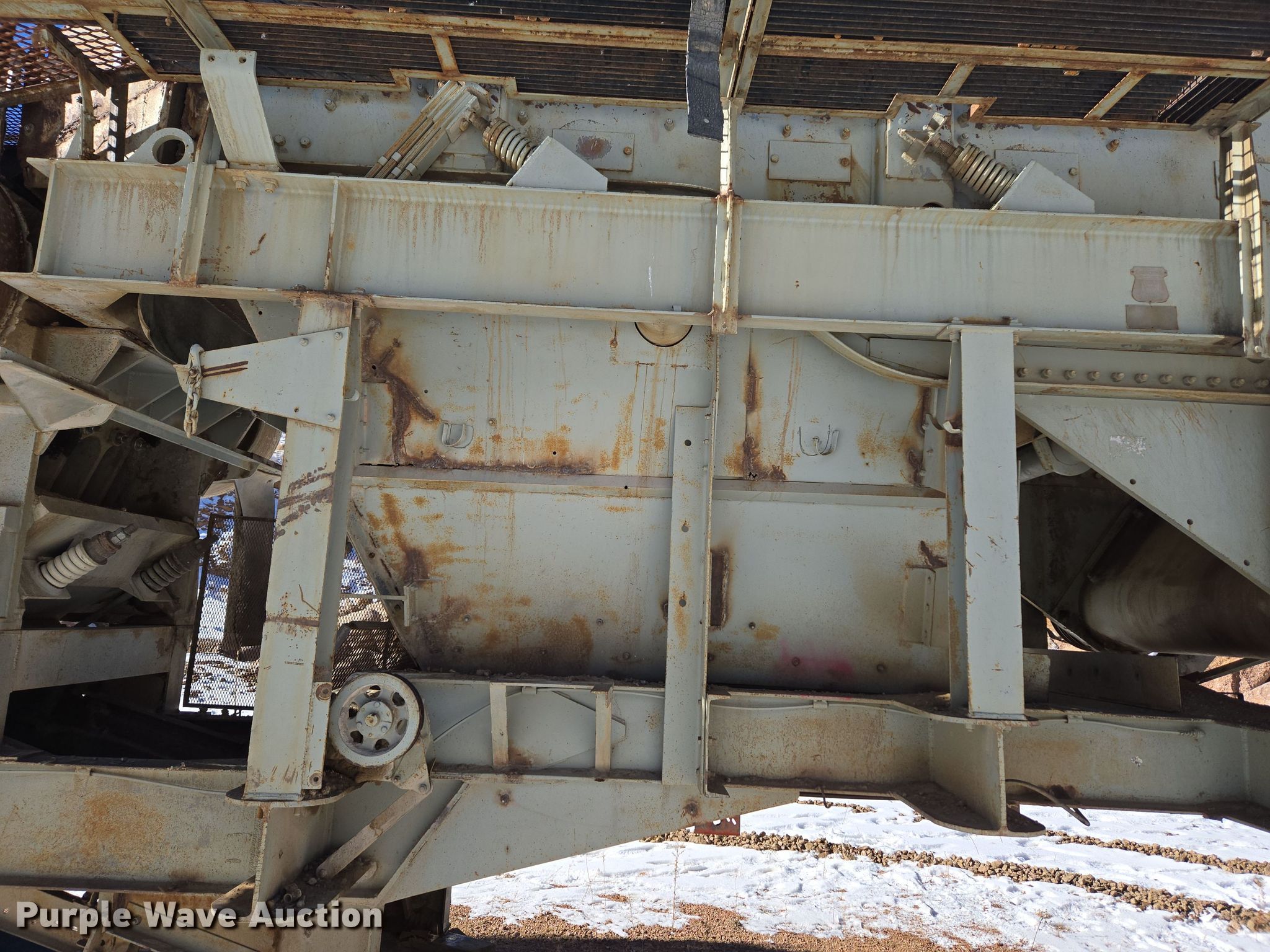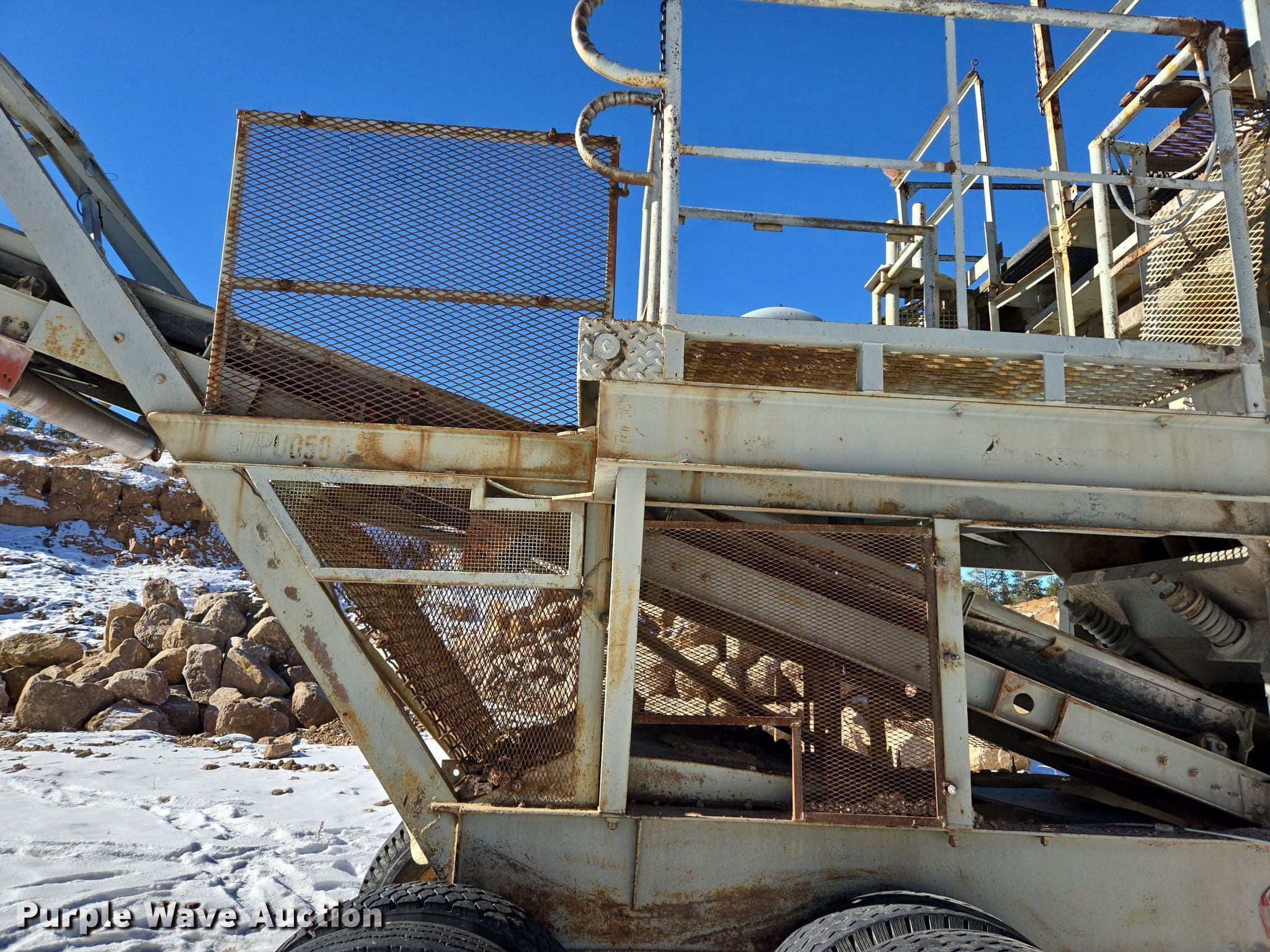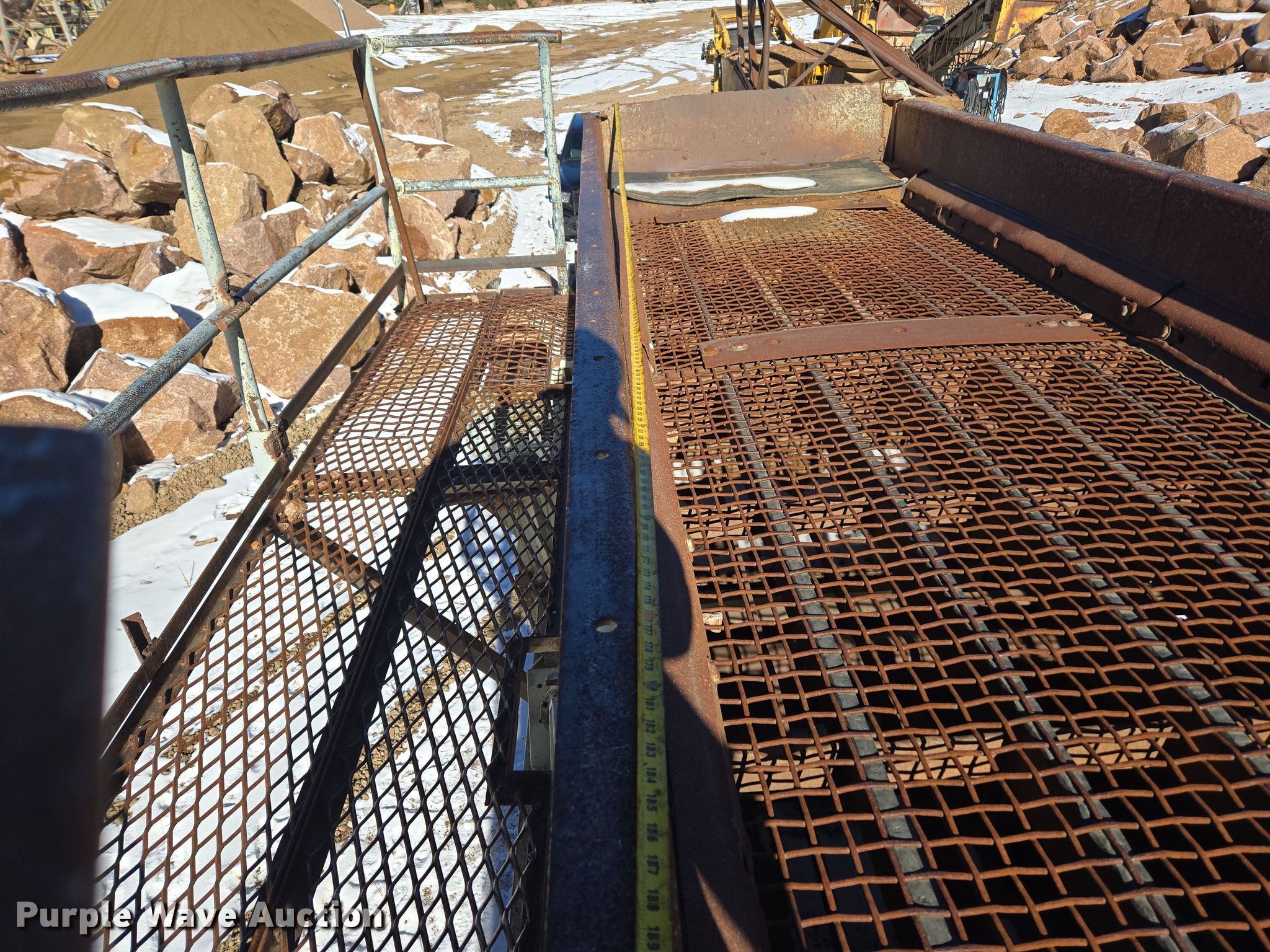 Cedarapids Twin Jaw crusher. Serial: 19071. Electric Motors Baldor M41T5T Serial: 12C051X270H1, Tatung WC1256HFI-T Serial: 43063879, HP: 125, Volts: 460. Chassis Axles: Tandem. Features Screen deck Length: 16' 1", Width: 71", Decks: Triple, Screen size Top: 1", Conveyors Input: 28' L x 10" W, Discharge: 3' L x 8" W. Tires Size: 9.00-20. Notes Wheel issue, cracked, Non-operational screen bearings. Van Egmond Stone Co. Florissant, CO 80816