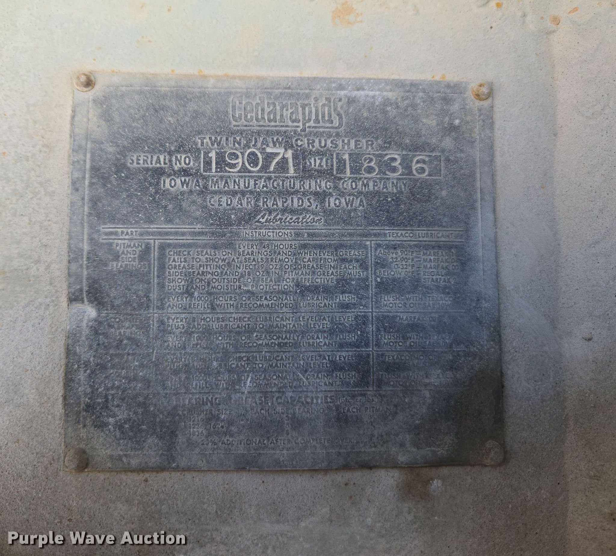 Purple Wave is selling a used Crusher or Crushing Plant in Colorado. This item is a Cedarapids Twin Jaw crusher with the following: Serial: 19071