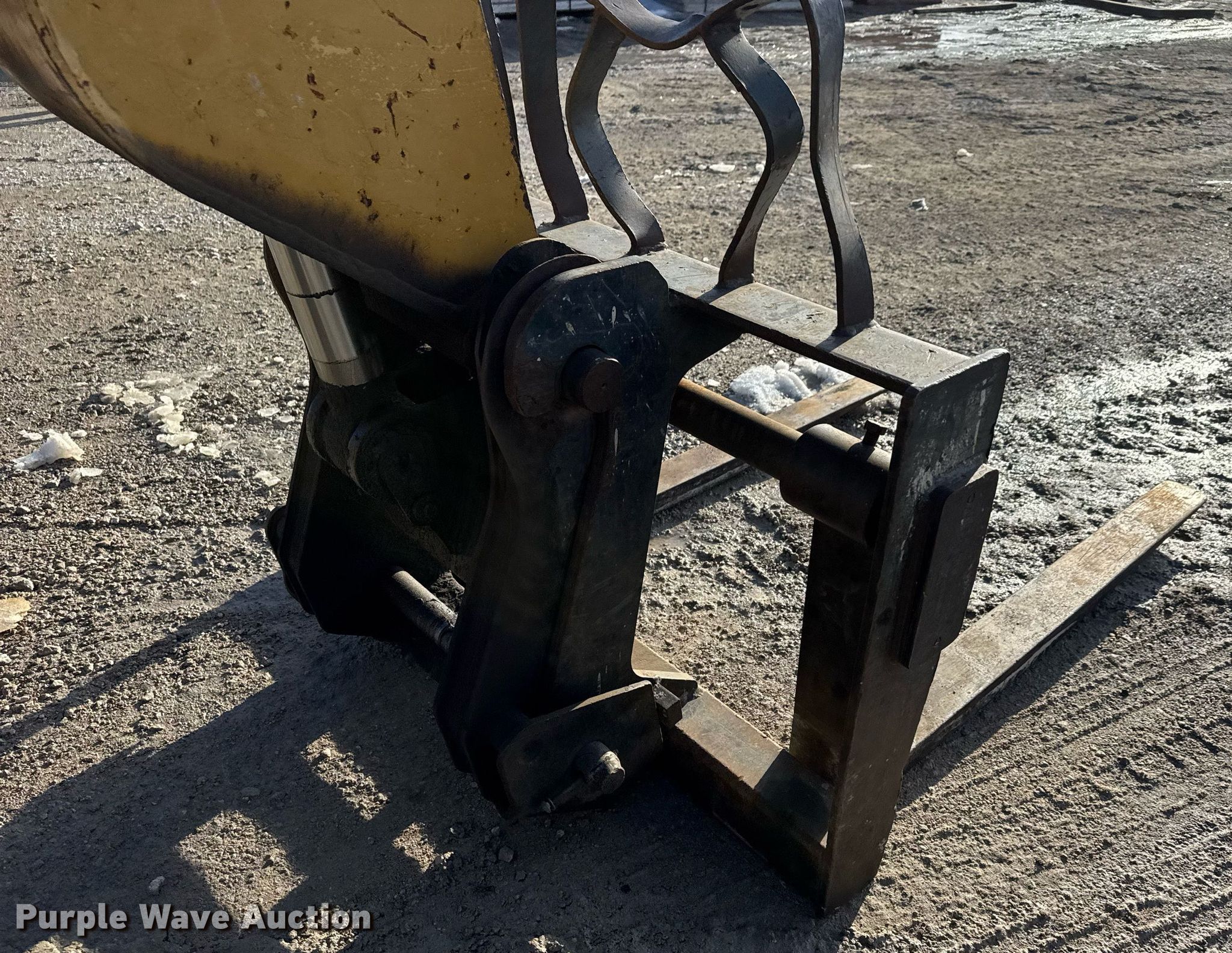 2004 Caterpillar TH360B telehandler. Hours: 11,474 on meter, Serial: CATTH360ESLE01058. Engine Caterpillar 3054, Serial: 7BJ31071, Displacement: 3.83L, Cylinders: 4, Fuel type: Diesel. Transmission Powershift, 4F - 4R, Four wheel drive. Operators station OROPS, Canopy, Steering: Crab, Four wheel. Features Maximum lift capacity: 7,700 lbs, Maximum lift height: 44.3', Boom stages: 3, Fork length: 46", Hydraulic leveling, Quick attach: Manual, Bucket size: 94". Tires Size: 13.00-24. Bridges Inc.. Newton, KS 67114