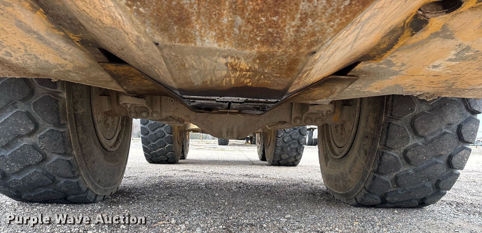 2005 Volvo A25D articulated haul truck. Miles: Unknown, Hours: Unknown, Serial: A25DV15114, Unit #: 7054. Engine Volvo D9BAAE3, Displacement: 9.4L, Cylinders: 6, Fuel type: Diesel. Transmission Automatic. Chassis Six wheel drive. Interior AC, Heat, Retarder. Features Dump bed Volvo A25D, Capacity: 25 cu.yd.. Tires Size: 23.5R25, Brand: Camos. Notes Dash warning indicator: Red stop light, Odometer illegible, Hour meter illegible, Engine oil leak. Valfair Construction. Forney, TX 75182