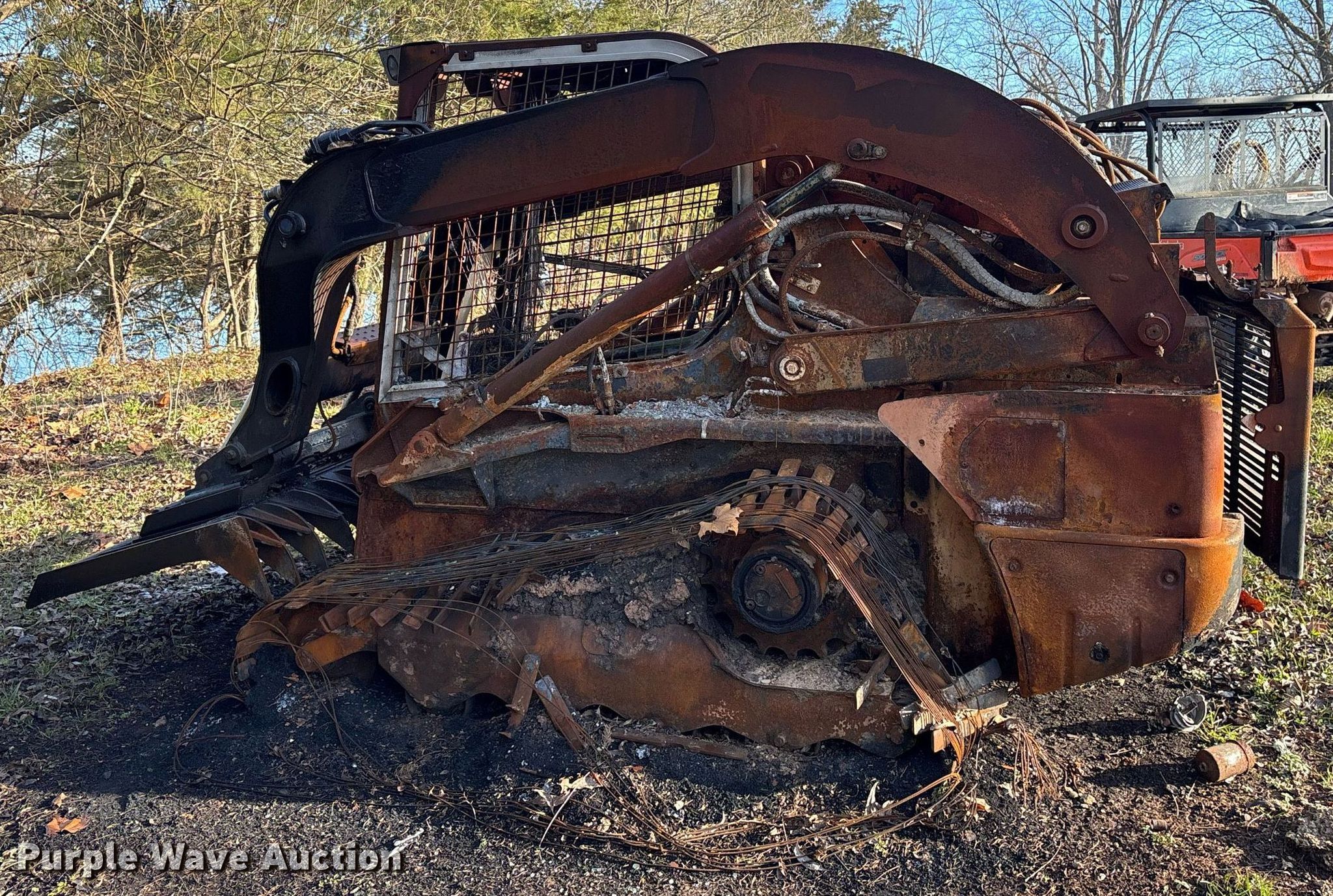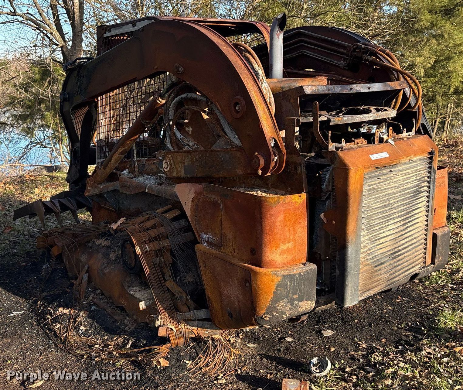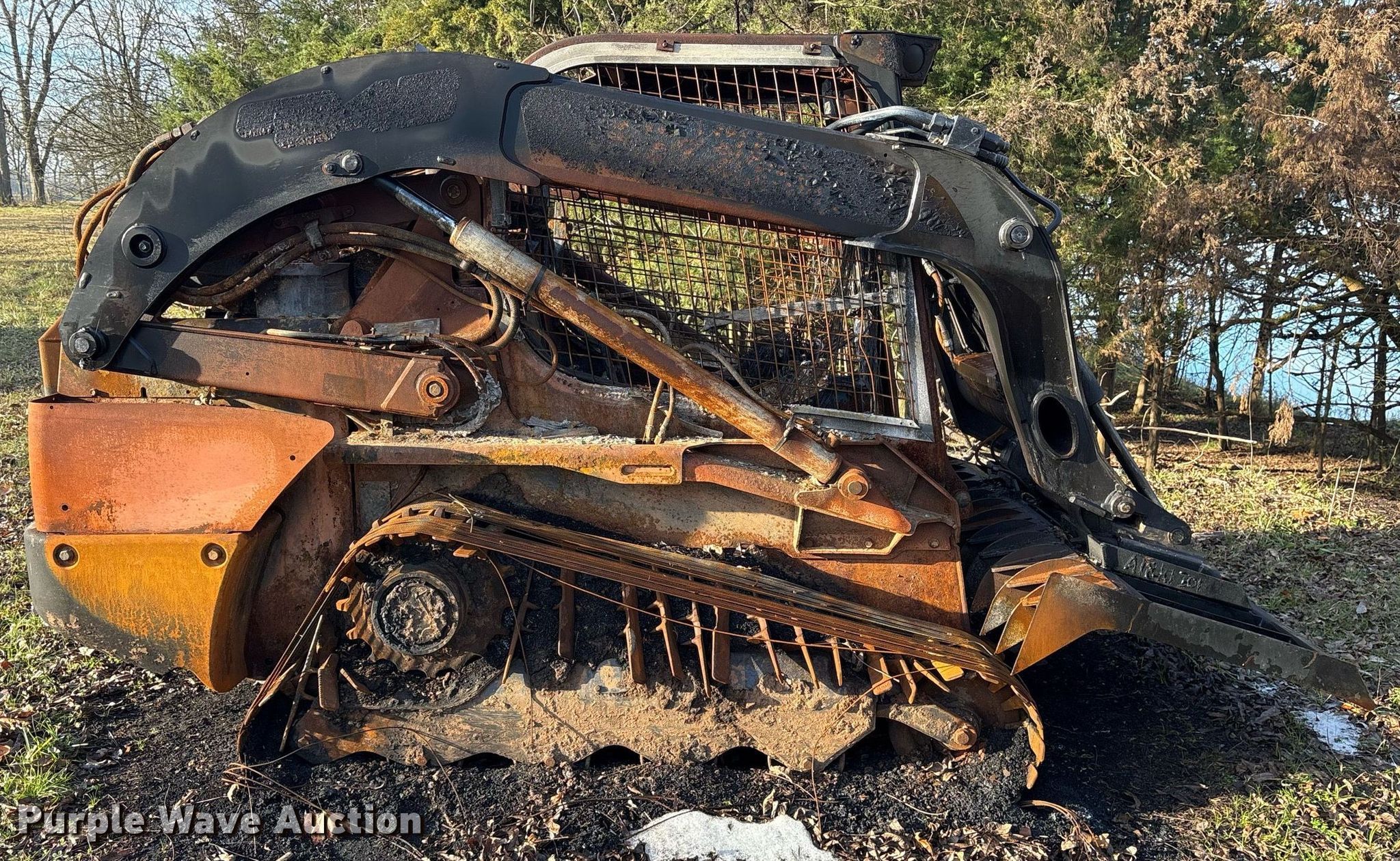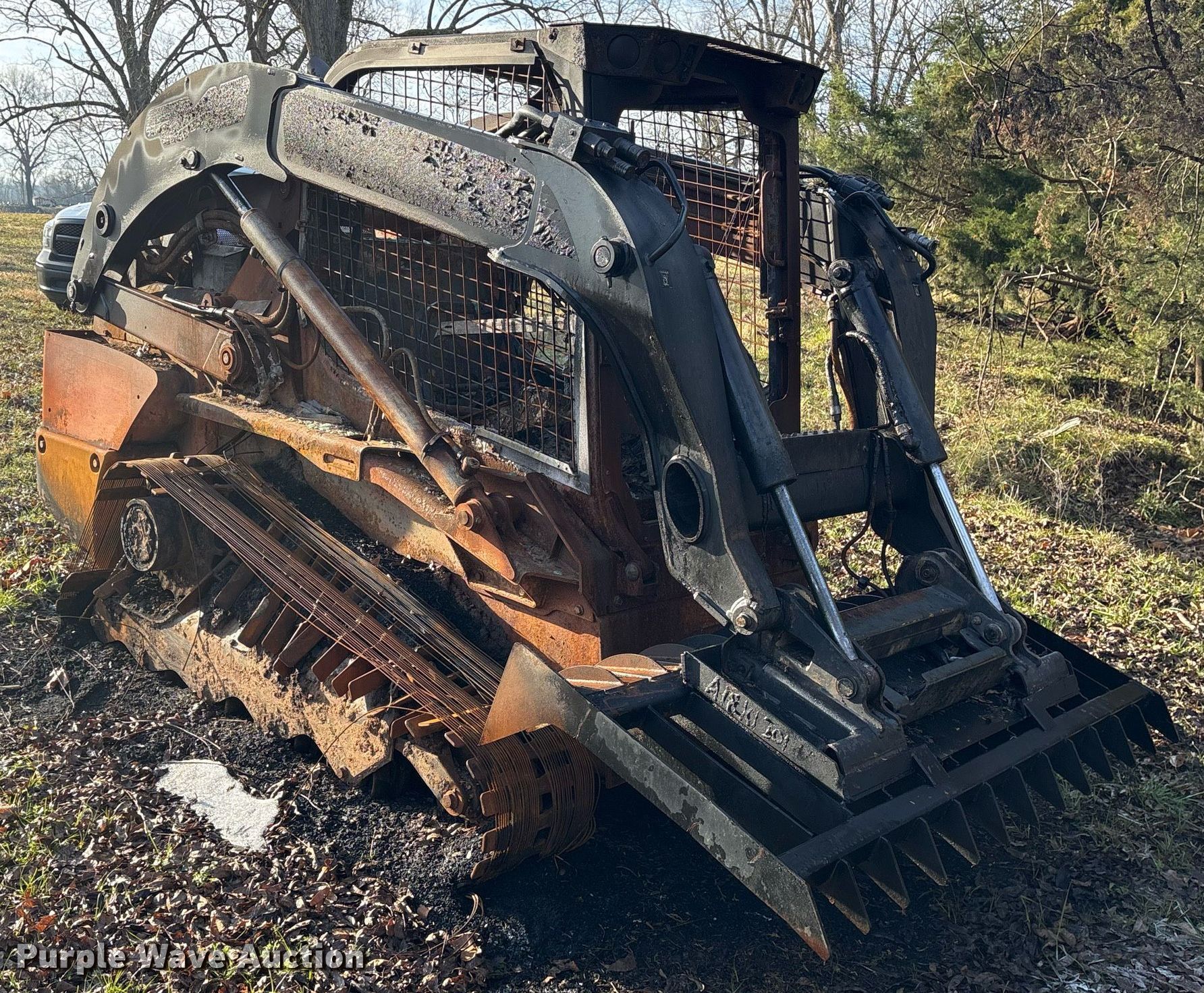 2023 New Holland C345 NR tracked skid steer loader. Hours: Unknown, Serial: NPM425800, Insurance salvage unit claim #: 4-815699. Engine Cylinders: 4, Fuel type: Diesel. Operators station Enclosed cab. Features Bucket New Holland, Width: 78", Low profile, Cutting edge: Bolt-on. Notes Rock blade not included, Fire damage, Door missing, Glass cracked, Dead battery, Non-operational unit. Oklahoma Farm Bureau. Haworth, OK 74740