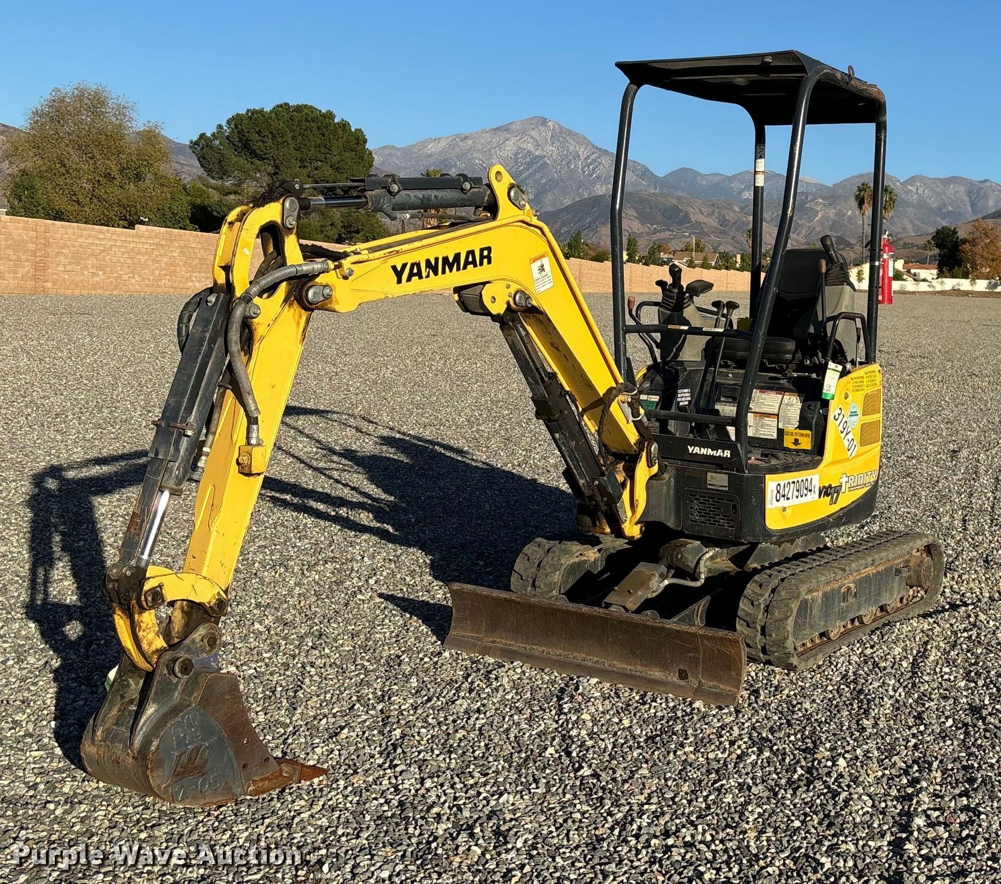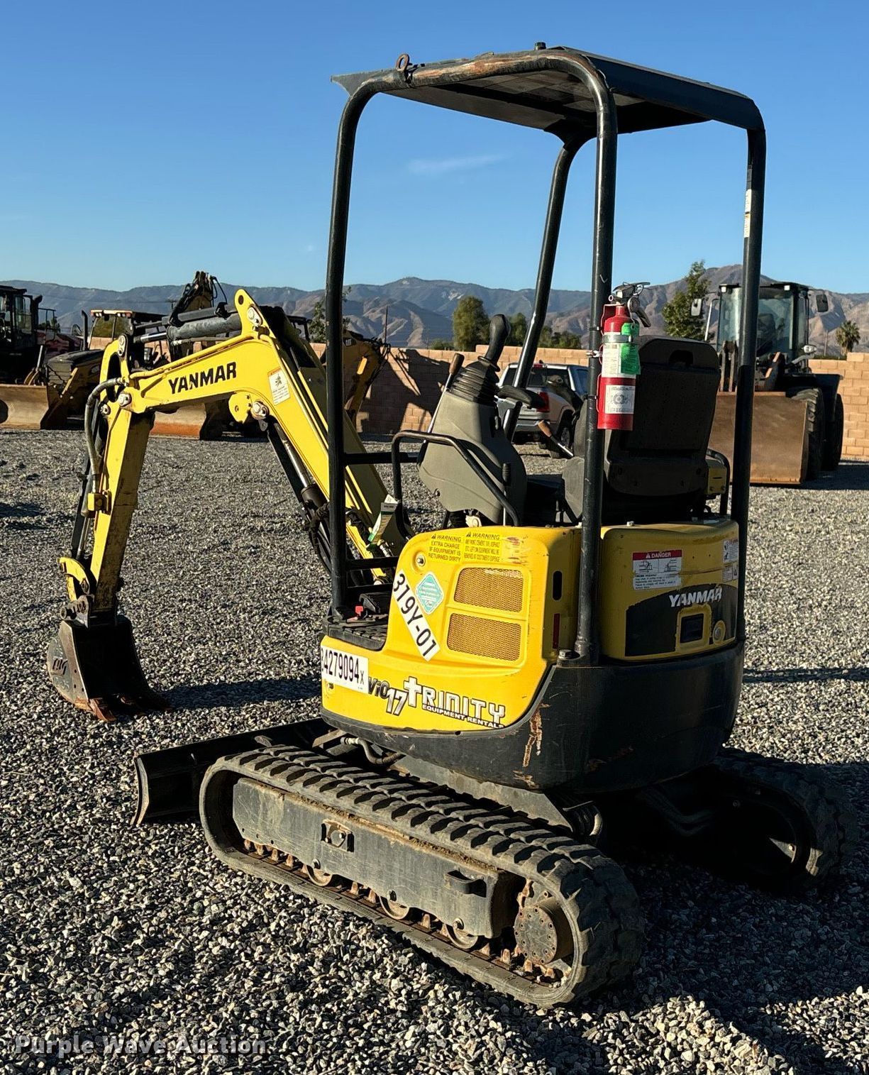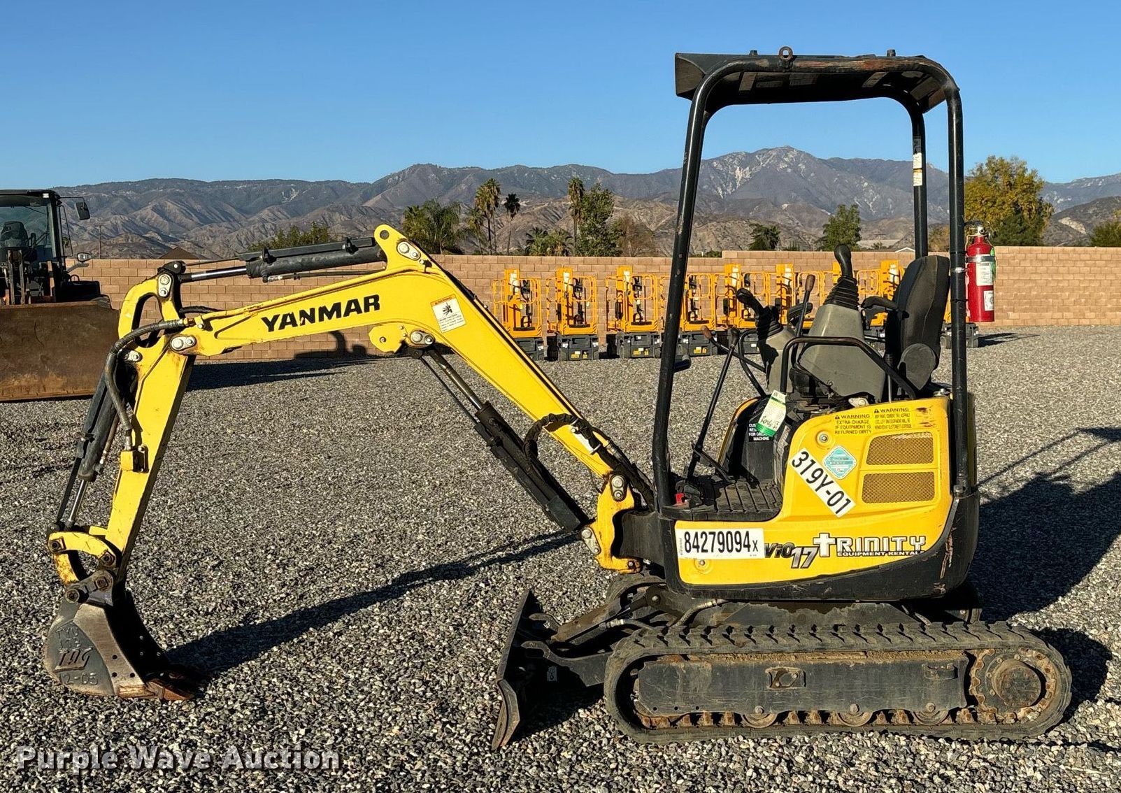 Purple Wave is selling a used Mini Excavator in California. This item is a 2018 Yanmar VIO17-A mini excavator with the following: Hours: 1,201 on meter, Serial: YMRVIO17PJYJAF352, Lot #: 84279094