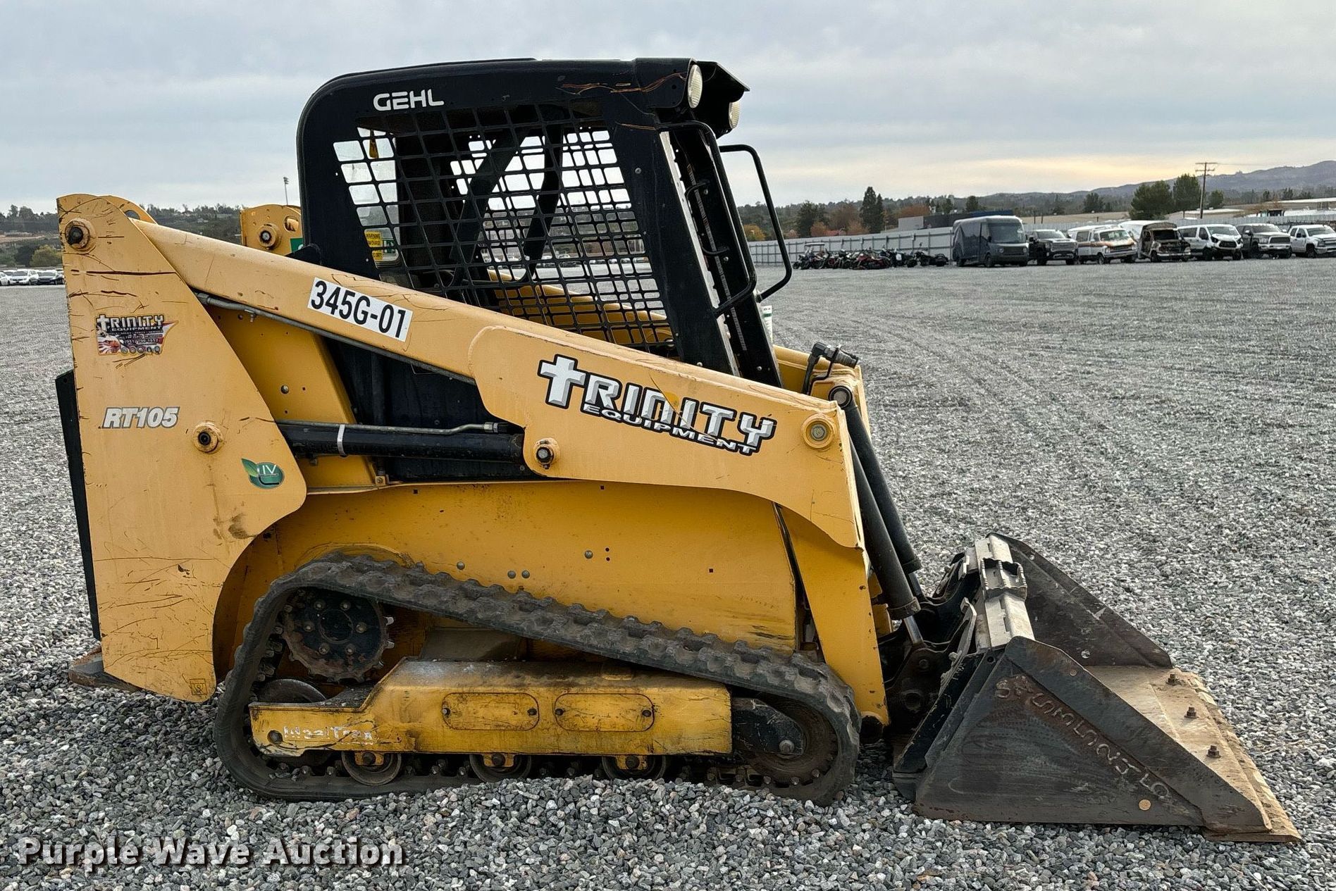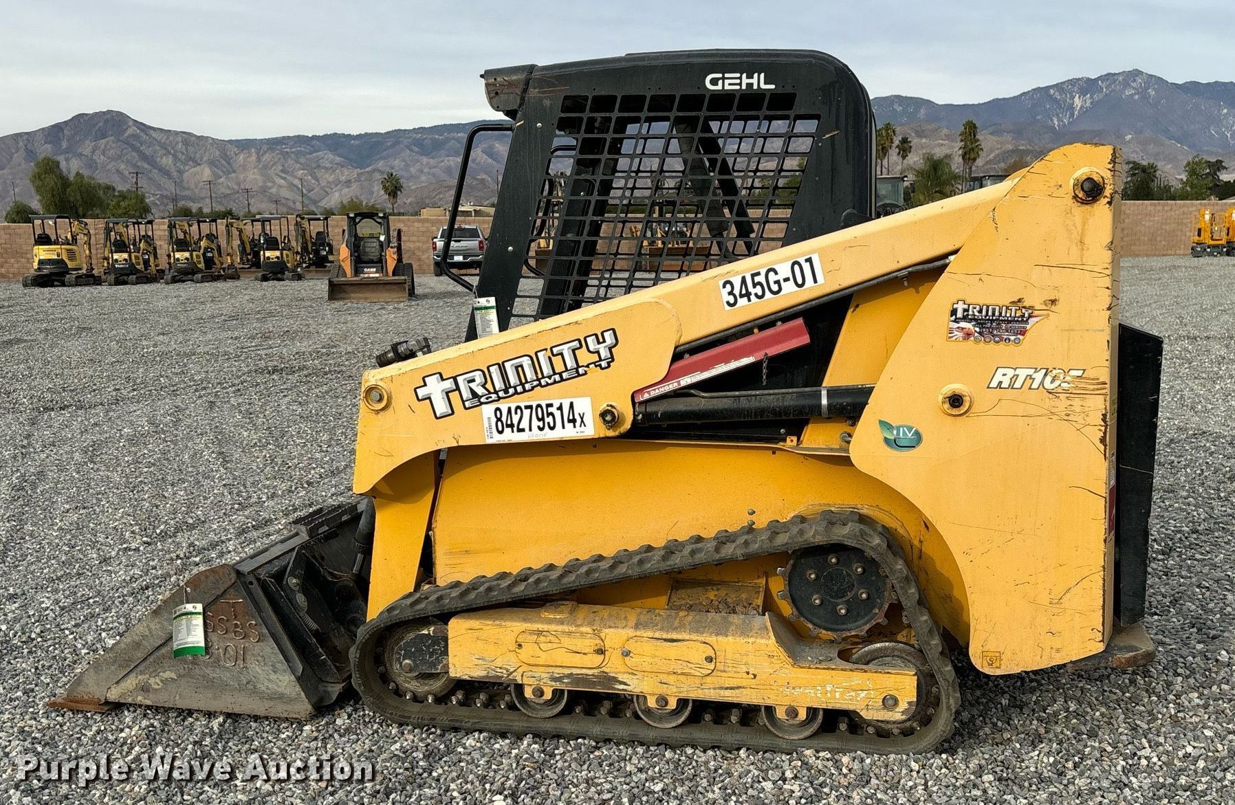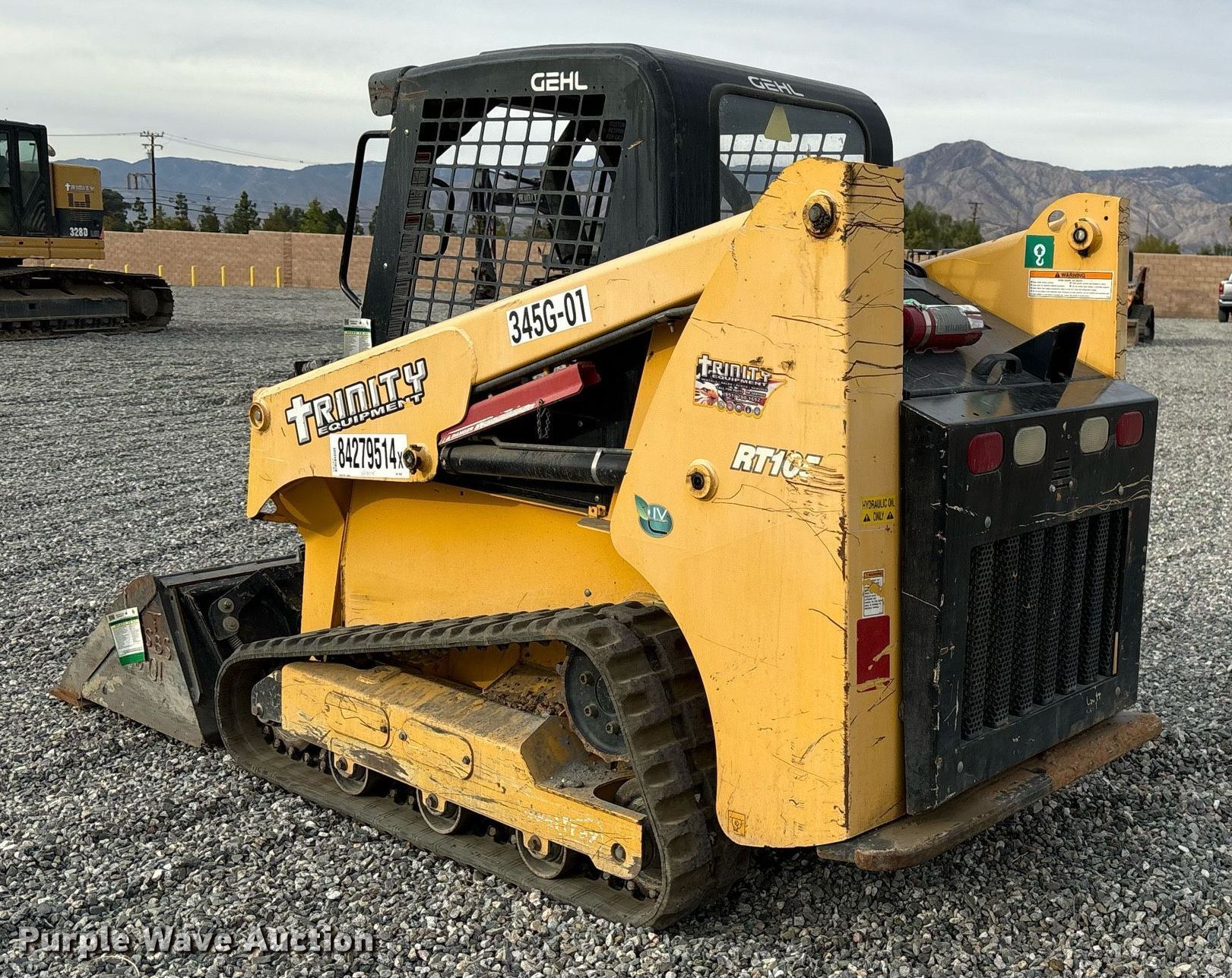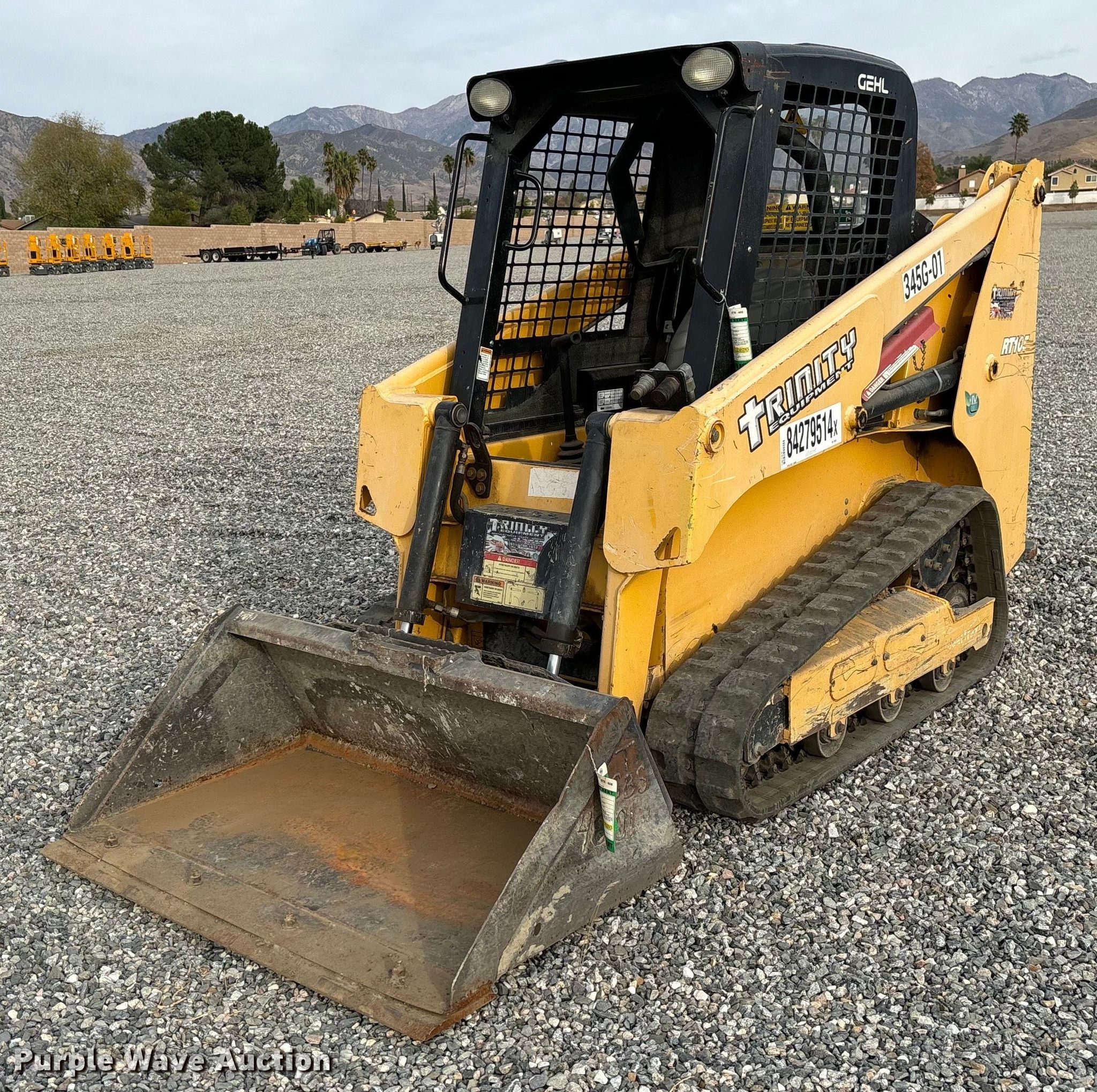 Purple Wave is selling a used Tracked Skid Steer Loader in California. This item is a 2019 Gehl RT105 tracked skid steer loader with the following: Hours: 1,014 on meter, Serial: GHLRT105D0D701023, Unit #: 345G-01, Lot #: 84279514