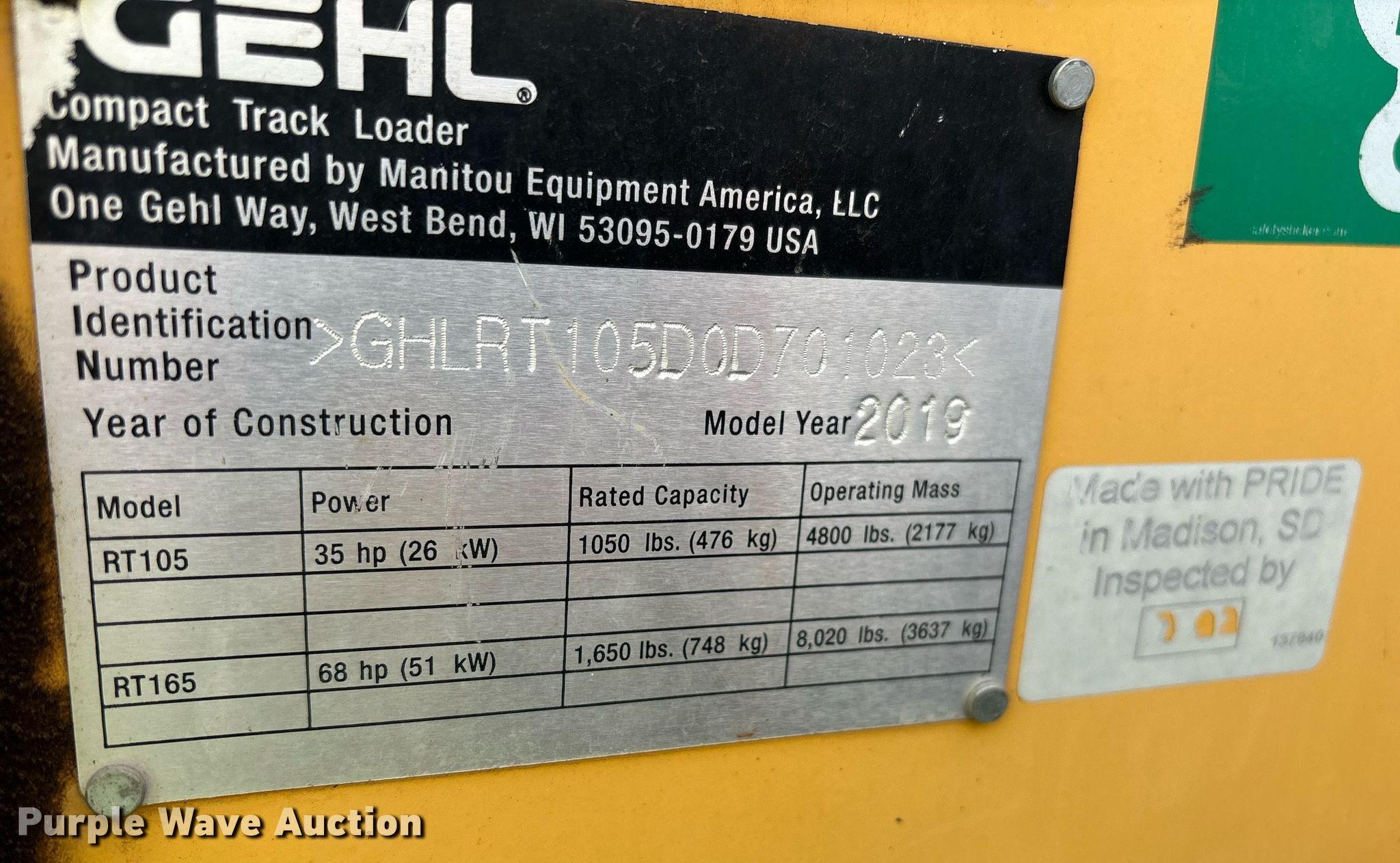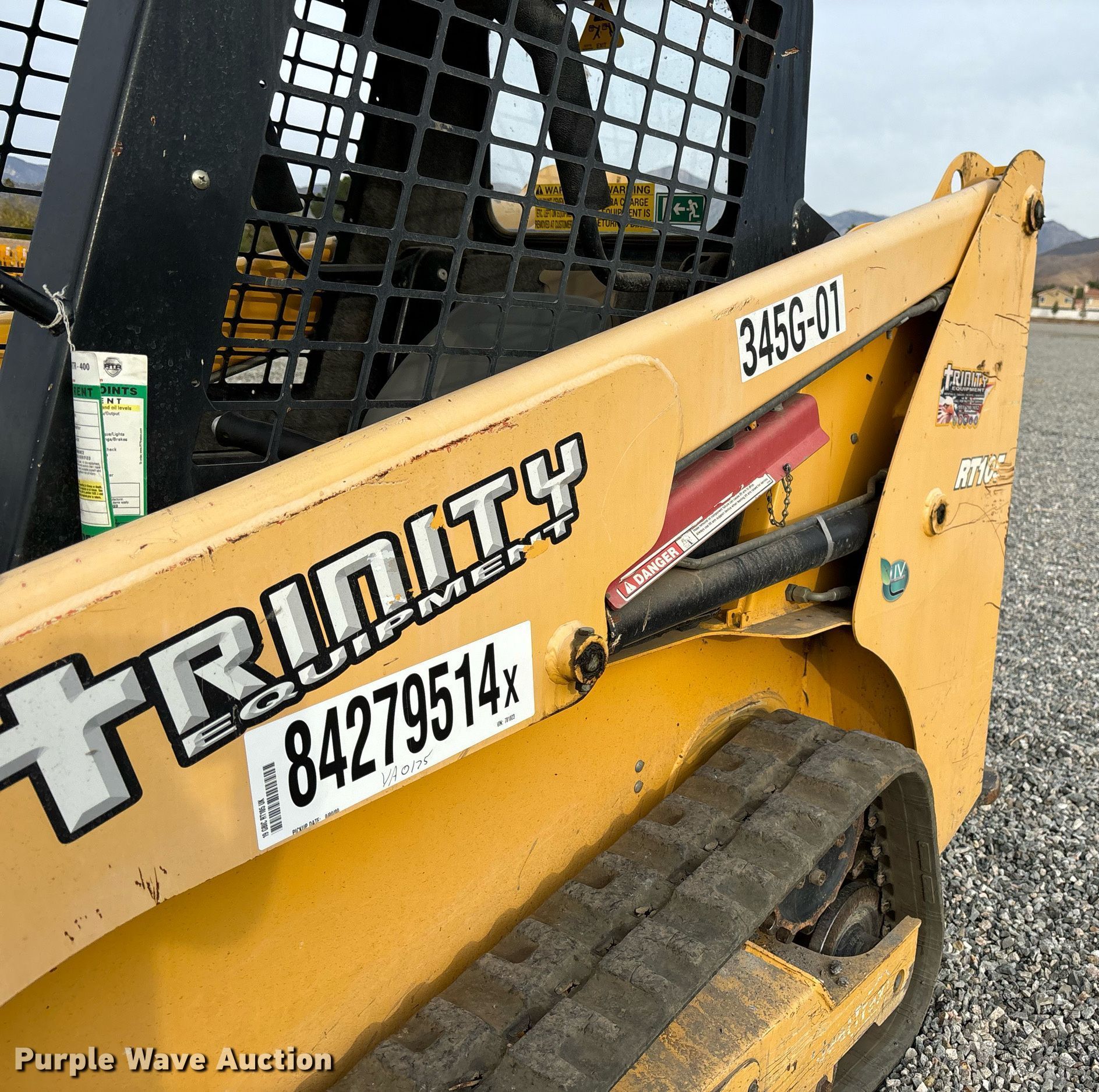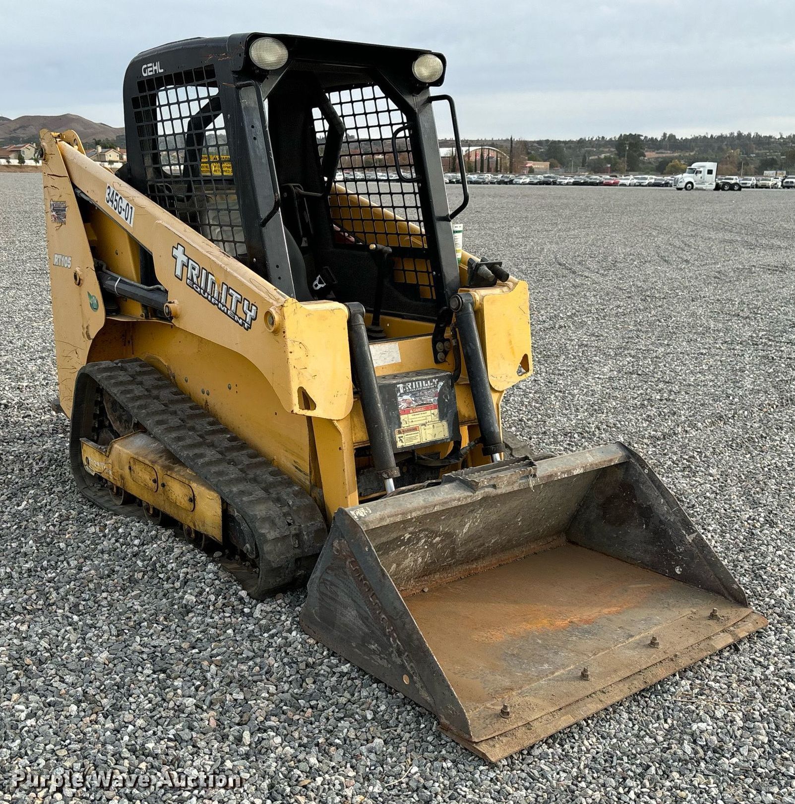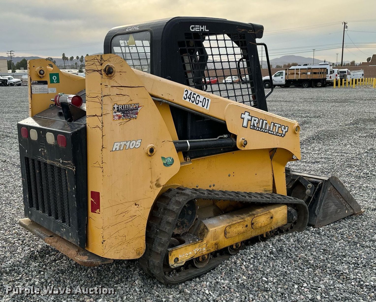 Purple Wave is selling a used Tracked Skid Steer Loader in California. This item is a 2019 Gehl RT105 tracked skid steer loader with the following: Hours: 1,014 on meter, Serial: GHLRT105D0D701023, Unit #: 345G-01, Lot #: 84279514