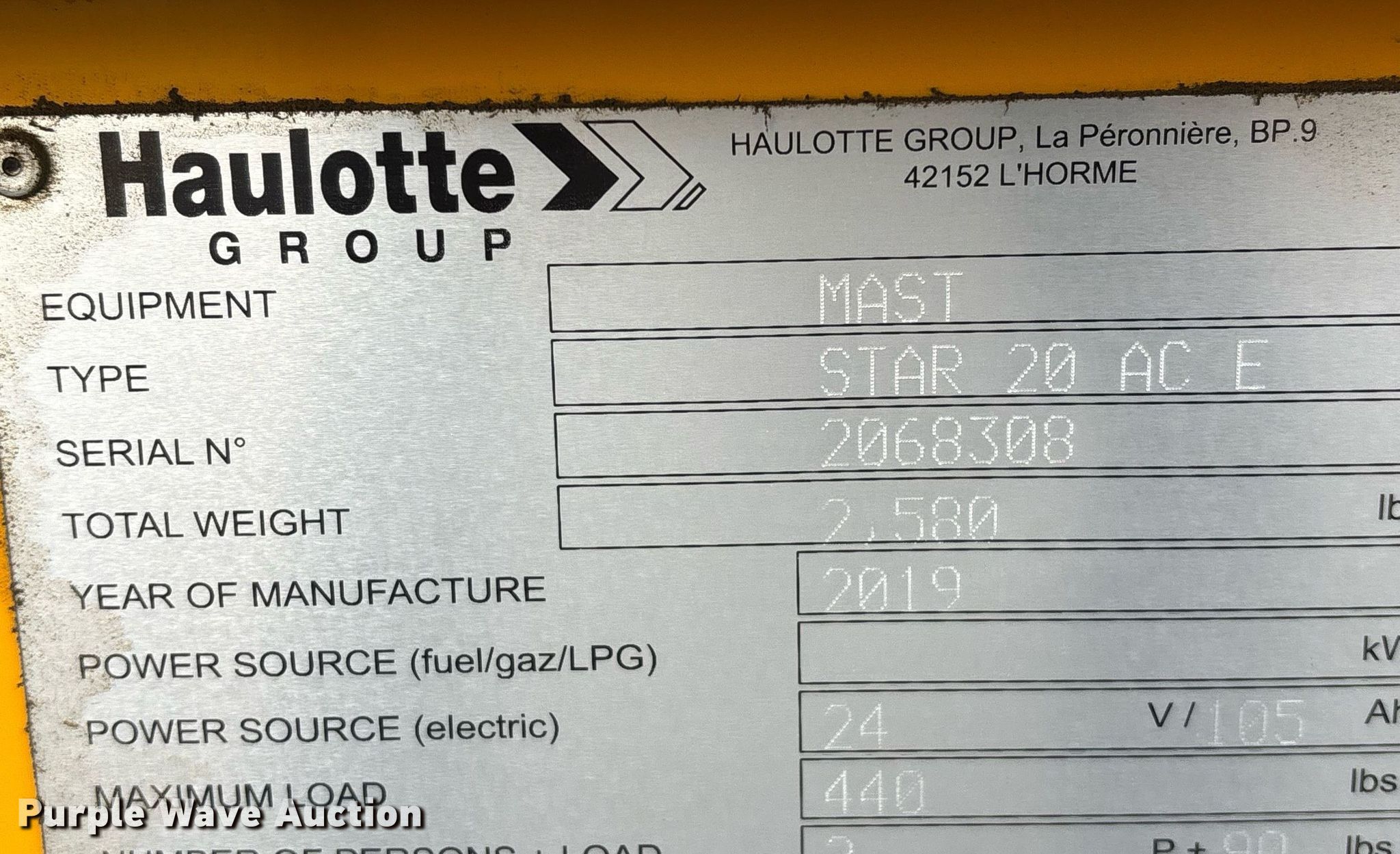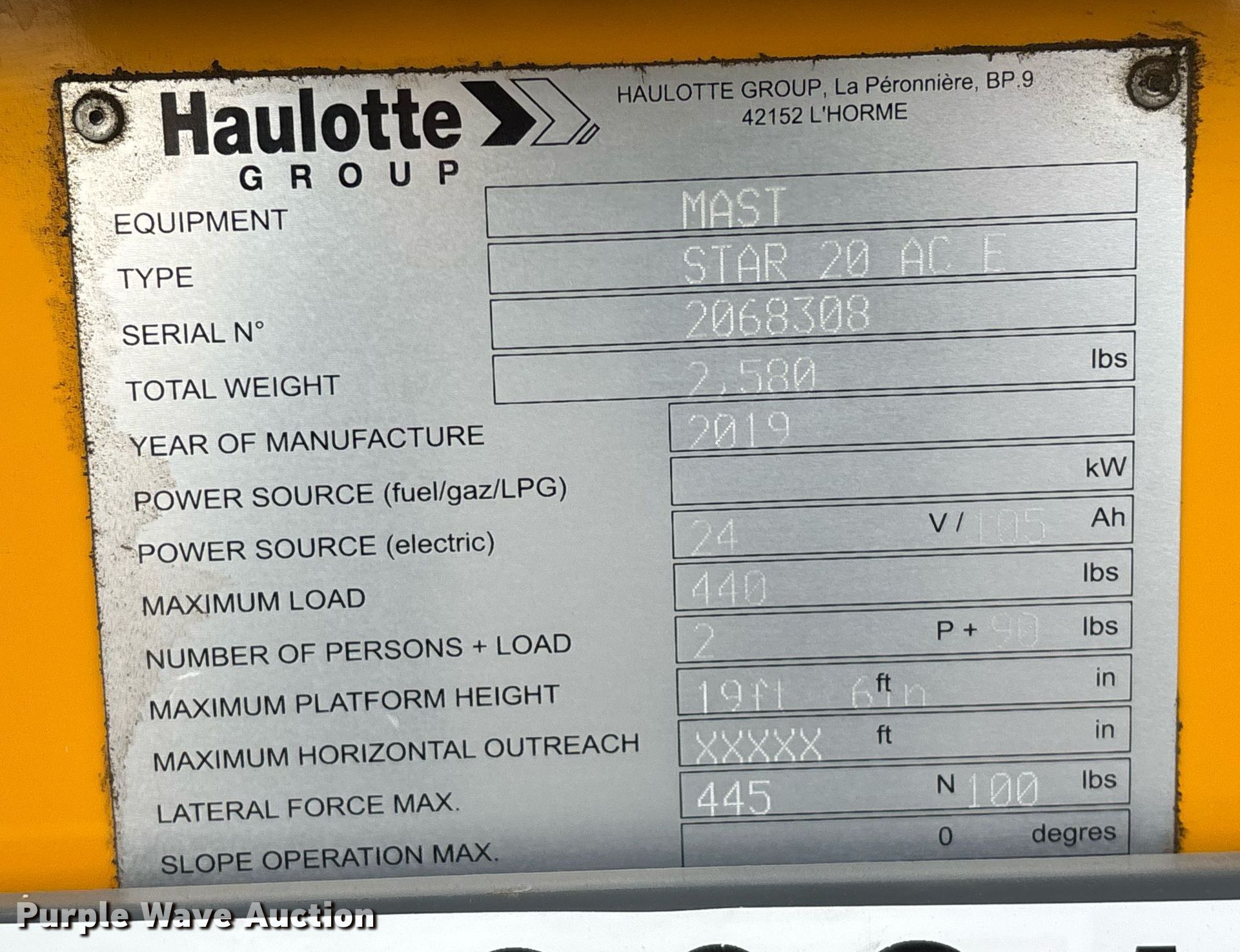 2019 Haulotte Star 20 AC E vertical lift | SOLD! February 13 Construction Equipment Auction