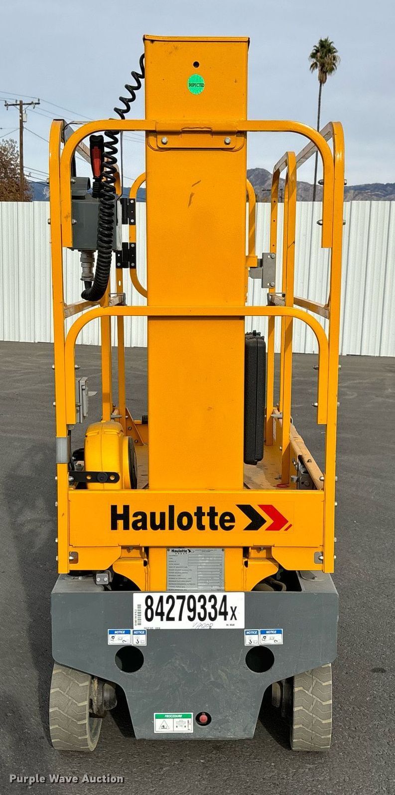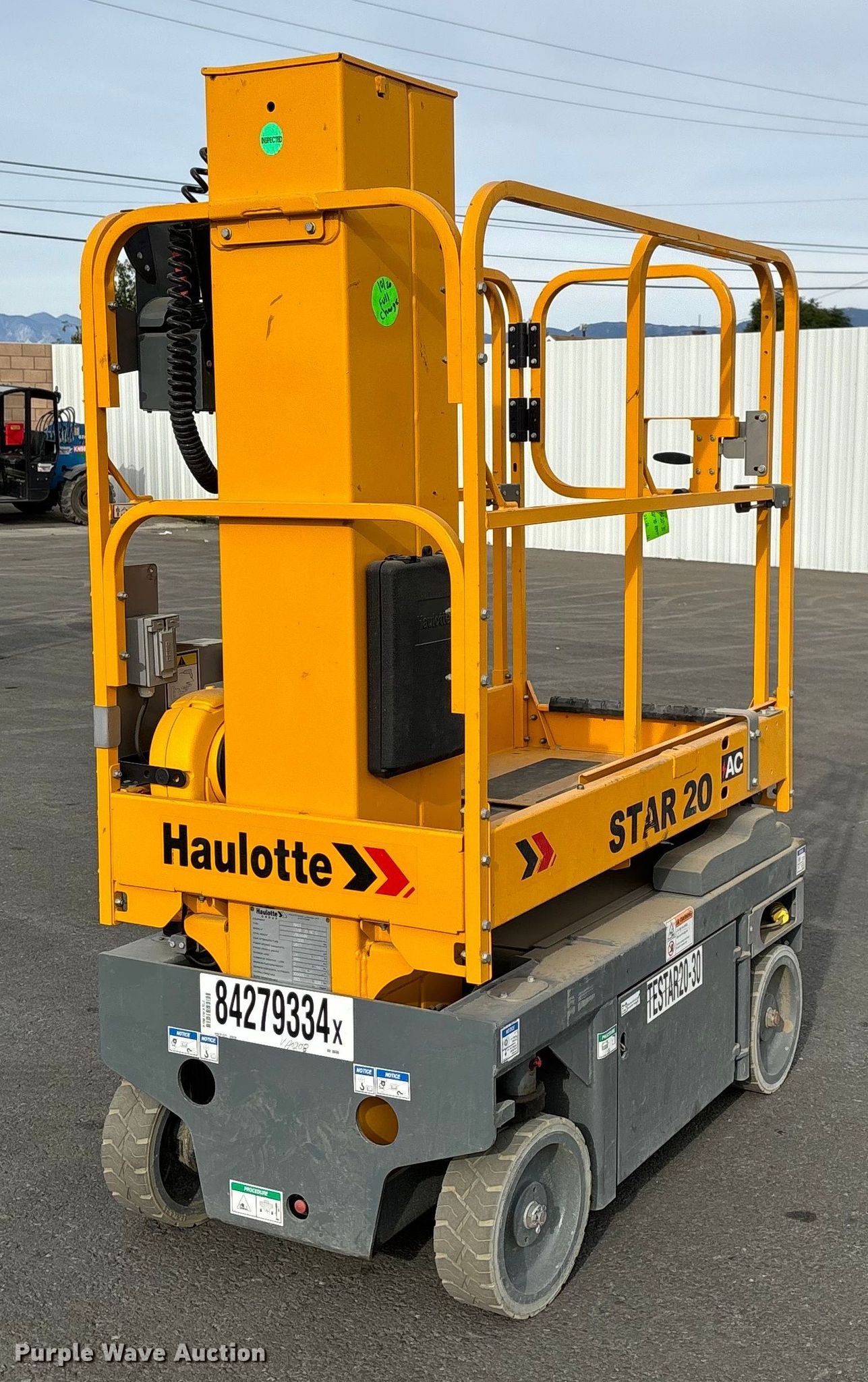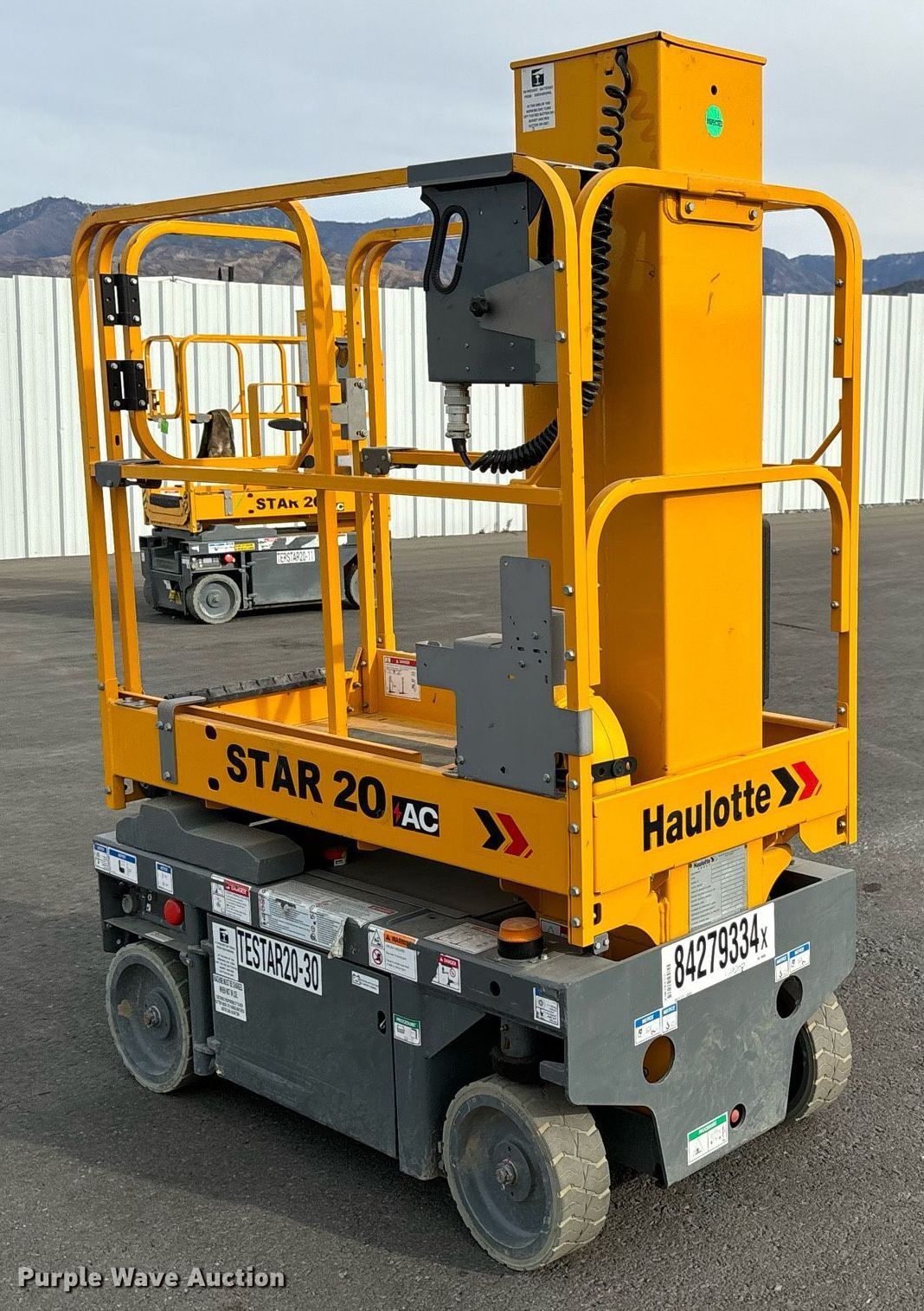 Purple Wave is selling a used Scissor or Vertical Lift in California. This item is a 2019 Haulotte Star 20 AC E vertical lift with the following: Hours: 18 on meter, Serial: 2066600, Lot #: 84279334