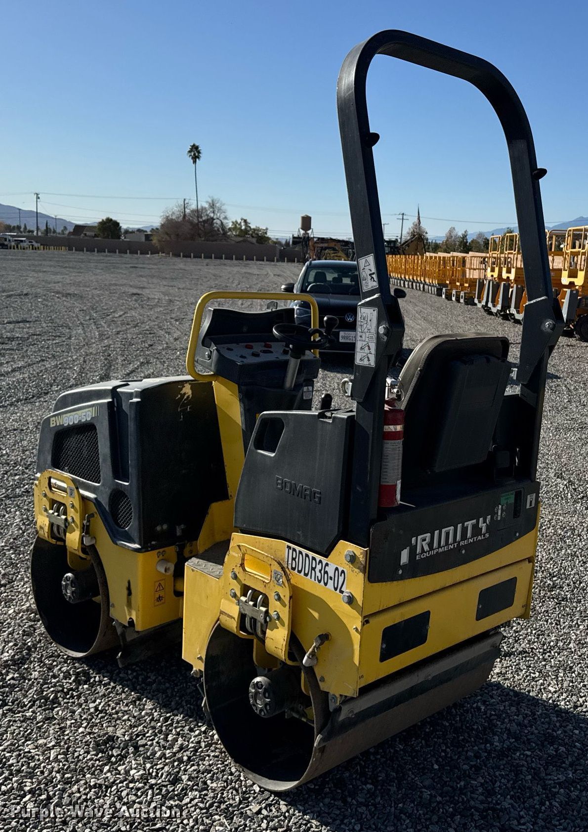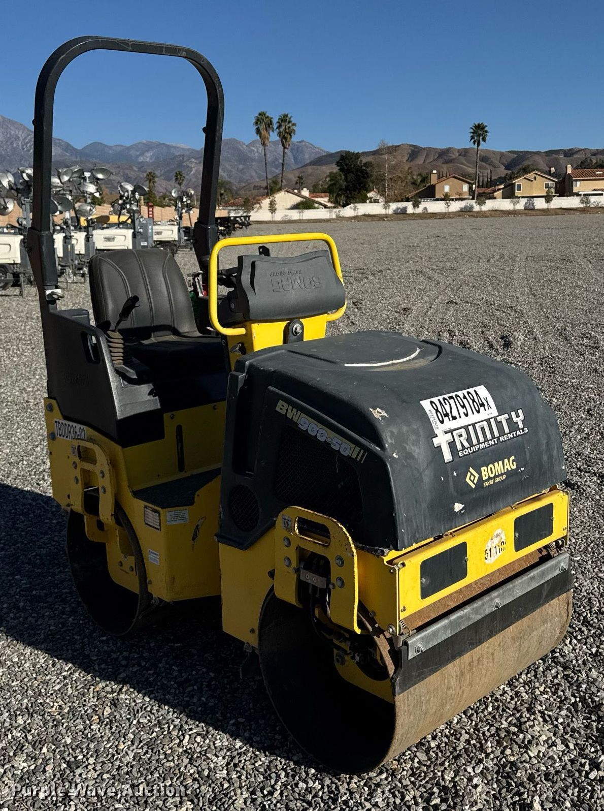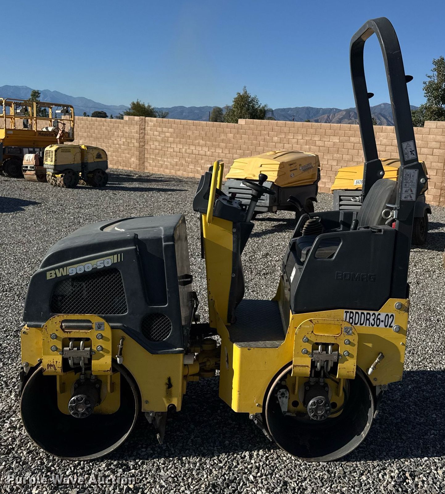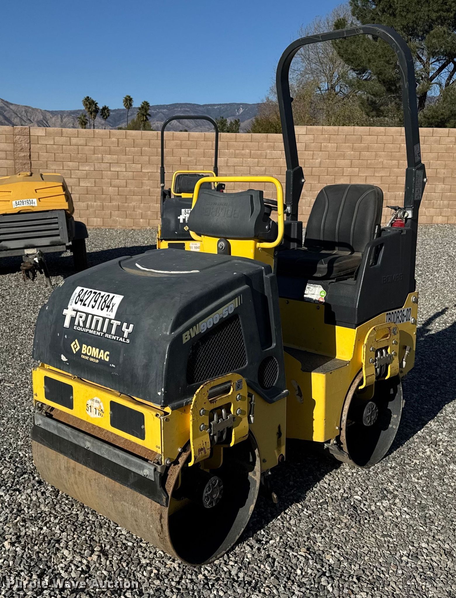 Purple Wave is selling a used Double Drum Roller Compactor in California. This item is a 2019 Bomag BW900-50 double drum vibratory roller with the following: Hours: 341 on meter, Serial: 101834511109, Lot #: 84279184