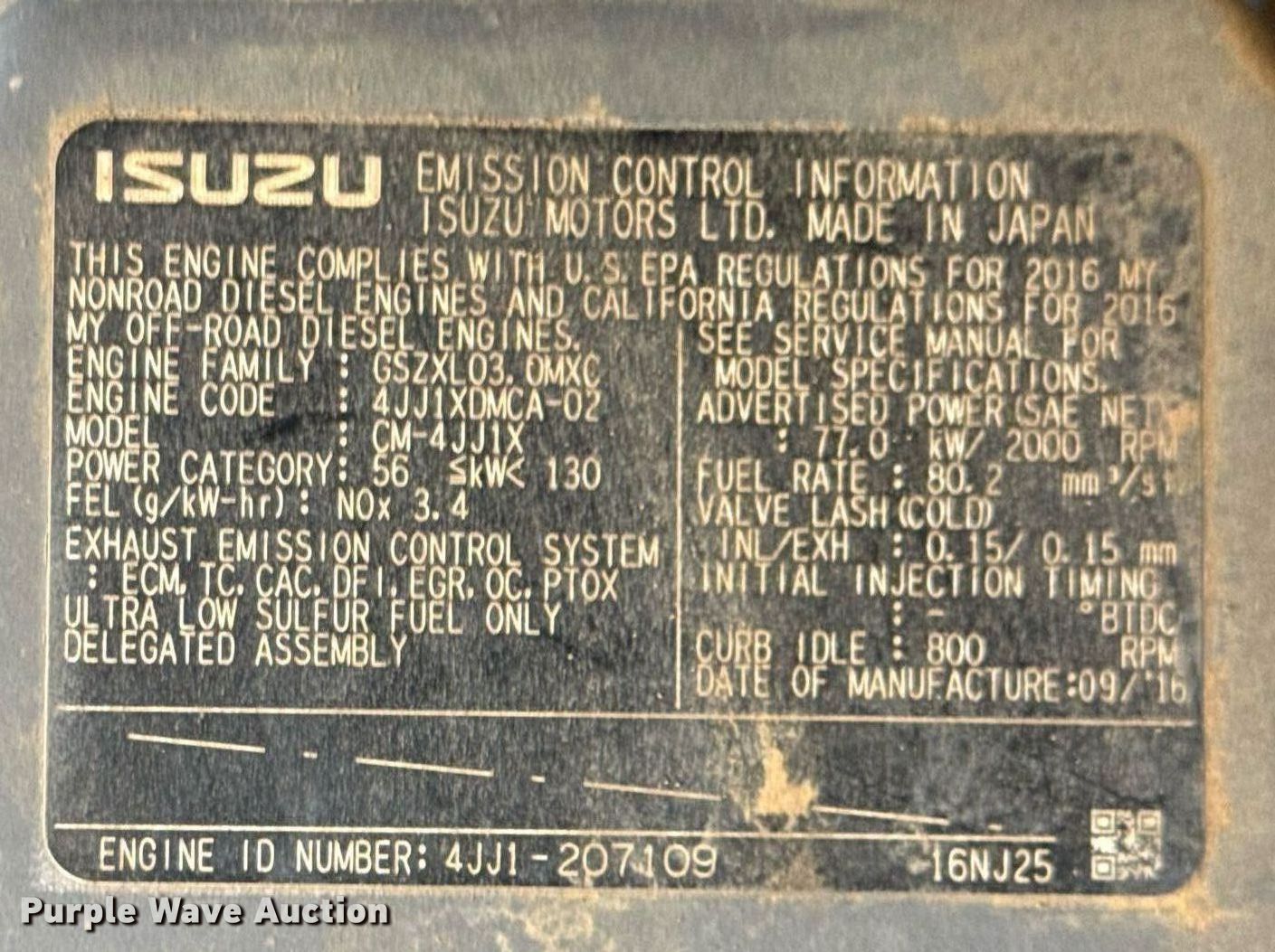 2016 Case CX145C excavator. Hours: 4,272 on meter, Serial: DAC145K6NGS6E1939, Lot #: 84280984. Engine Isuzu CM-4JJ1X, Cylinders: 4, Fuel type: Diesel. Transmission Hydrostatic, Two speed travel. Operators station Enclosed cab, AC, Heat, Backup camera. Features Auxiliary hydraulics Standard, Two-way, Boom Standard, Stick Stick length: 8' 2", Quick coupler: Hydraulic Strickland.. Tracks Width: 24", Steel, Grouser pads: Triple. Notes Door release latch broken. Secured storage hosted by a Copart facility. Please review REQUIRED REMOVAL INSTRUCTIONS. Trinity Equipment Rentals Inc.. Mentone, CA 92359