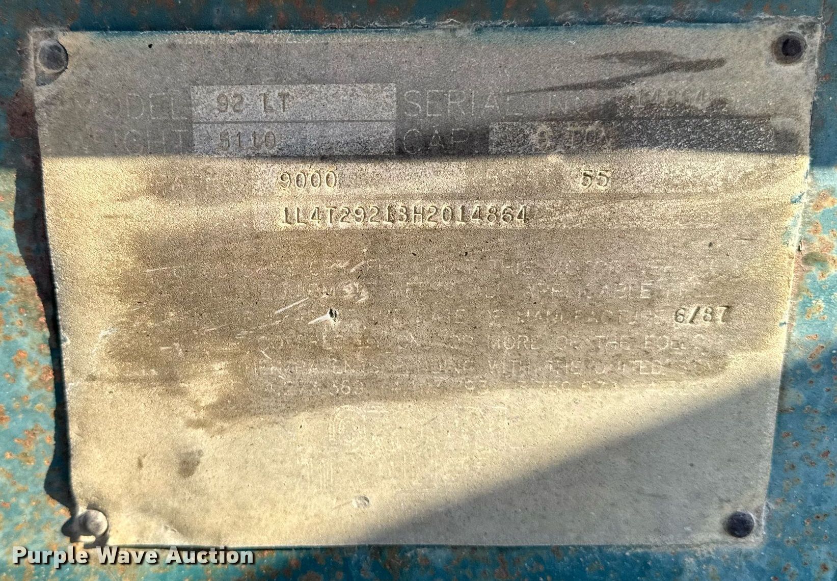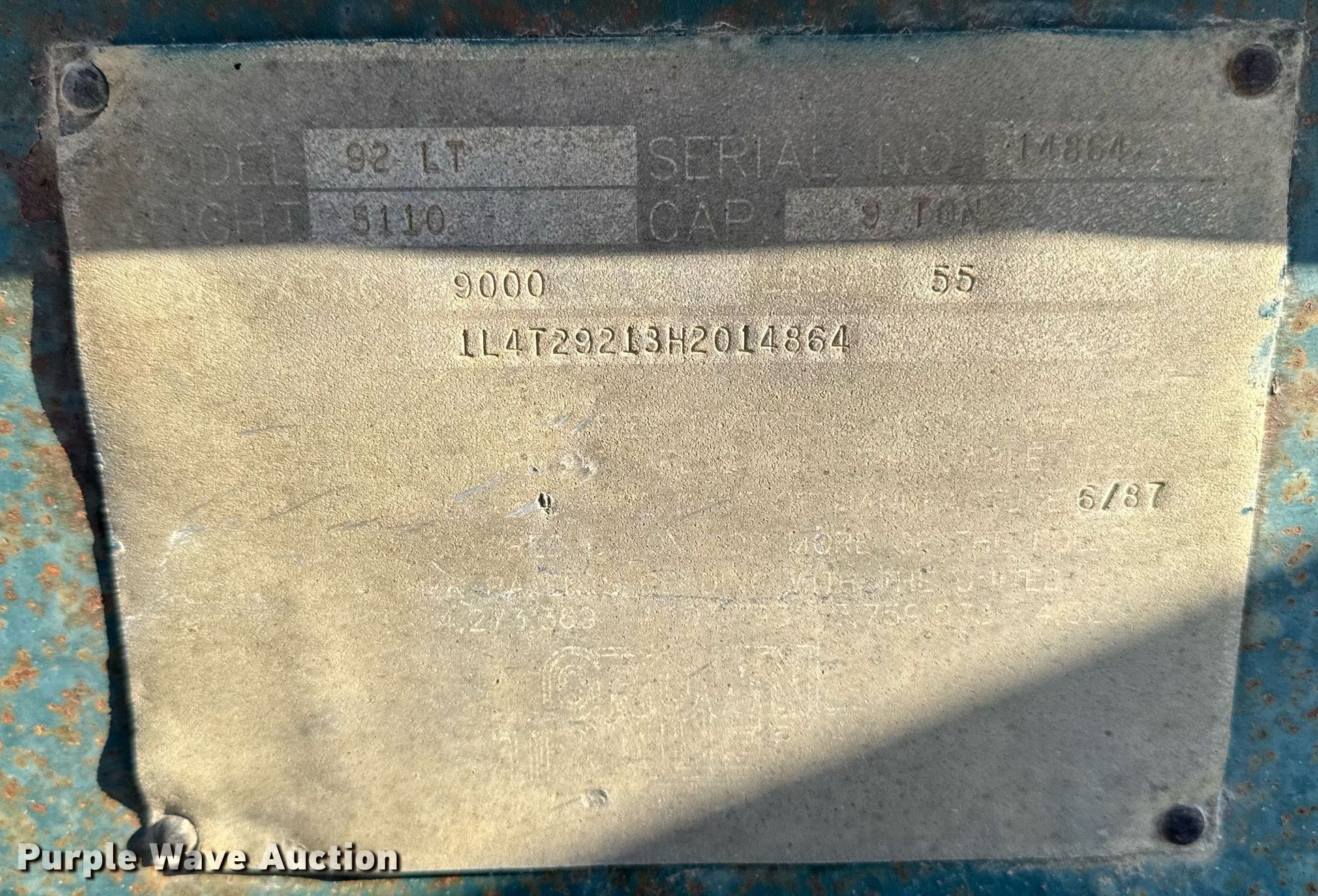 Purple Wave is selling a used Equip. Trailer in Iowa. This item is a 1987 Load King 92 LT equipment trailer with the following: VIN: 1L4T29213H2014864