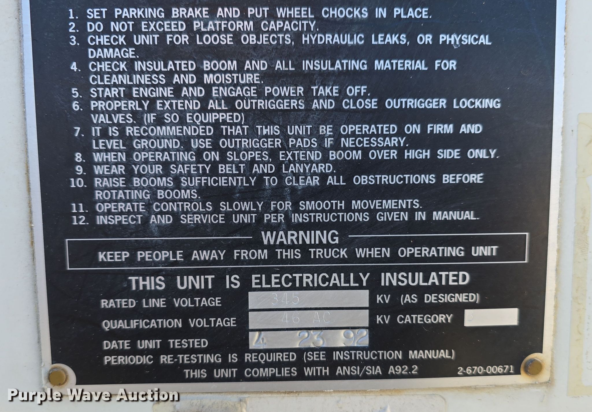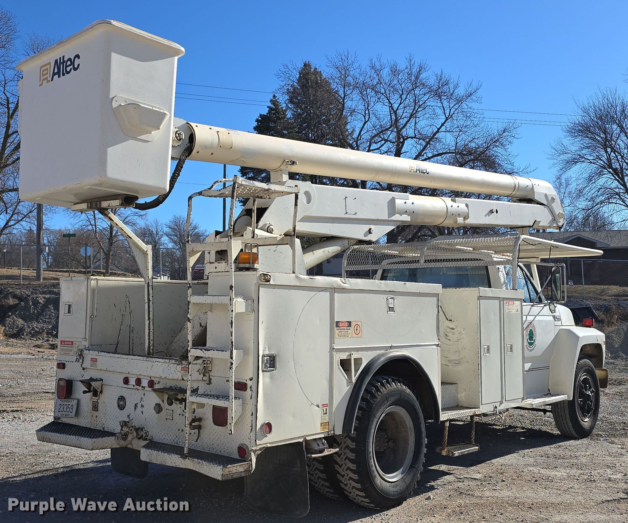 1992 Ford F800 bucket truck. Miles: 46,591 on odometer, PTO hours: 5,055 on meter, VIN: 1FDPK84AXNVA12575, Unit #: 8. Engine Ford 190, Serial: VZ104684, Displacement: 7.8L, Cylinders: 6, Fuel type: Diesel, HP: 190. Transmission Manual, Speed: 5, plus 2. Chassis Axles: Single, Suspension: Spring, Brakes: Hydraulic, PTO, GVWR: 28,000 lbs, Wheelbase: 171". Interior Heat. Features Bed Altec, Serial: 4/92-47-18211, 13' 6" L x 94" W, Boom Altec AN 650, Serial: 0392-U0835, Mast height: 51', Maximum lift capacity: 600 lbs, Boom type: Articulating, Insulated, Man basket, Boom controls Ground, Platform/ basket.. Tires Size: 10.00-20. Nebraska title. Title distribution may be delayed up to 14 days from verification of funds. City of Nebraska City, NE. Nebraska City, NE 68410
