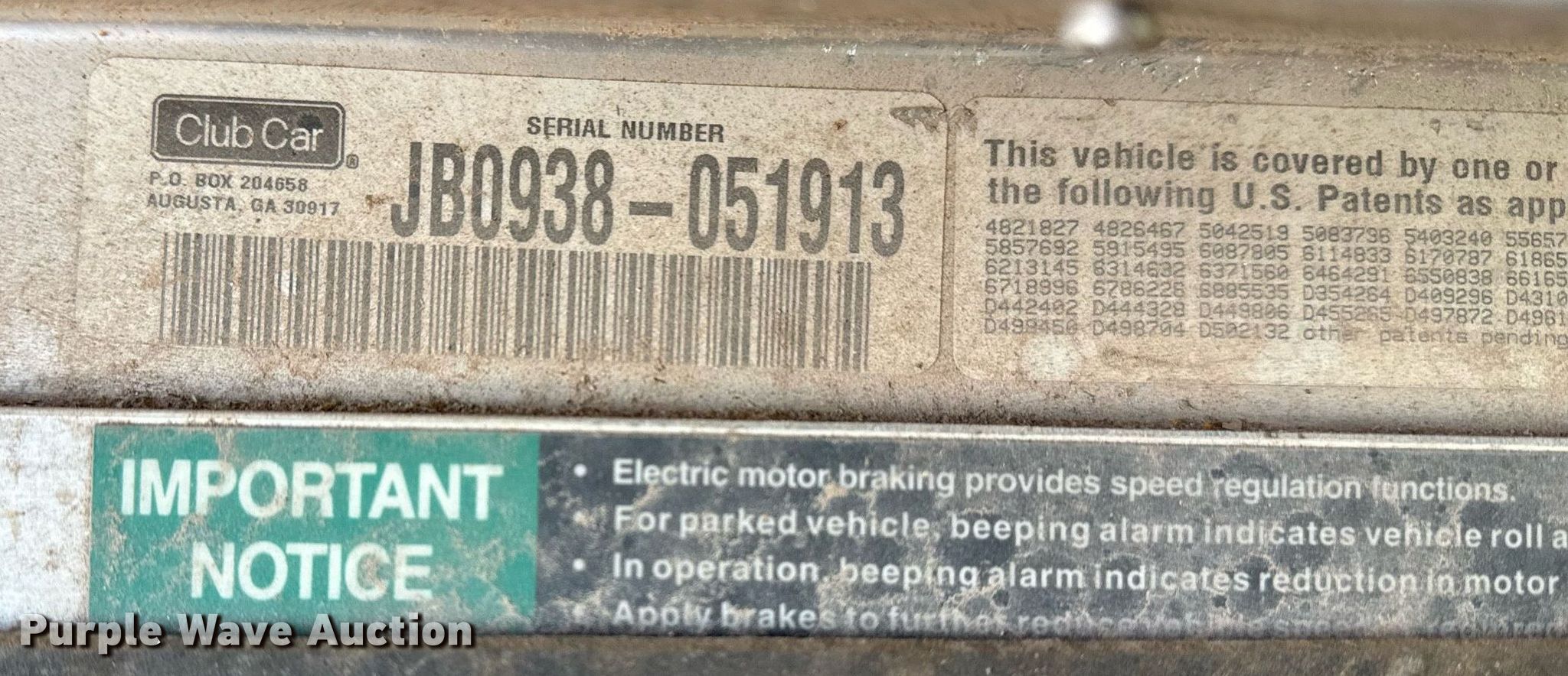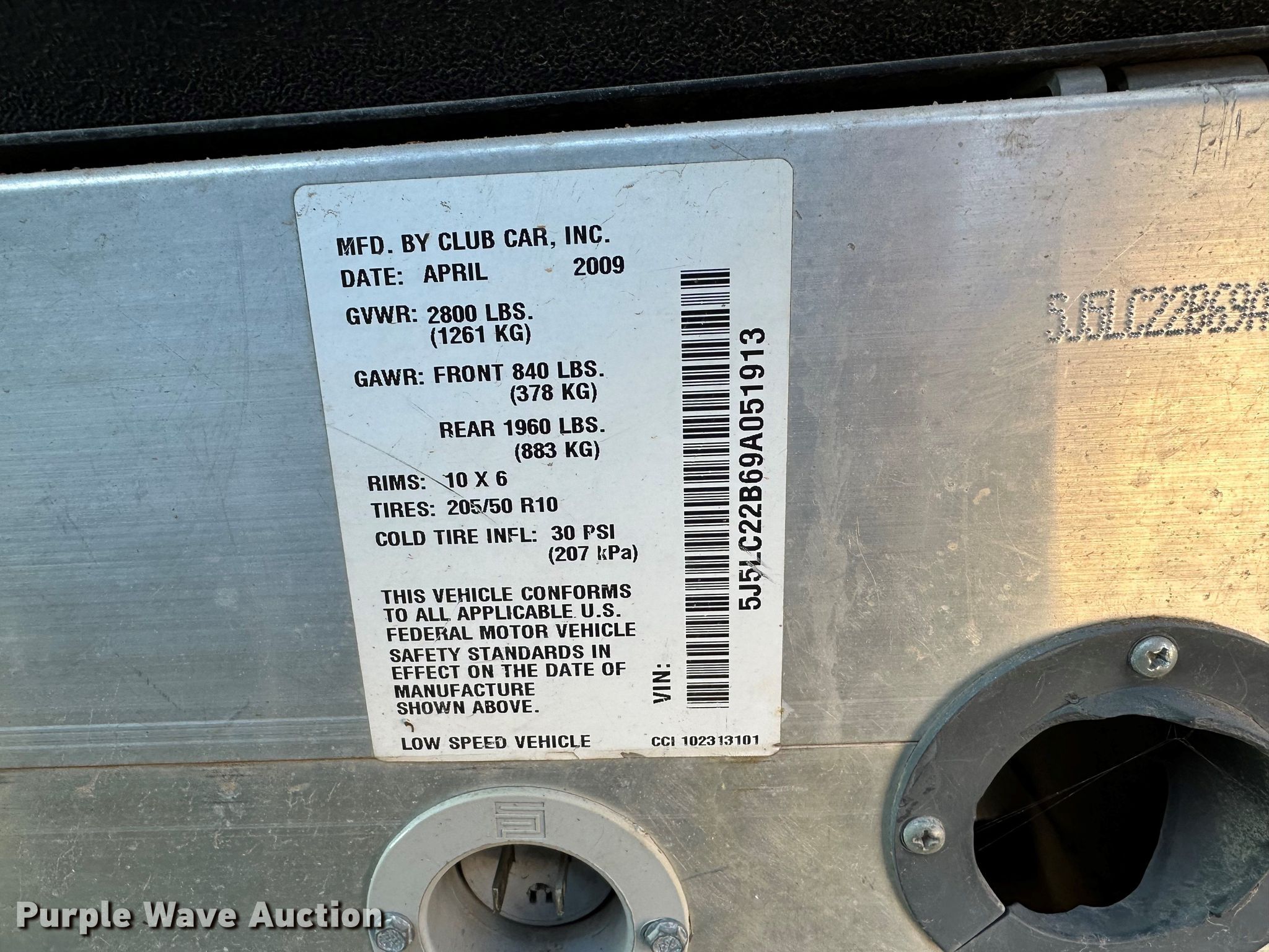 This 2009 Club Car Carryall 6 utility vehicle will sell to the highest bidder regardless of price.