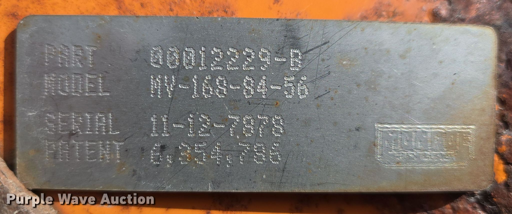 Purple Wave is selling a used Truck Part and Attach. in Nebraska. This item is a Monroe MV-168-84-56 spreader with the following: Serial: 11-12-7878