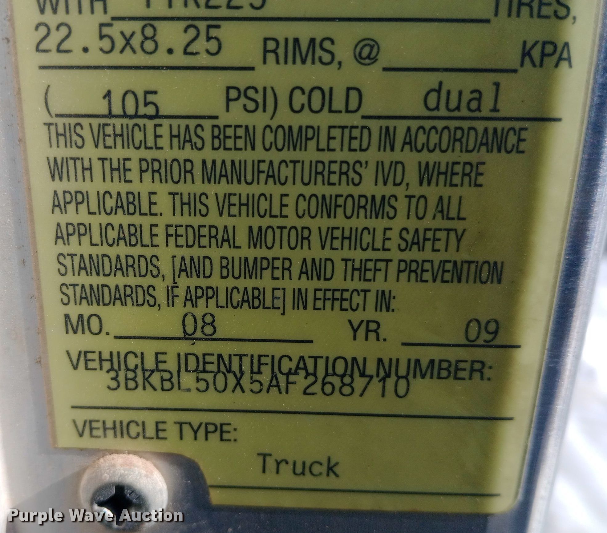 - VIN: 3BKBL50X5AF268710