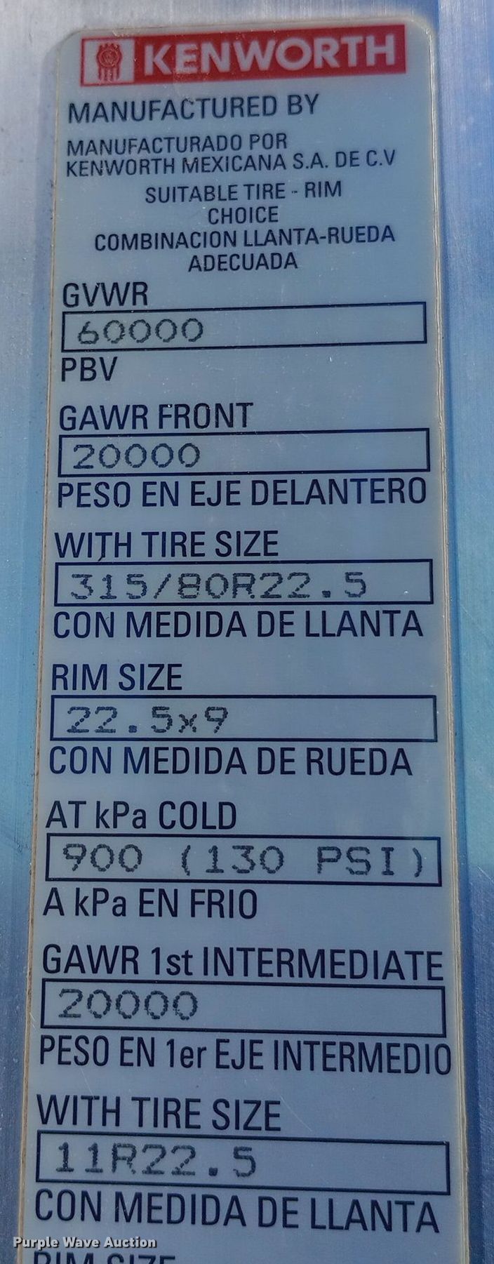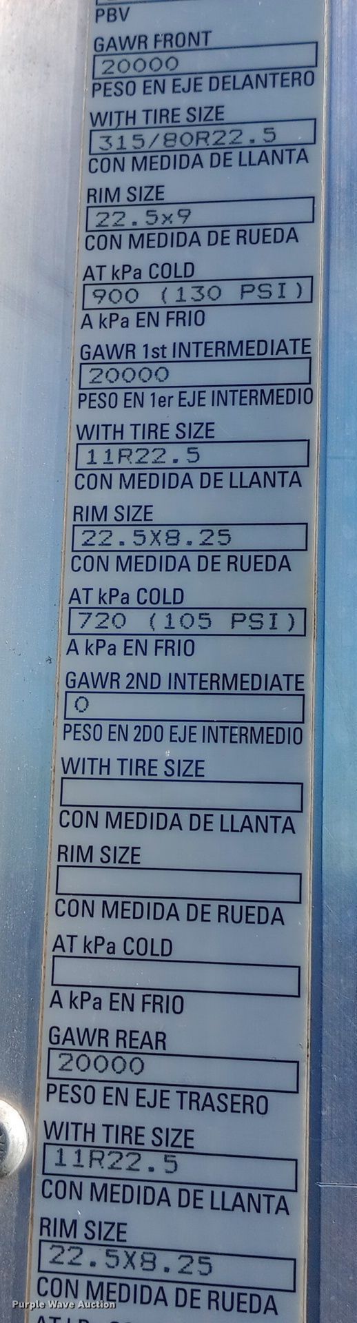 - Front: 315/80R22.5