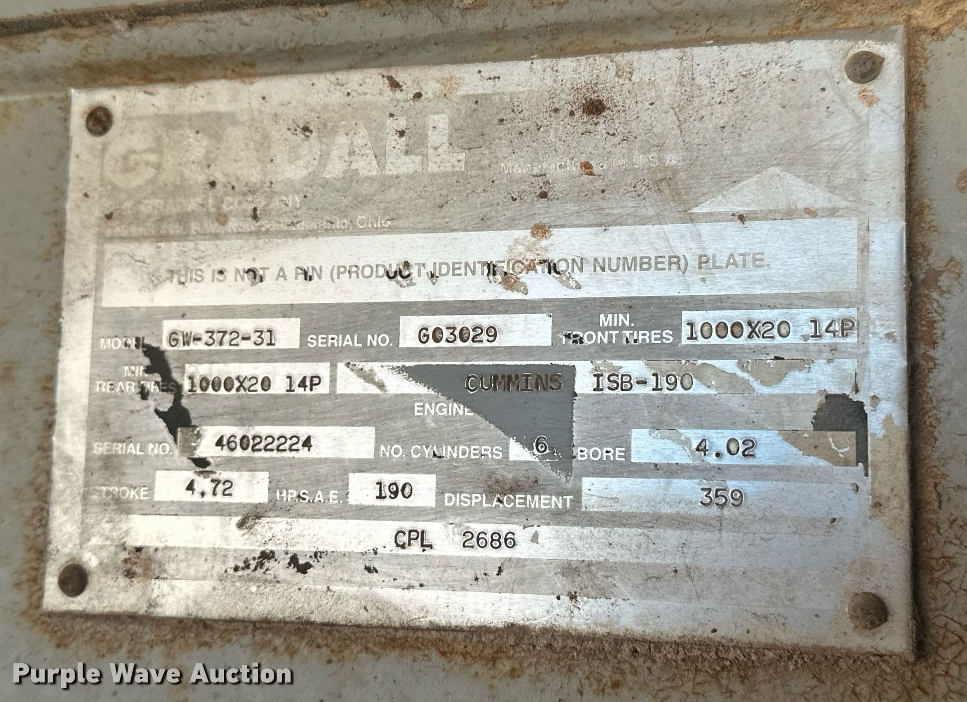 2000 Gradall XL 3100 wheeled excavator. Hours: 5,741 on meter, Serial: 0312305. Engine Cummins ISB-190, Serial: 46022224, Cylinders: 6, Fuel type: Diesel. Transmission Eaton Fuller, Manual, Speed: 9. Chassis Brakes: Air, Suspension: Spring, Differential lock: Inter-axle. Operators station Enclosed cab, AC, Heat. Features Auxiliary hydraulics Standard, Counter weights, Boom Standard, Stick Stick length: 11', Bucket Width: 60". Tires Front: 385/65R22.5, Rear: 10.00R20. Notes Glass cracked. Oklahoma title. Title distribution may be delayed up to 14 days from verification of funds. McClain County, OK. Purcell, OK 73080