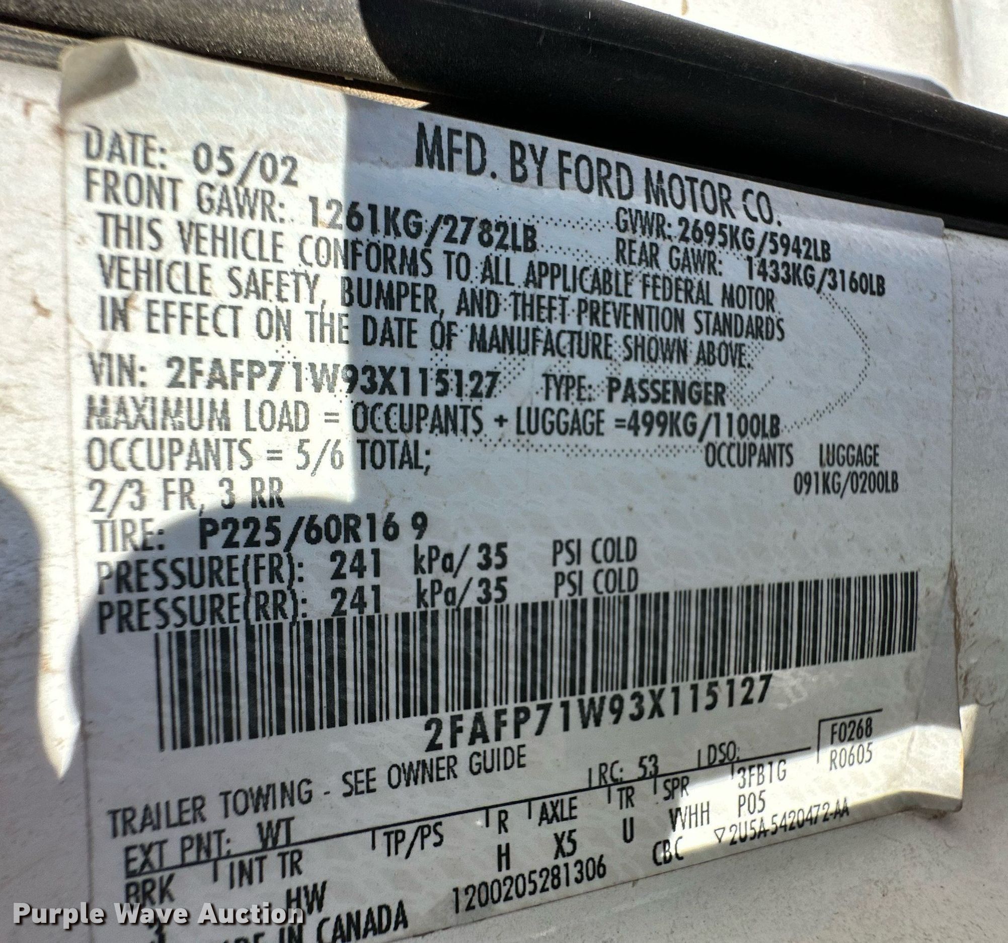 Purple Wave is selling a used Passenger Vehicle in Oklahoma. This item is a 2003 Ford Crown Victoria Police Interceptor with the following: Miles: 123,558 on odometer, VIN: 2FAFP71W93X115127