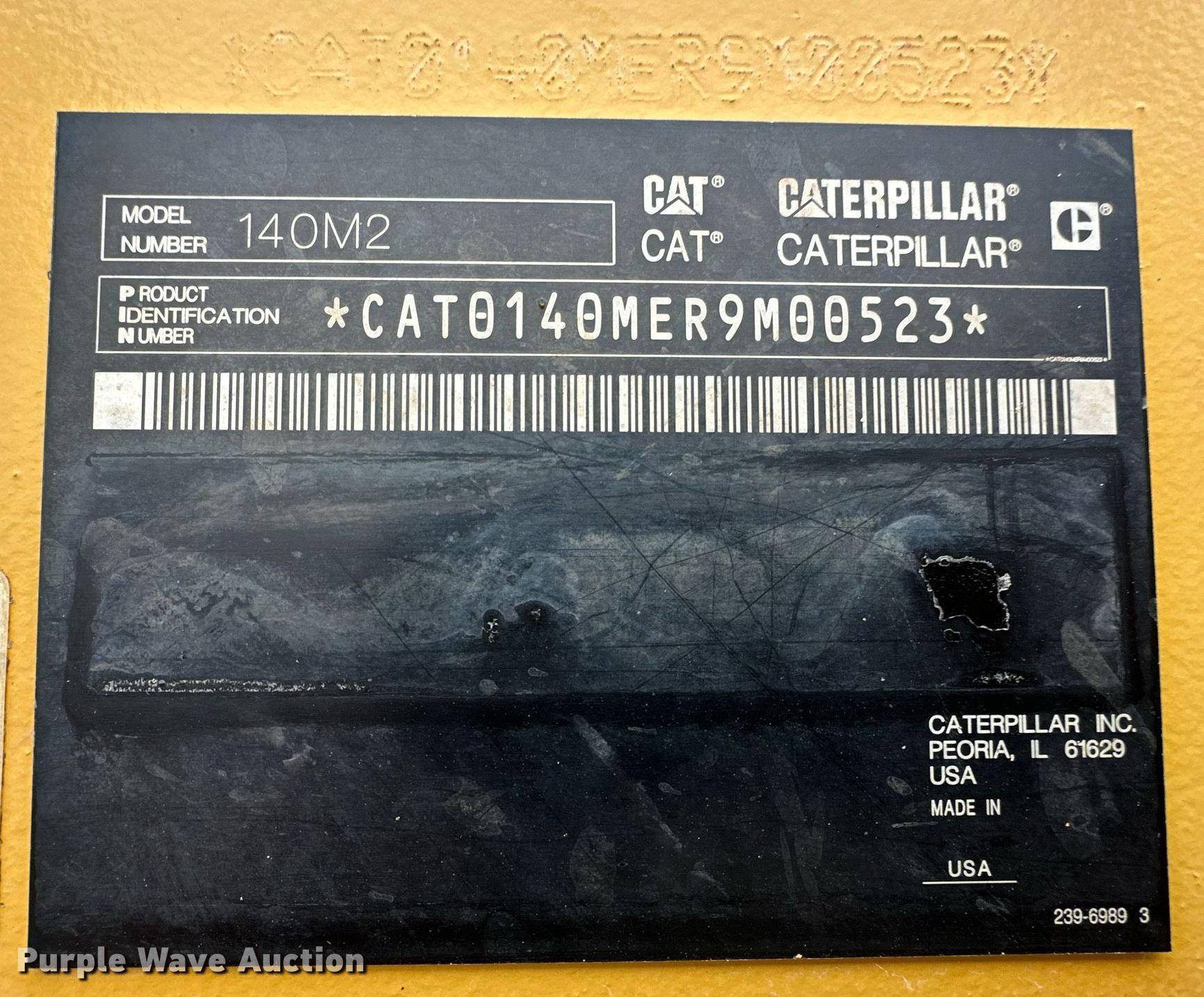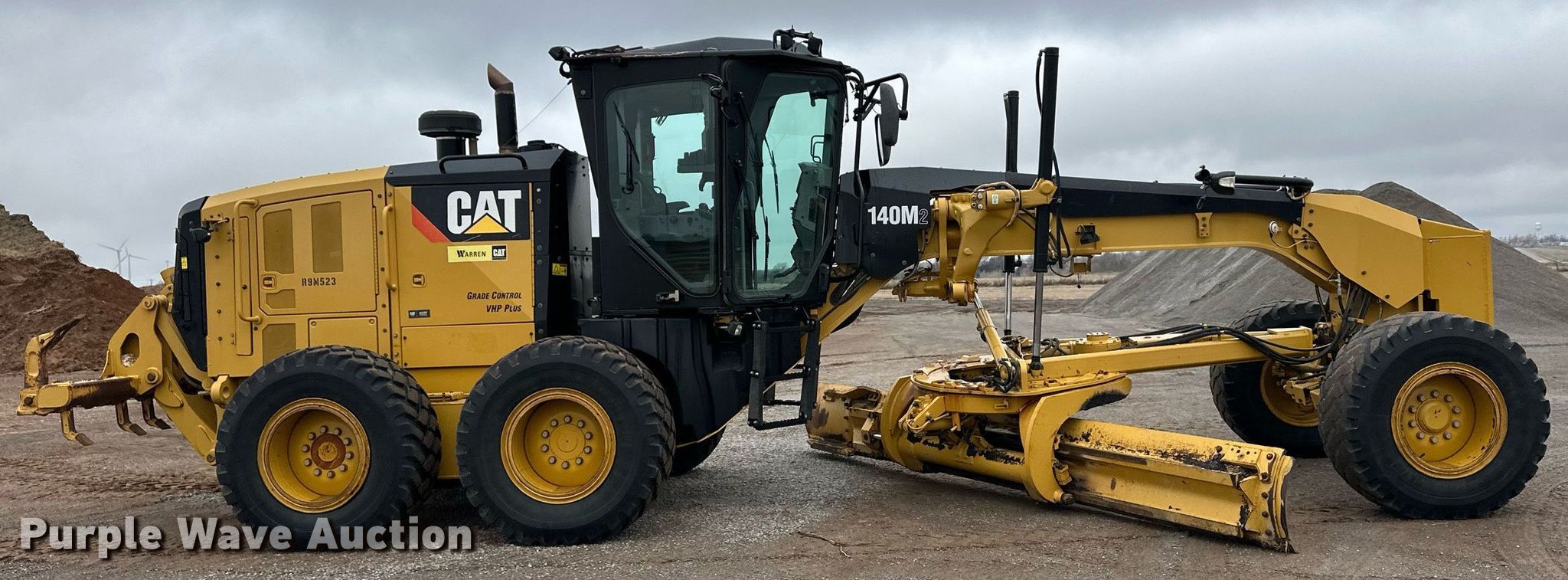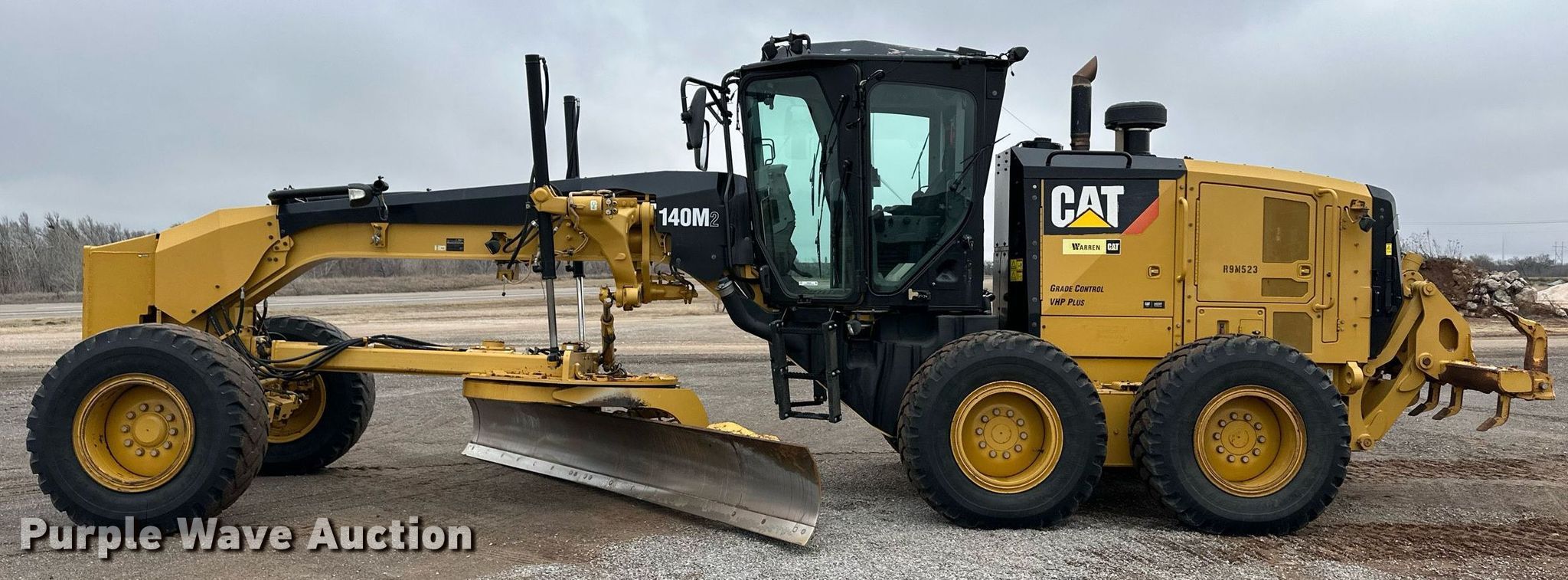 Purple Wave is selling a used Motor Grader in Oklahoma. This item is a 2014 Caterpillar 140M2 VHP motor grader with the following: Hours: 8,562 on meter, Serial: CAT0140MER9M00523