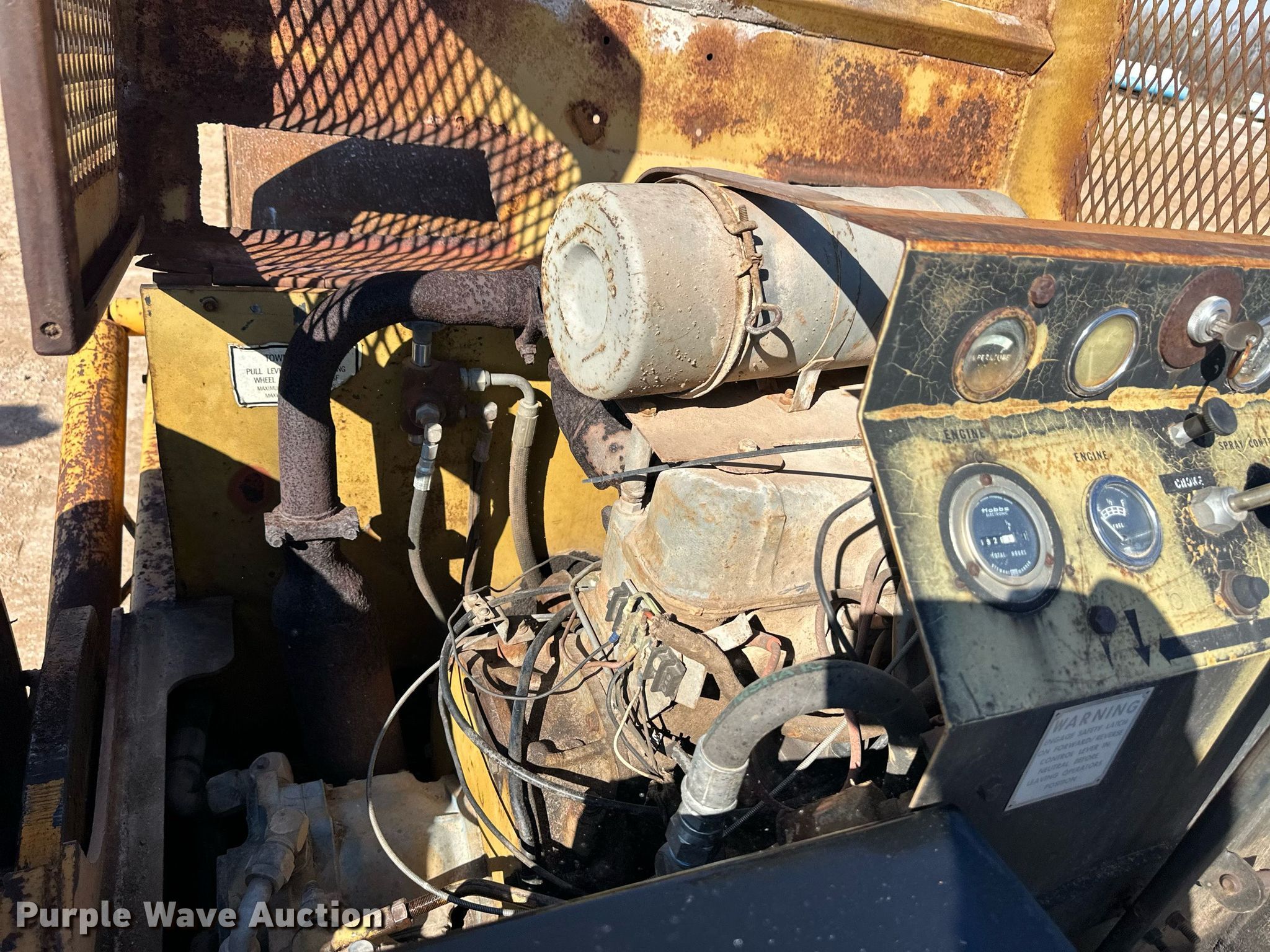 Ferguson 46 double drum roller. Hours: 5,926 on meter, Serial: 2588. Engine Cylinders: 4, Fuel type: Gas. Transmission Hydrostatic. Features Drum: Smooth, Front drum Width: 40", Diameter: 32", Rear drum Width: 42", Diameter: 48", Drum scrapers: Front, Water spray applicator: Front, Rear. Tires Size: 10.00-20. Public Works Department. Woodward, OK 73801