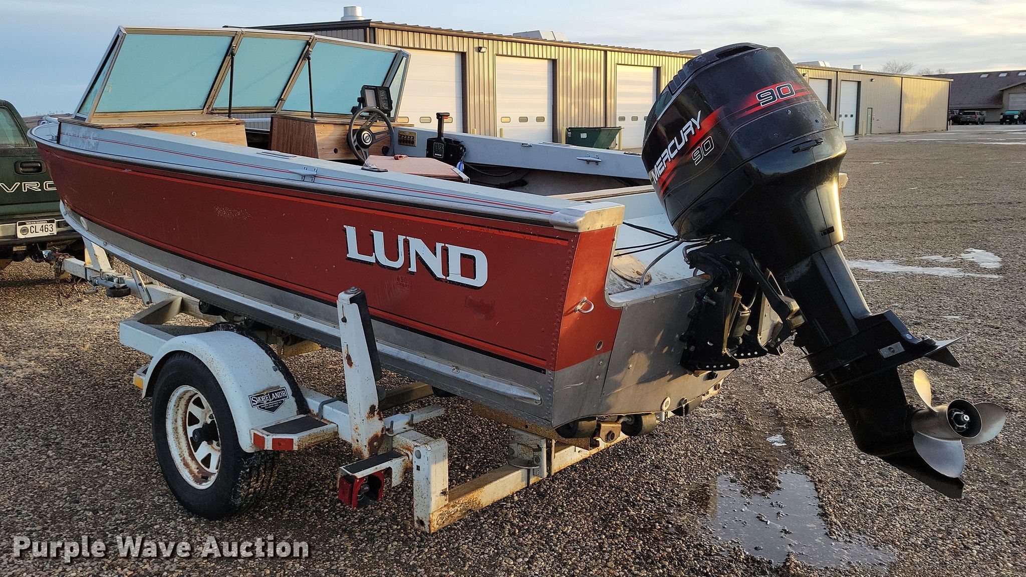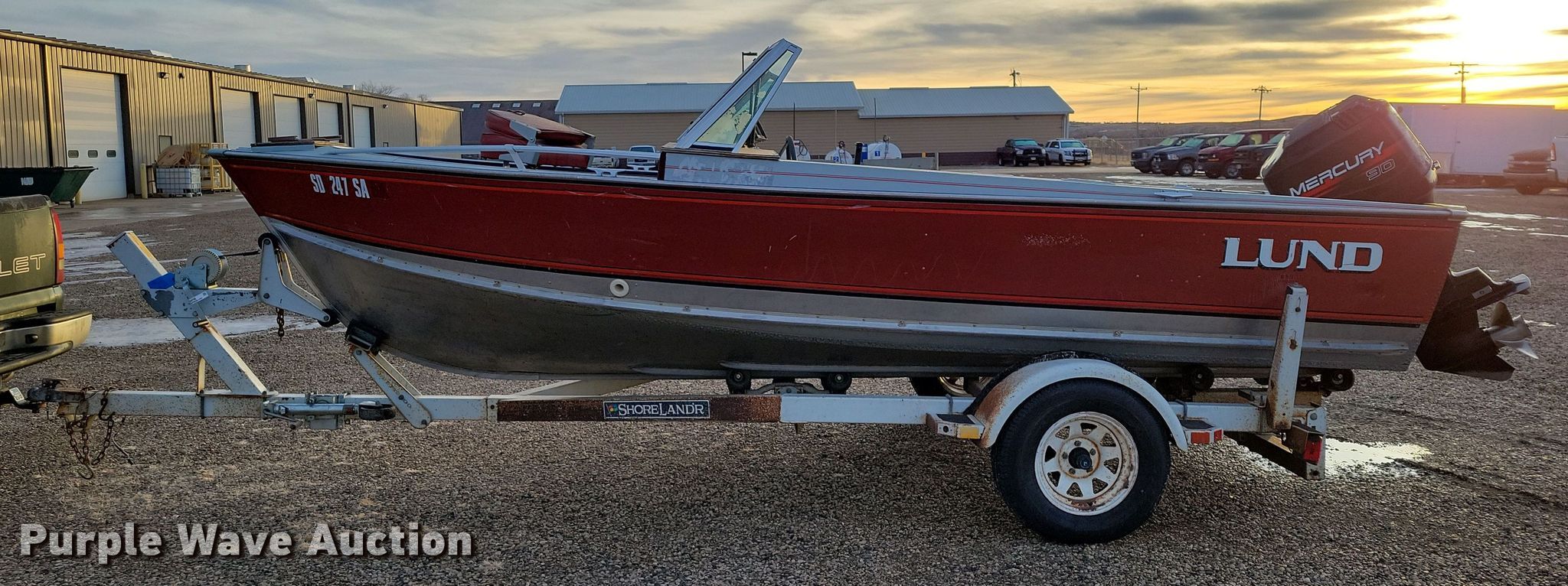 1988 Lund boat. Length: 17', Hull ID: LUNM0928F788, Unit #: SD247SA. Engine Engine type: Outboard, 1,996 Mercury 90ELPT0, Serial: 0G318127, Cylinders: 3, Fuel type: Gas, HP: 90, Outdrive Propeller: Stainless steel. Operators station Capacity Person: 6, 820 lbs, Depth finder: Lowrance X-40. Trailer 1987 Midwest Industries ShoreLandr, Overall length: 18.5', VIN: 1MDBEET18HE314928, Overall width: 96", Ball hitch size: 2", Axles: Single, Tire size: 205/75R14. Notes Boat floor and transom issues, needs repairs. Boat: South Dakota title. Trailer: South Dakota title. Motor: Bill of Sale. State of South Dakota. Fort Pierre, SD 57532