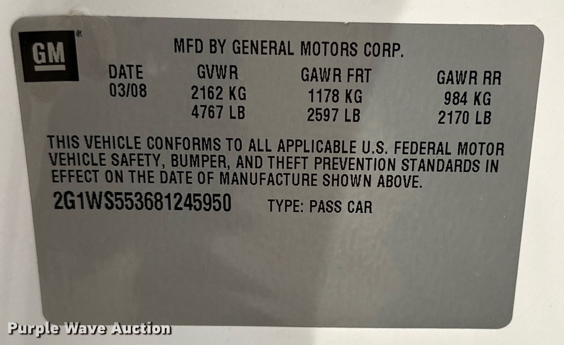 - VIN: 2G1WS553681245950