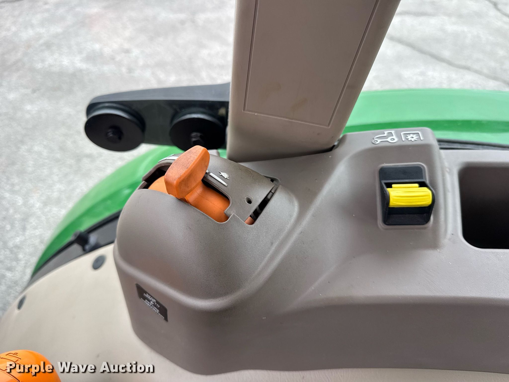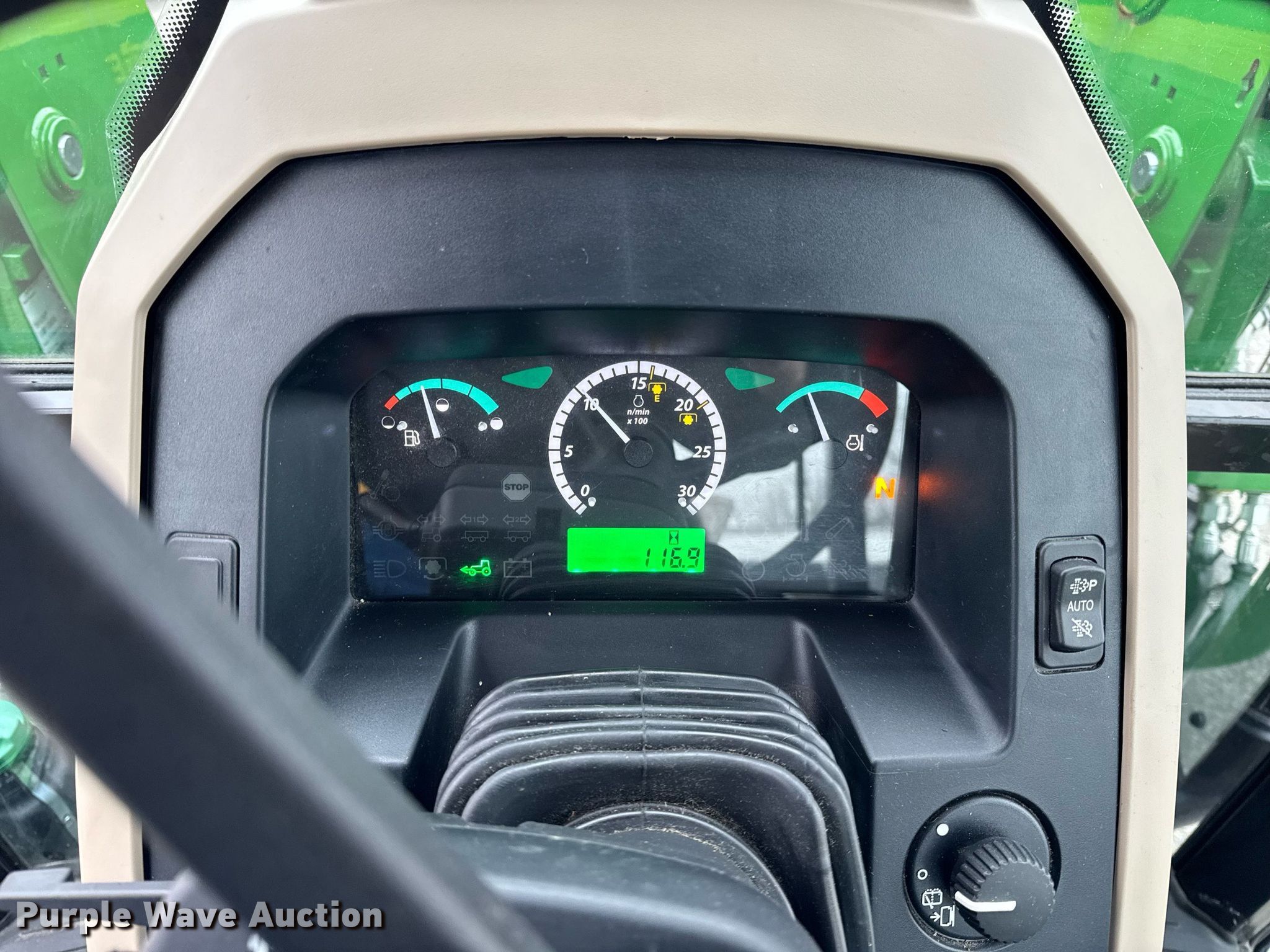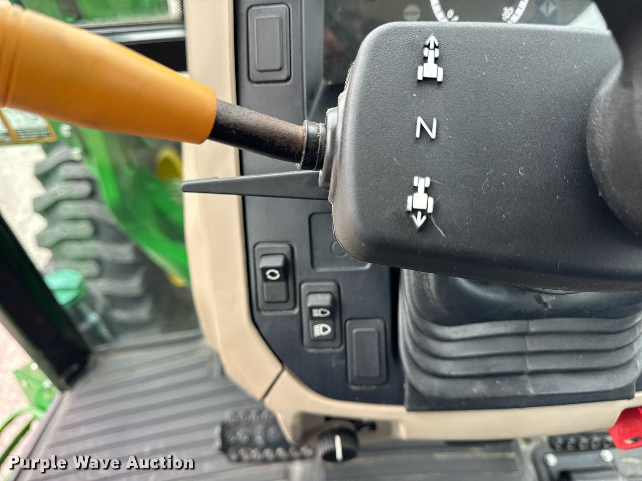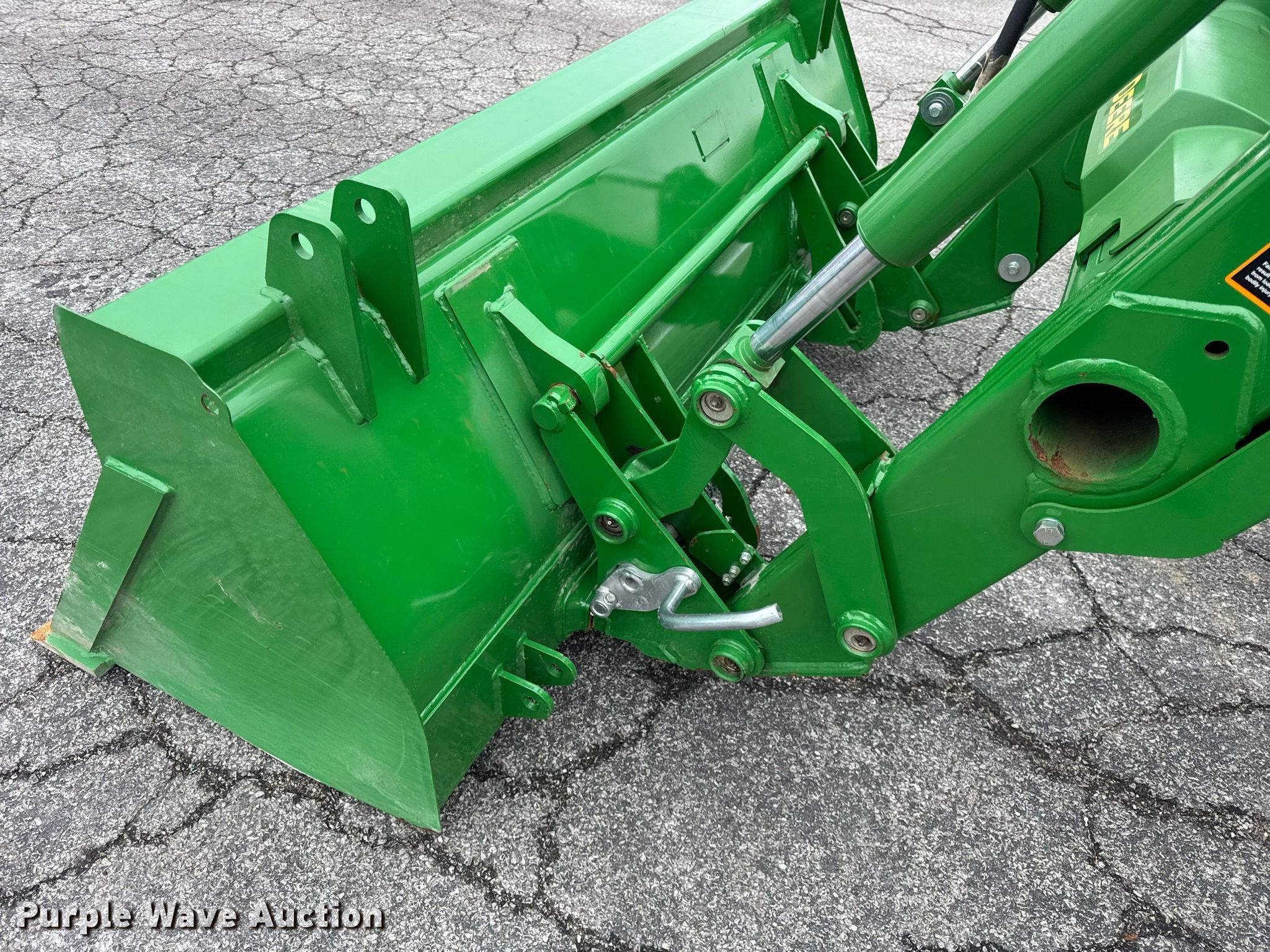 2022 John Deere 5075E MFWD tractor. Hours: 117 on meter. Engine John Deere 3029HPY101, Displacement: 2.9L, Cylinders: 3, Fuel type: Diesel. Transmission Synchro, 12F - 12R, Left-hand reverser, Differential lock. Operators station AC, Heat. Features PTO: 540, Top link, Seven pin outlet, Hydraulic remote sets Rear: 1, Loader John Deere 520M, Quick attach, Controls: Joystick, Bucket Width: 75".. Tires Front: 12.5/80-18, Rear: 16.9-24. Notes Warranty valid until April 2027 or 2,500 hours. Pettit Sales. North Vernon, IN 47265