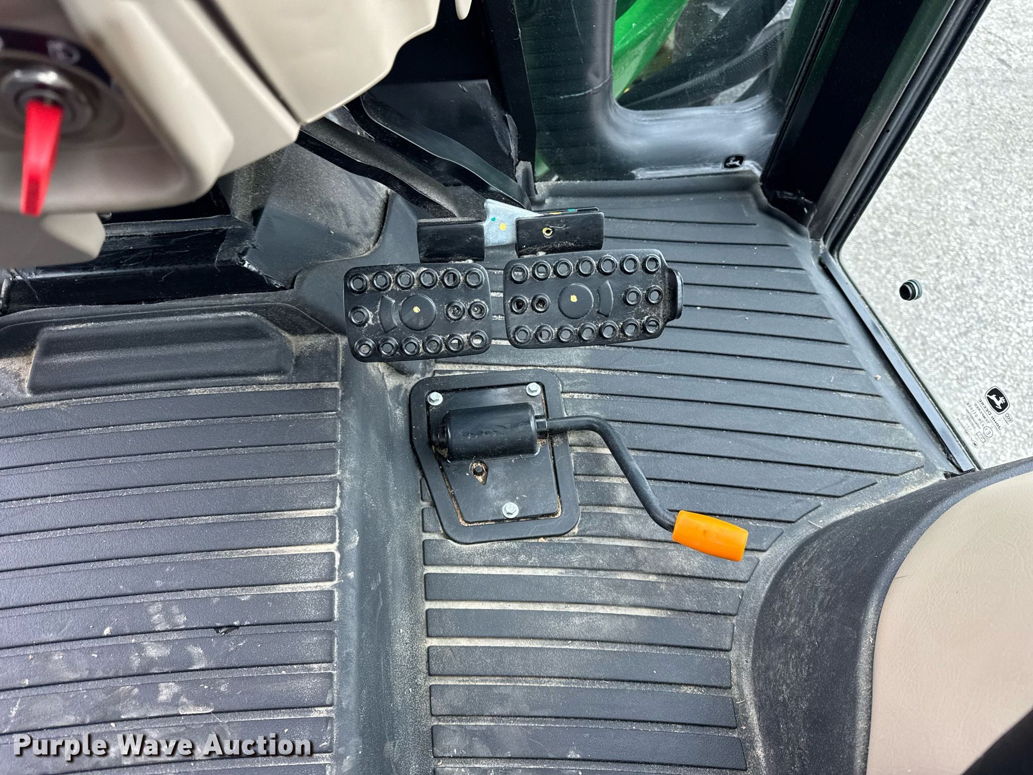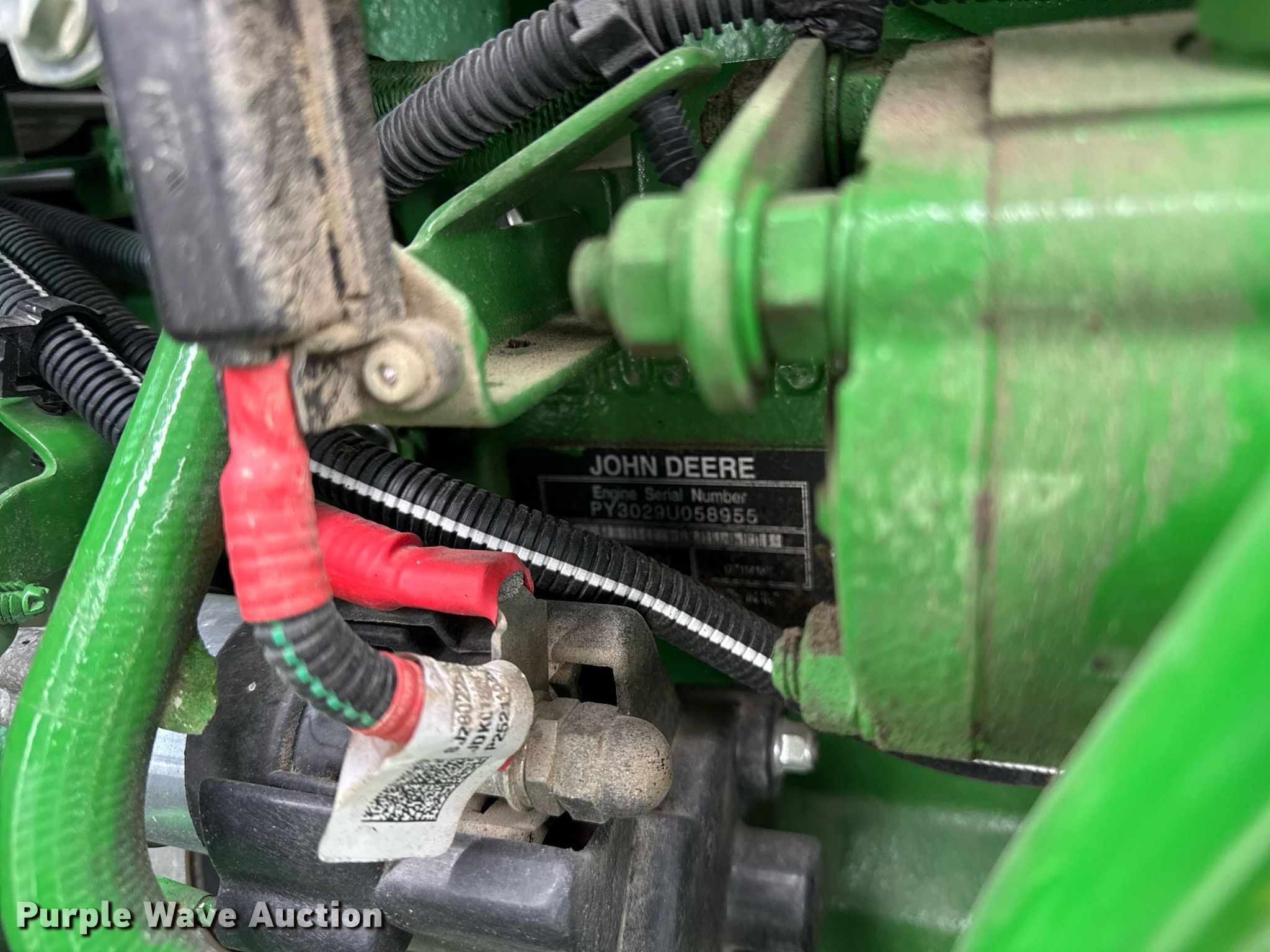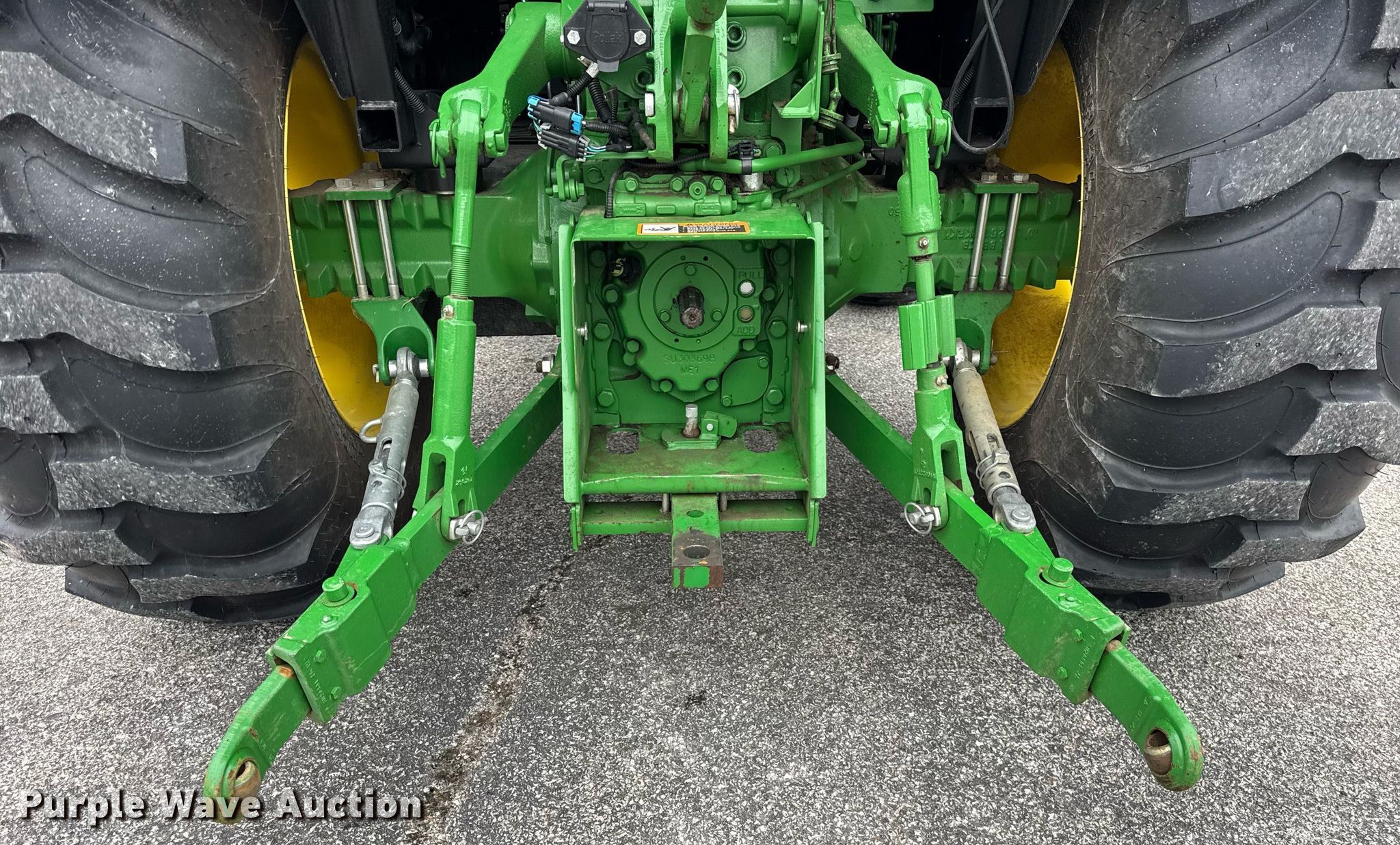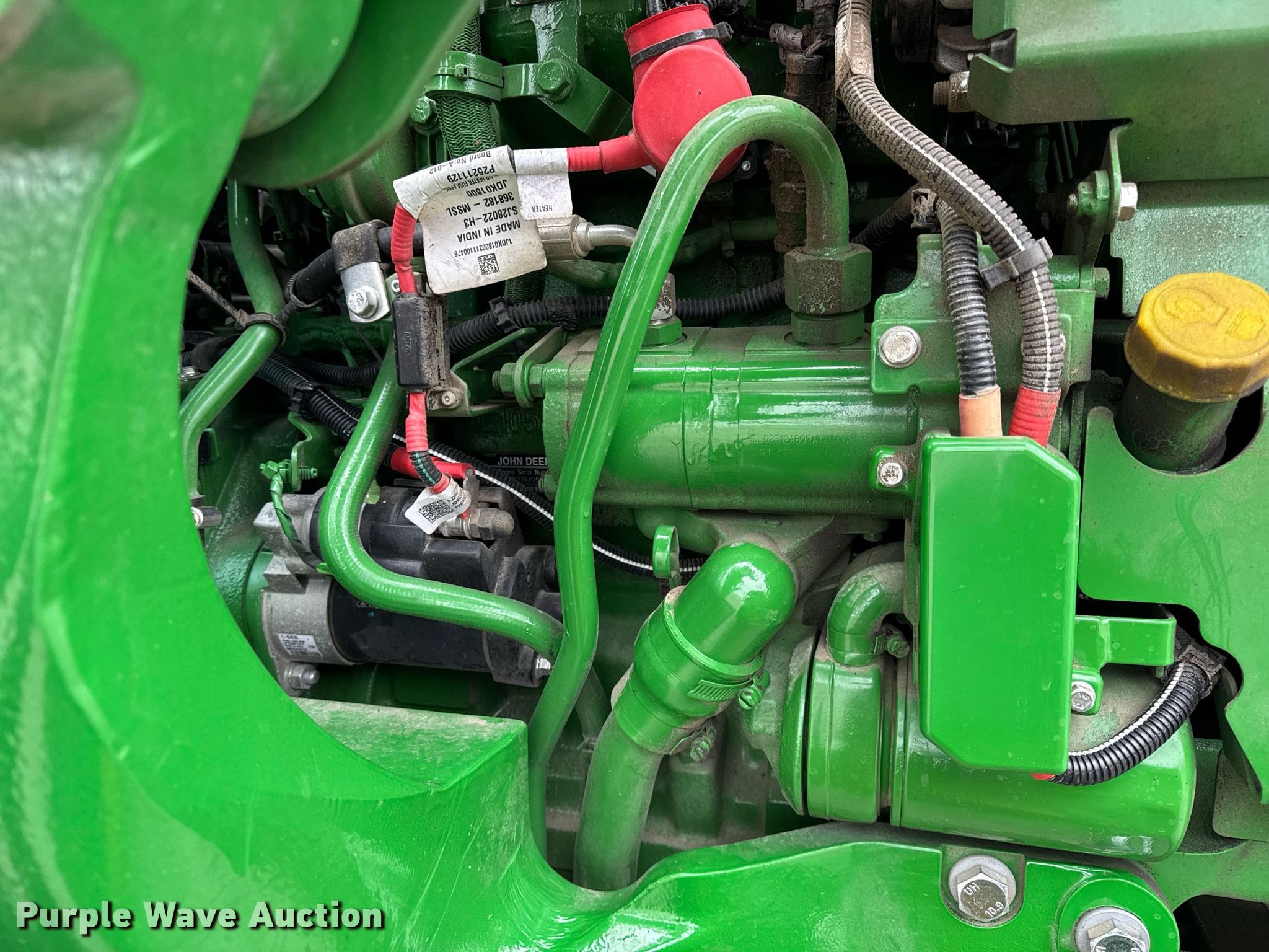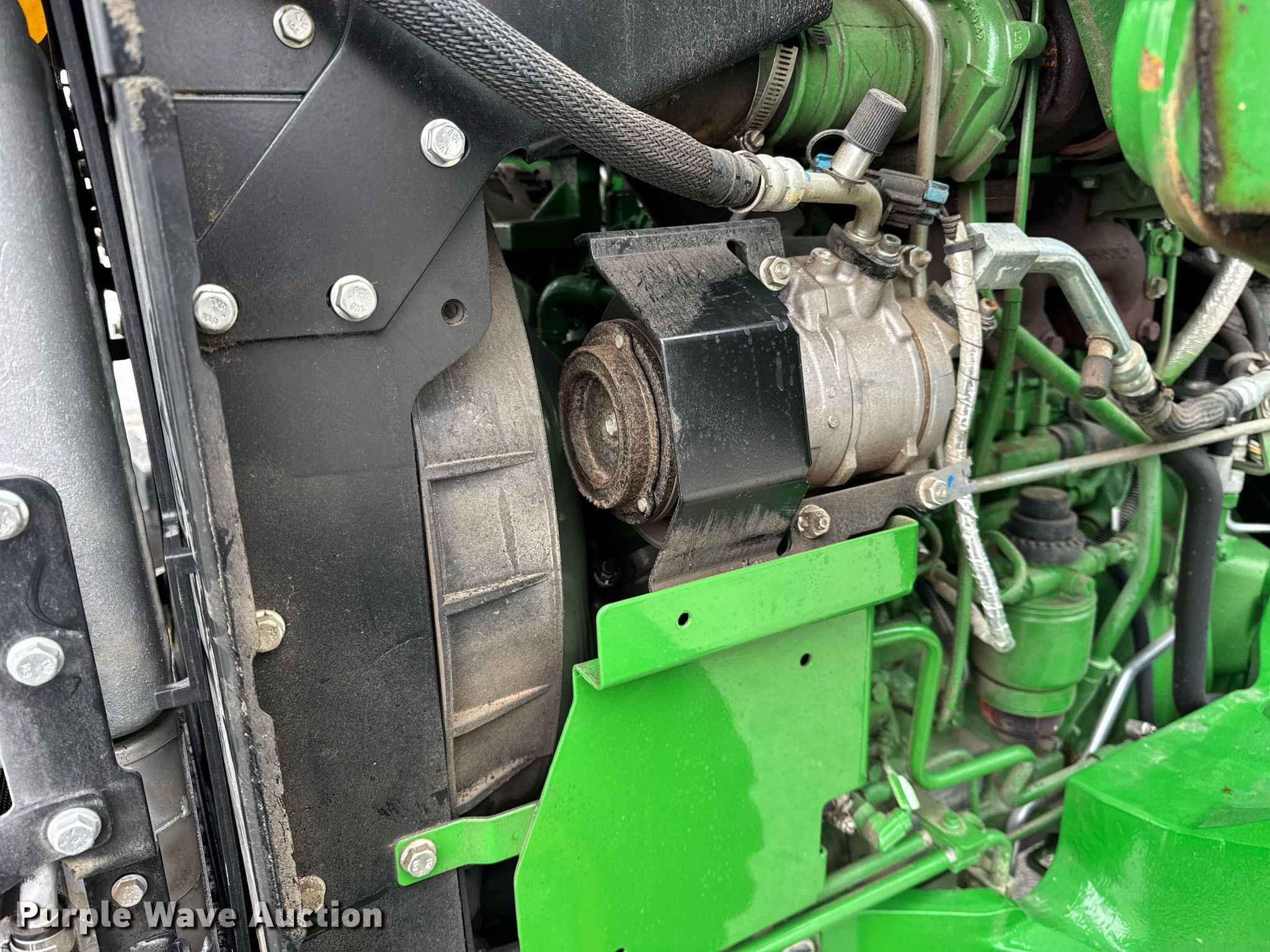 2022 John Deere 5075E MFWD tractor. Hours: 117 on meter. Engine John Deere 3029HPY101, Displacement: 2.9L, Cylinders: 3, Fuel type: Diesel. Transmission Synchro, 12F - 12R, Left-hand reverser, Differential lock. Operators station AC, Heat. Features PTO: 540, Top link, Seven pin outlet, Hydraulic remote sets Rear: 1, Loader John Deere 520M, Quick attach, Controls: Joystick, Bucket Width: 75".. Tires Front: 12.5/80-18, Rear: 16.9-24. Notes Warranty valid until April 2027 or 2,500 hours. Pettit Sales. North Vernon, IN 47265
